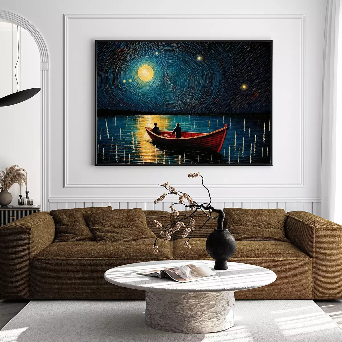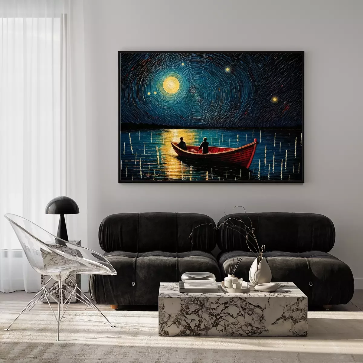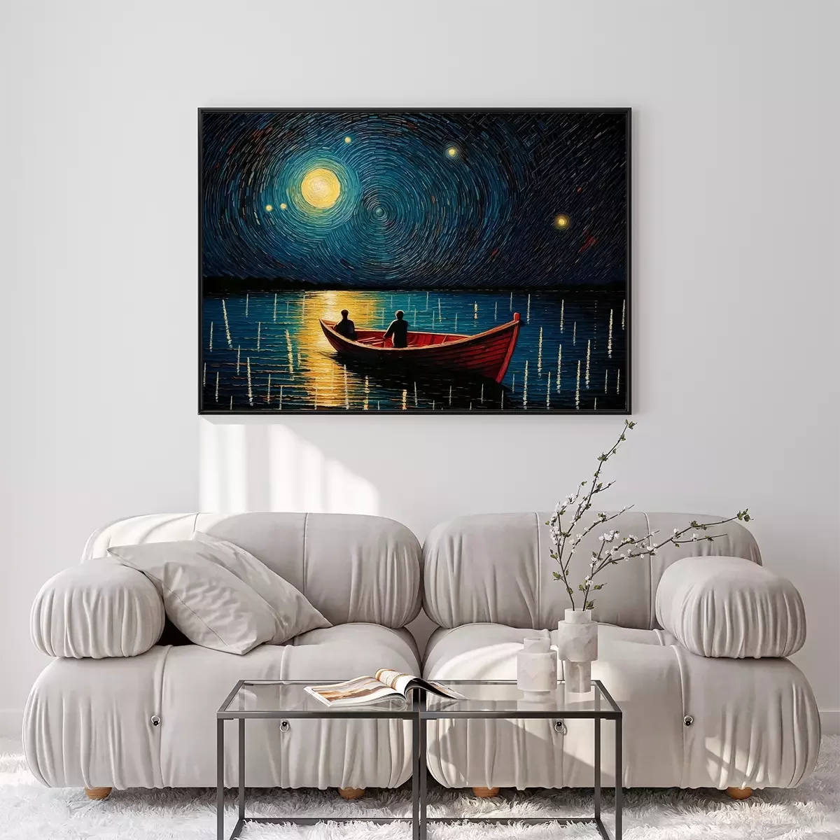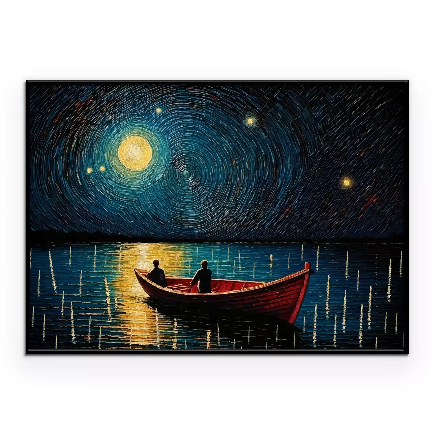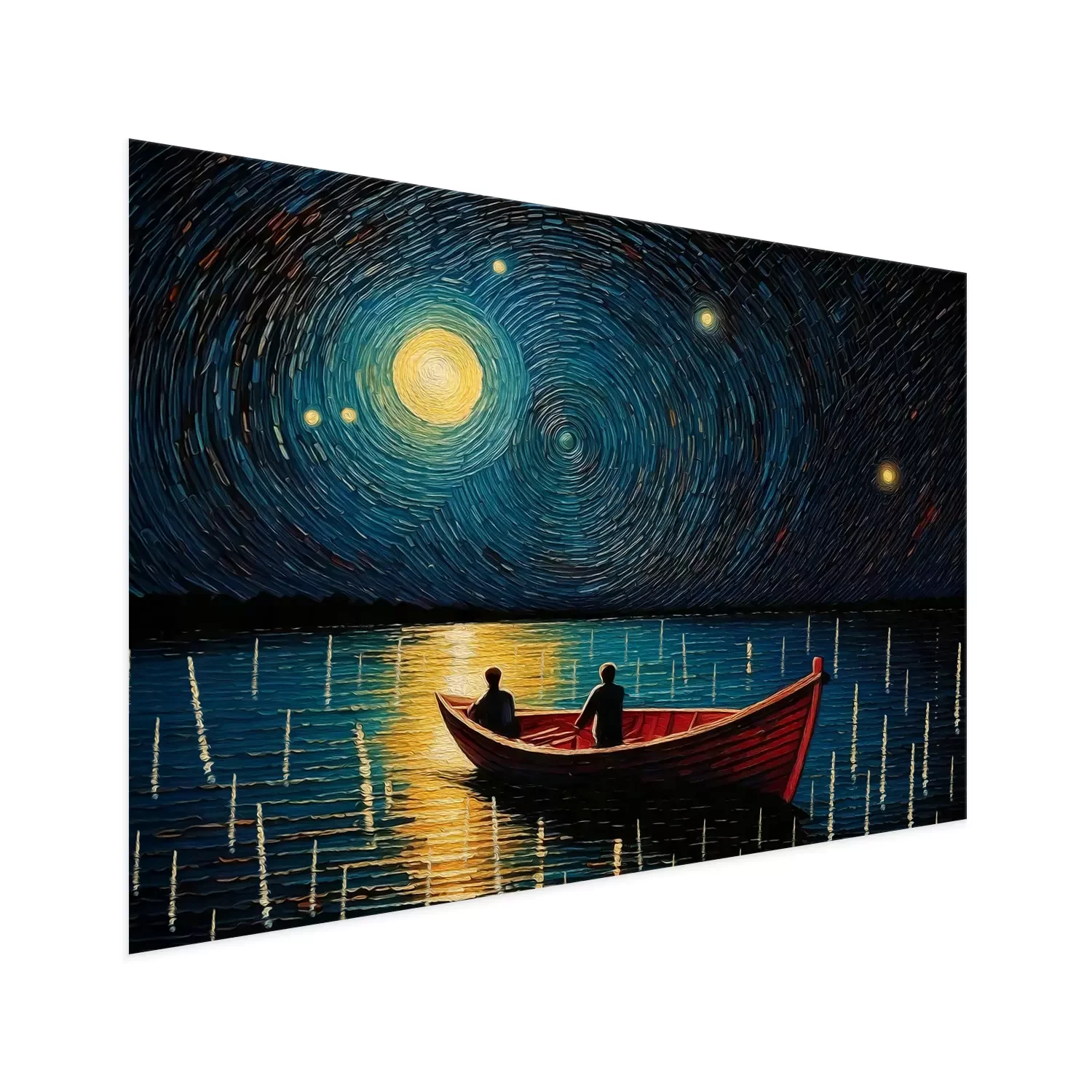 Poster: Sterrennacht gezien vanaf een boot op het meer