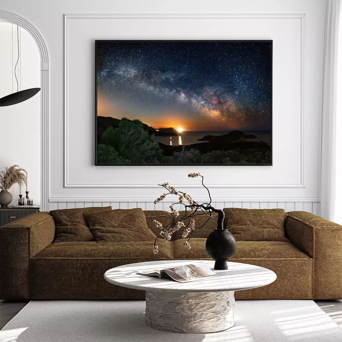 Deze posters zijn gedrukt in zeer hoge resolutie (1440 dpi) op papier van uitstekende kwaliteit. Het gebruik van HP Latex-technologie zorgt voor jarenlang levendige kleuren die bestand zijn tegen de schadelijke effecten van UV-straling. Posters zien er geweldig uit in aluminium lijsten met een plexiglas plaat, wat het een elegant karakter geeft. Premium posters worden gedrukt op halfglanzend papier.