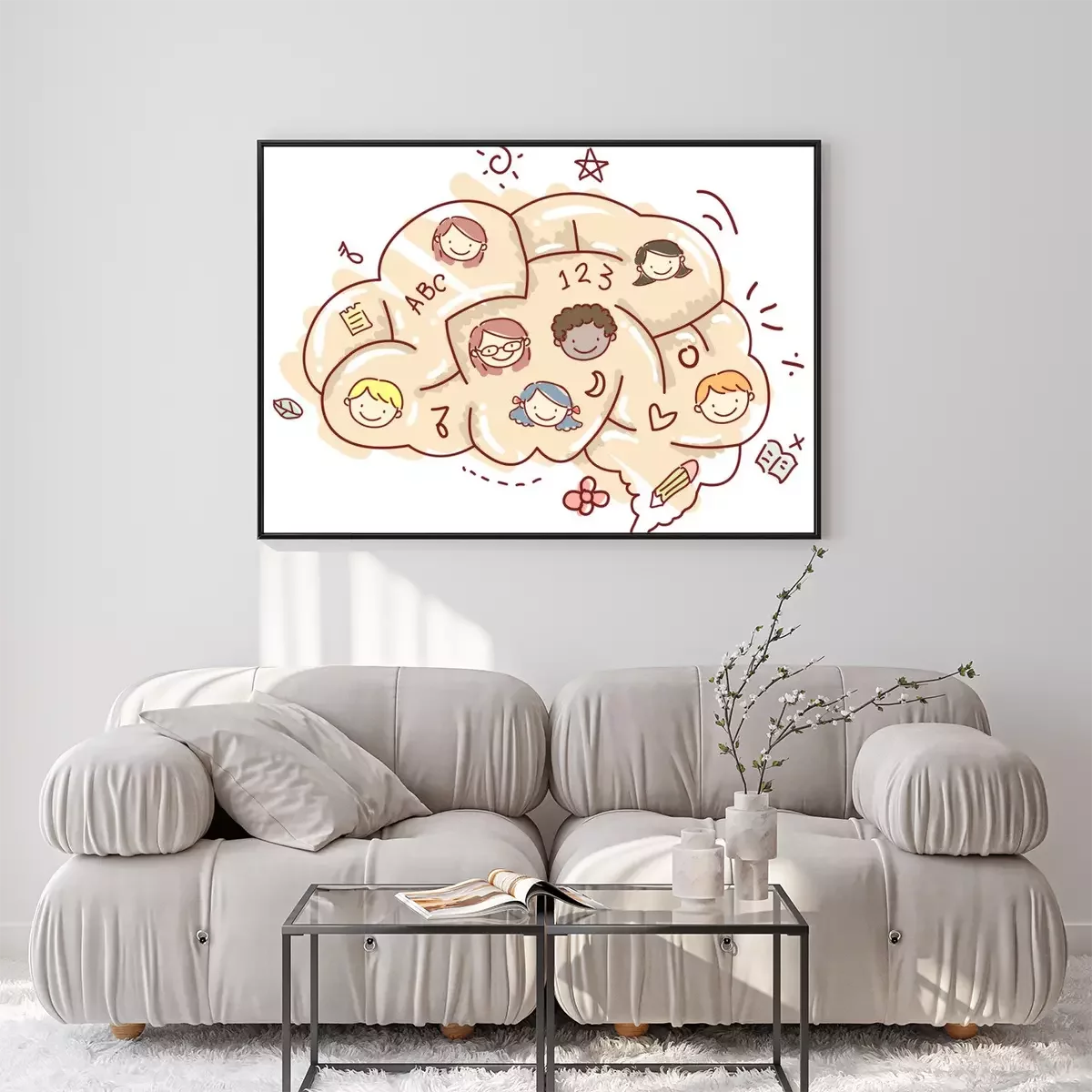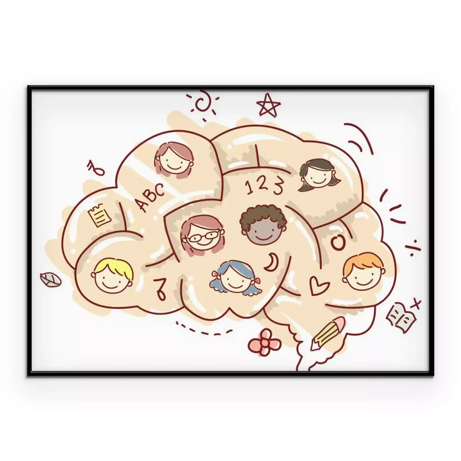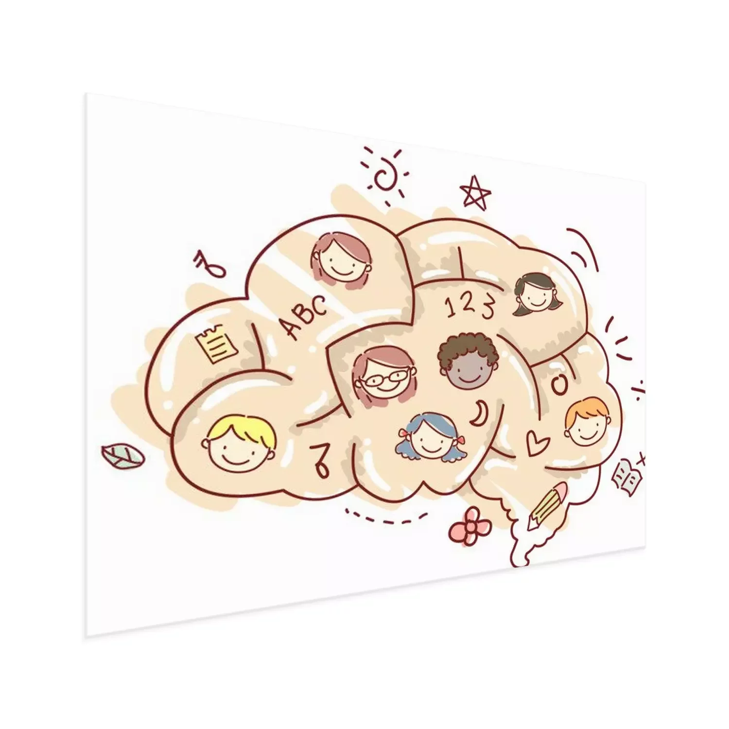 Poster: Stickman Kids Brain Maze Faces Illustration