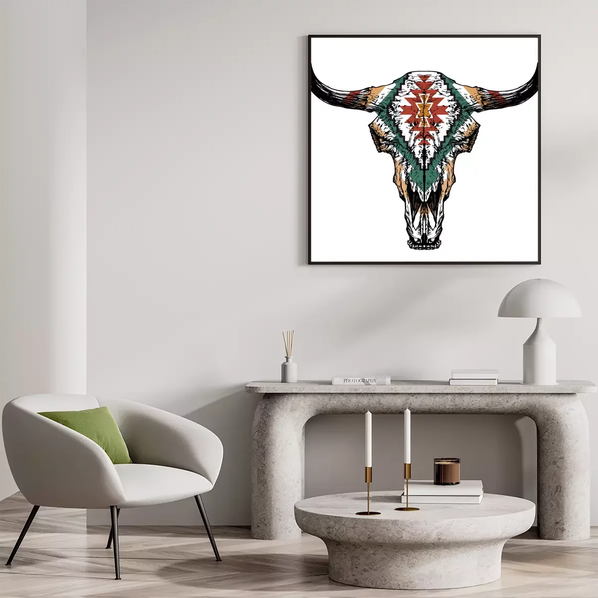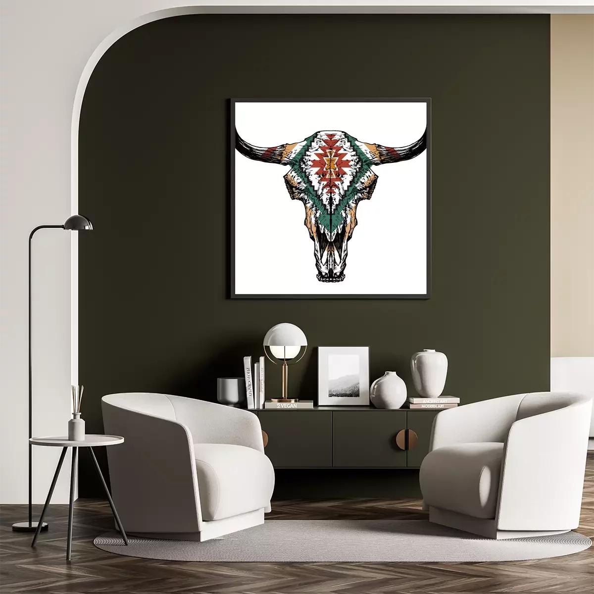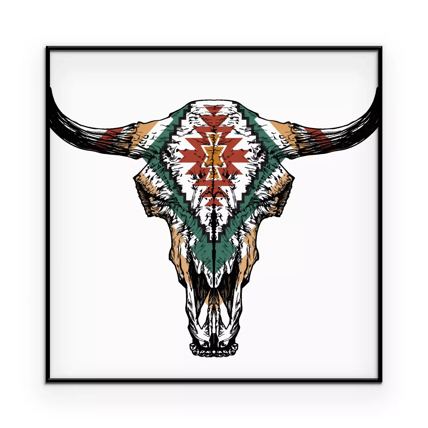 Poster Stierenkopafbeelding met etnisch ornament.