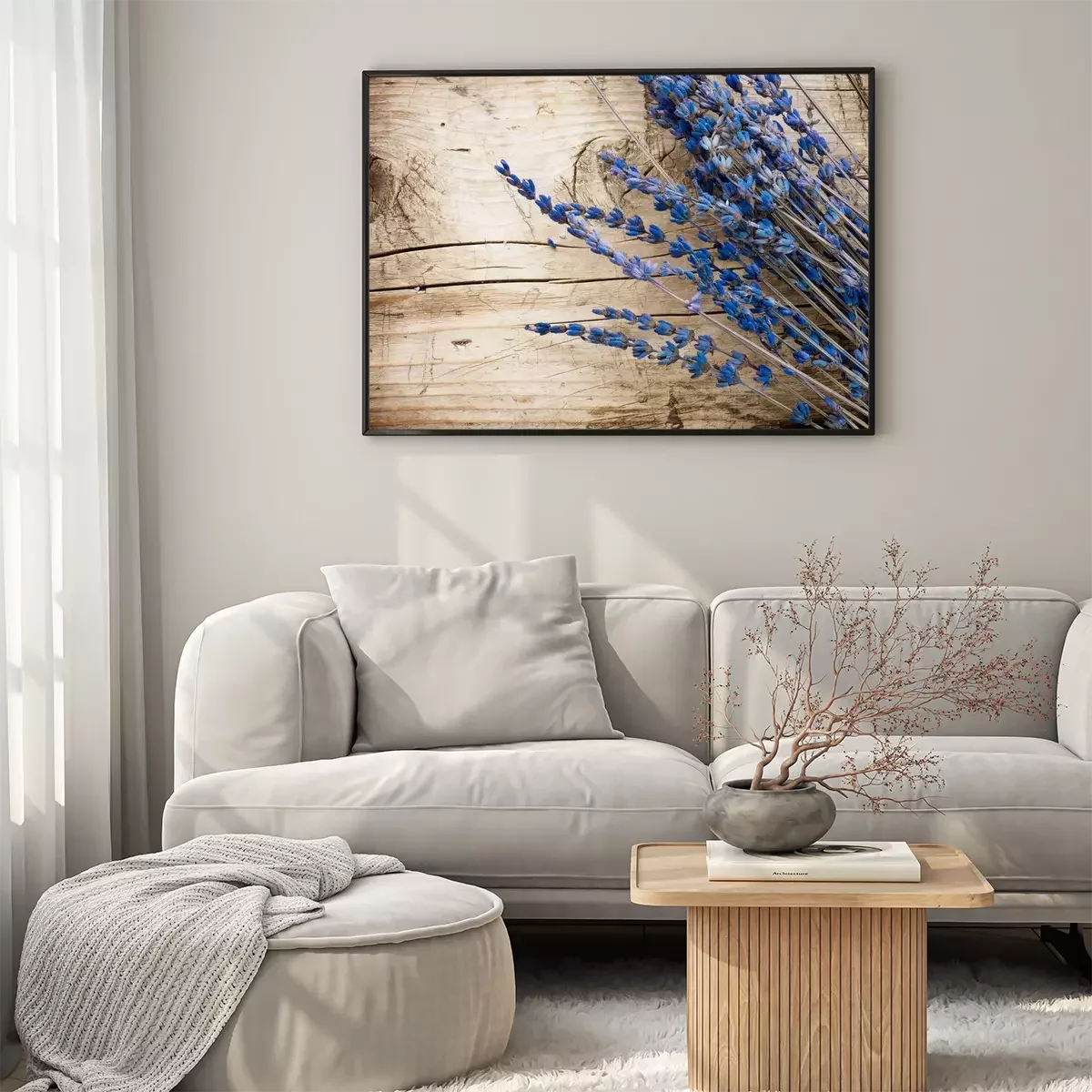 Poster: Stilleven lavendel op de achtergrond van een houten plank