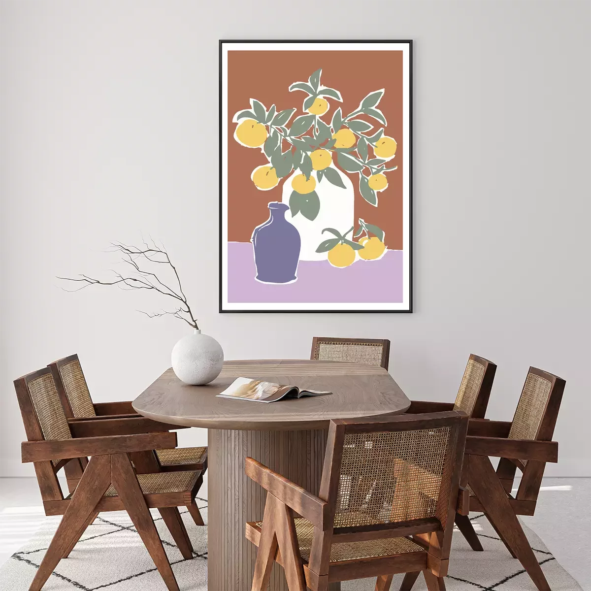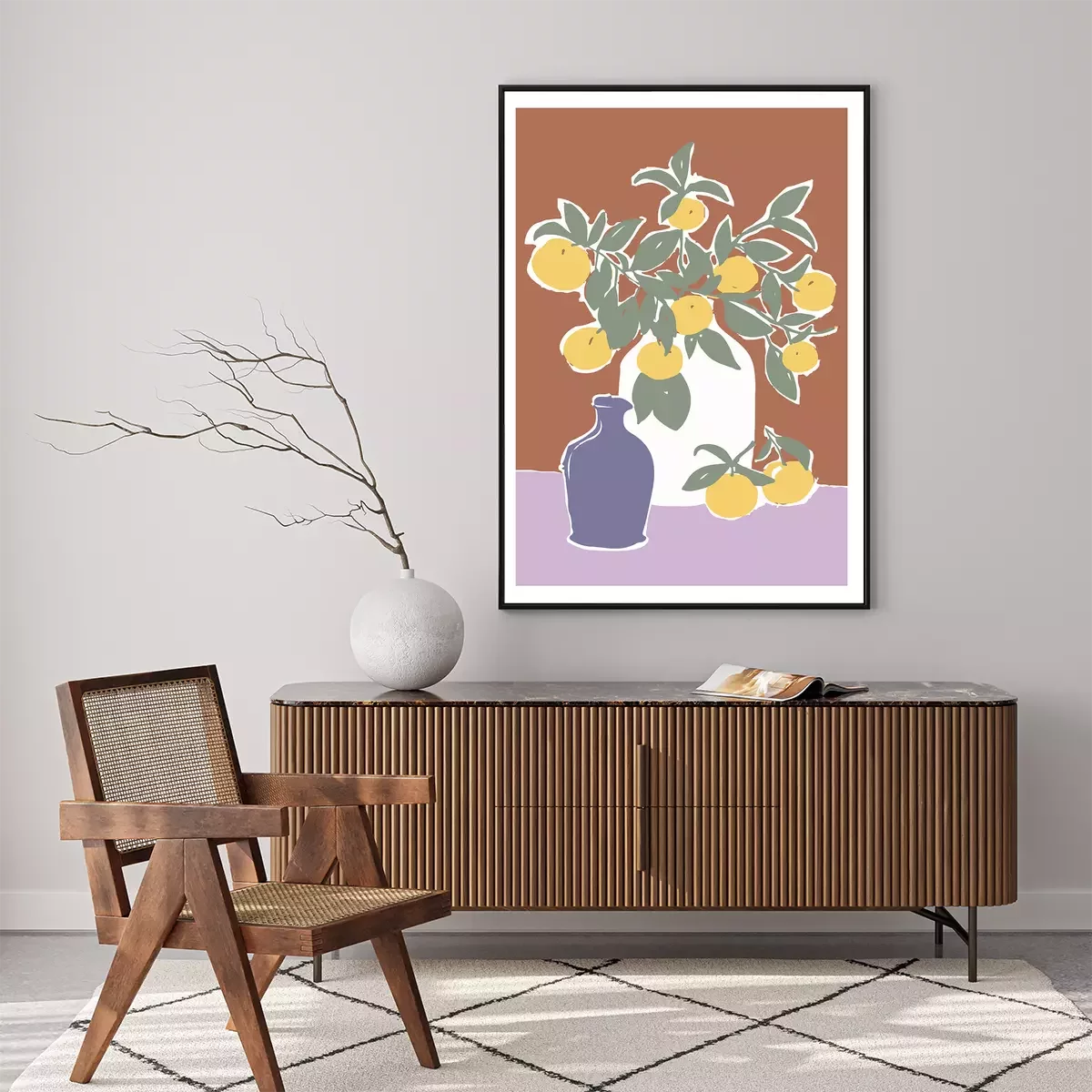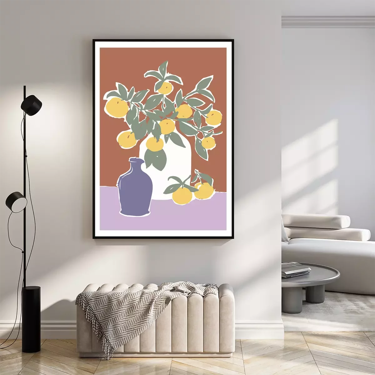 Poster: Stilleven met vazen en citroenen aan takken