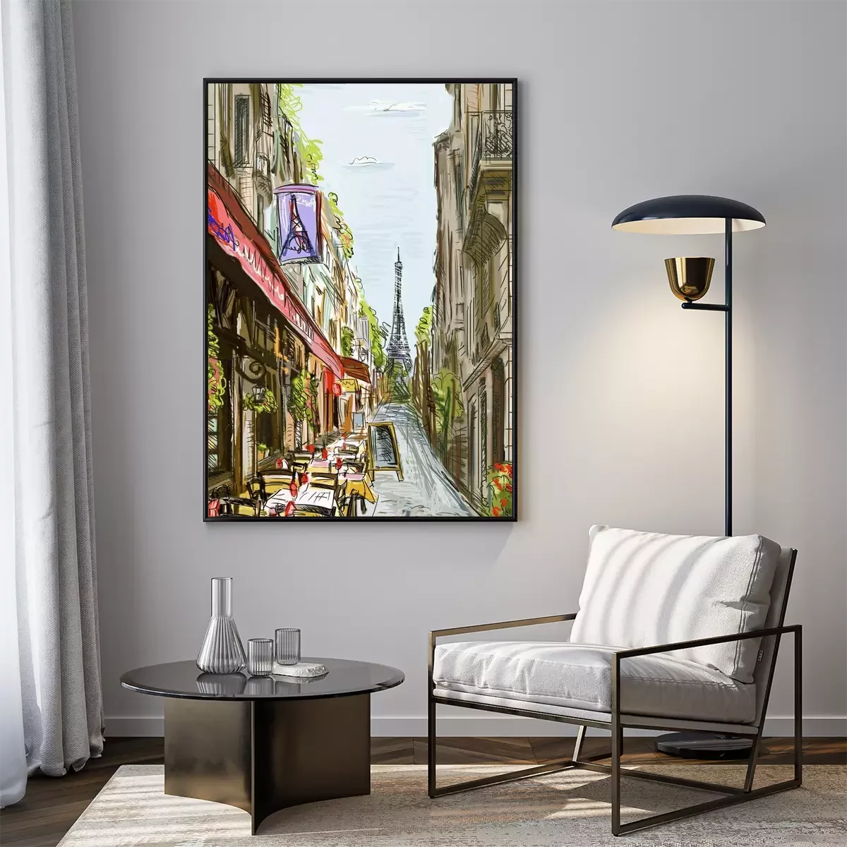 Minimalistische Parijse straatillustratieProbleemloze bezorging verzorgd door vertrouwde vervoerders