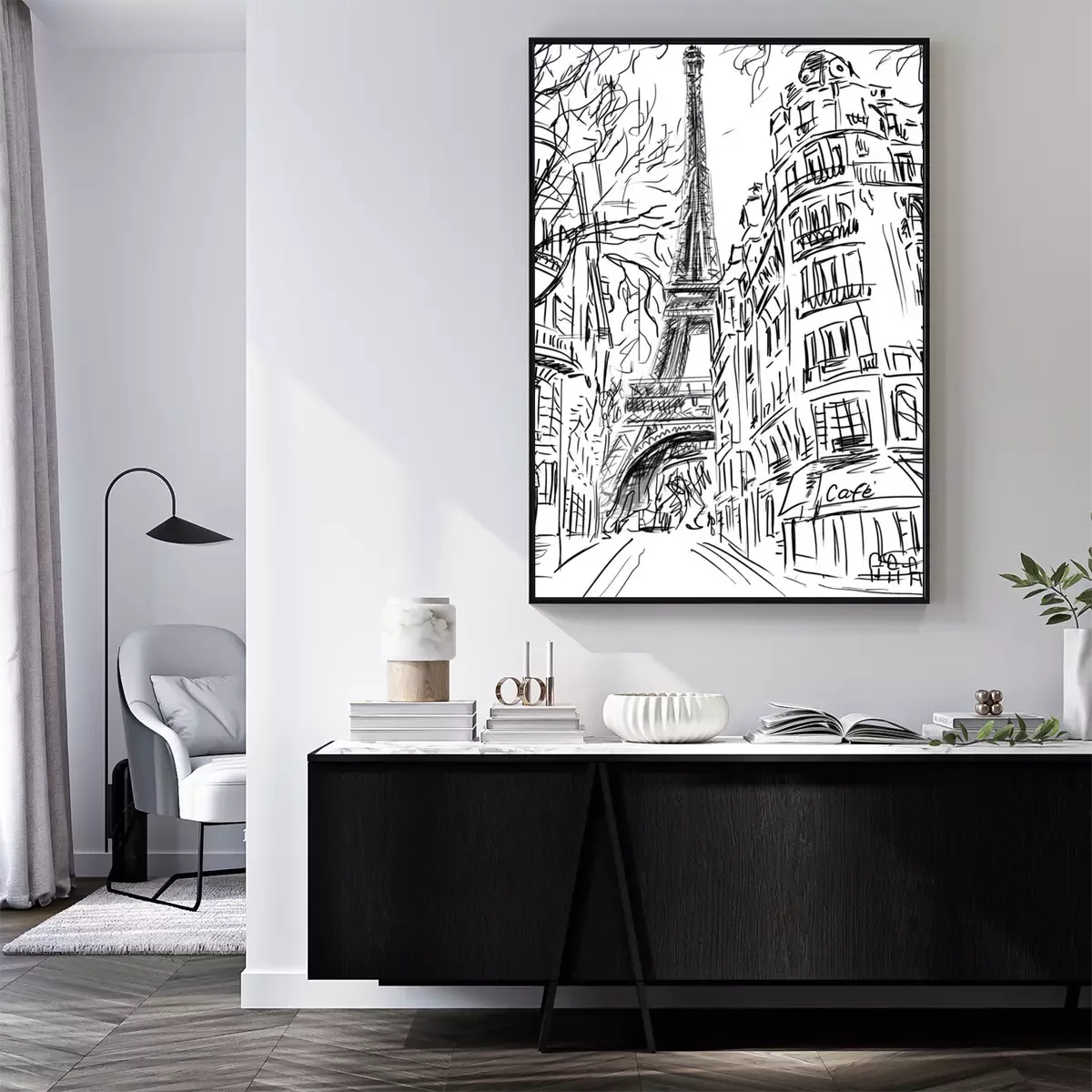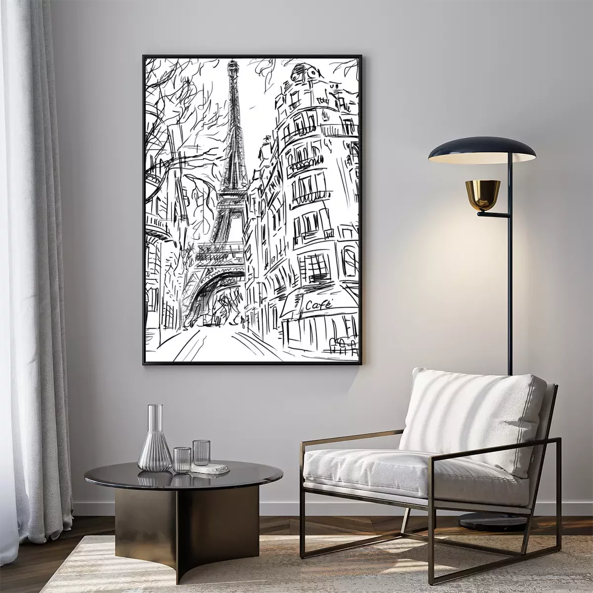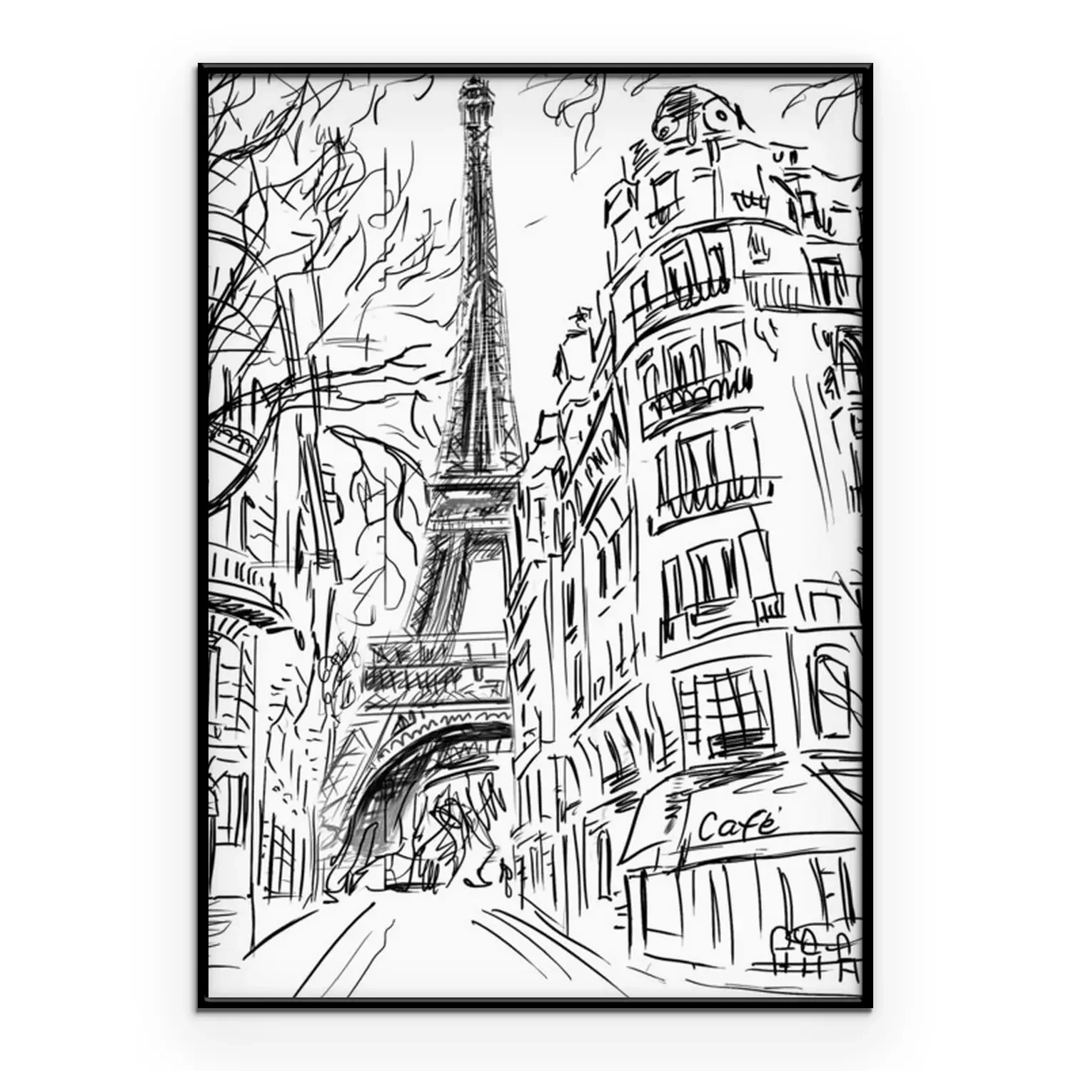 Poster: Straat in Parijs vlakbij de Eiffeltoren