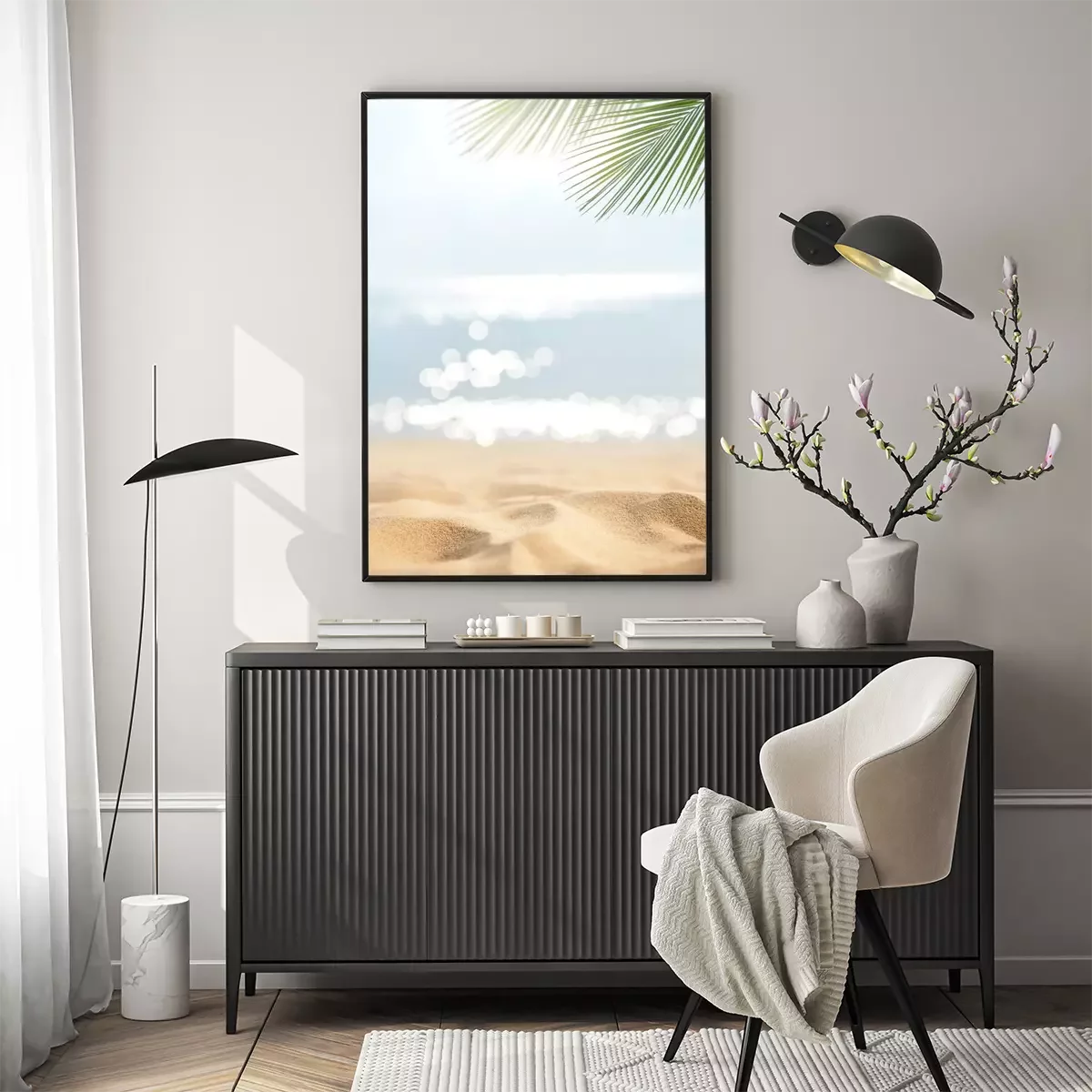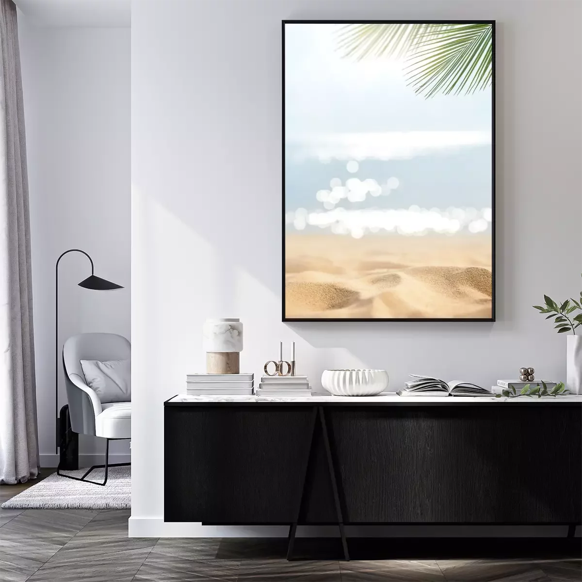 Poster: Strand en wazige zee