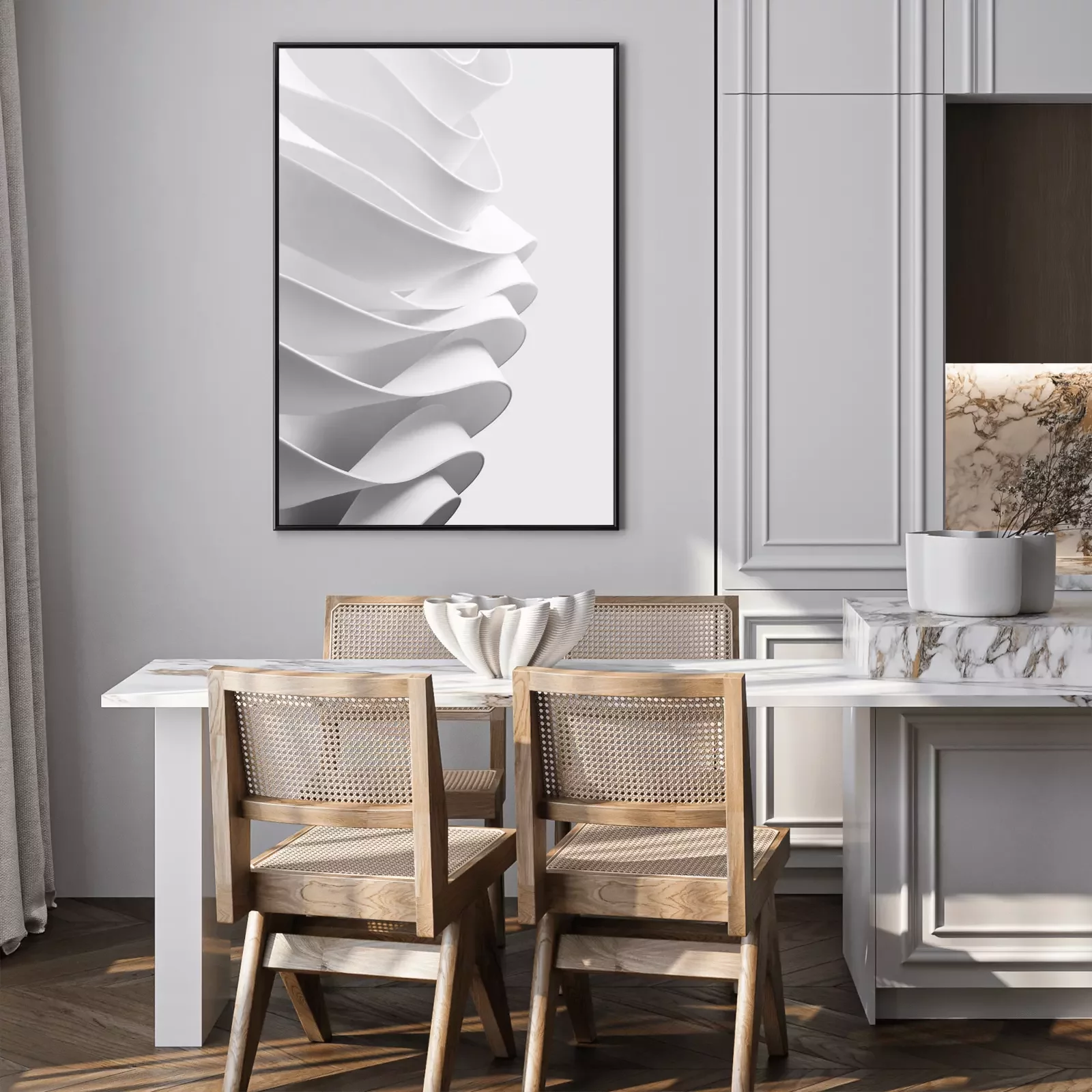Poster: Structure with wavy white elements, abstract background