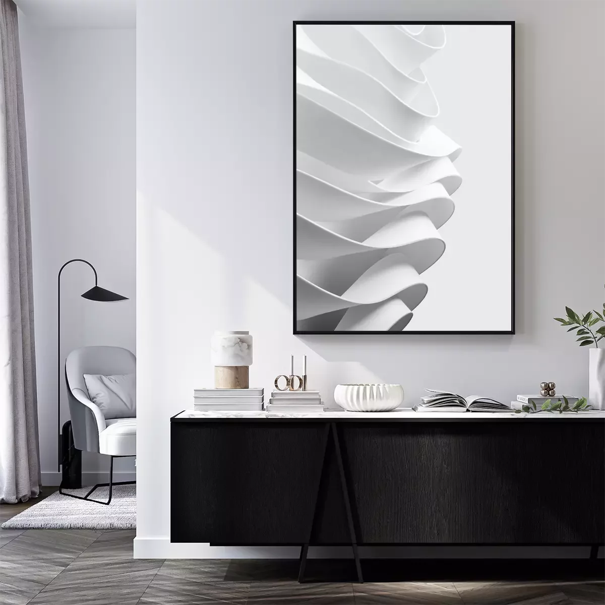 Poster Structure with wavy white elements, abstract background