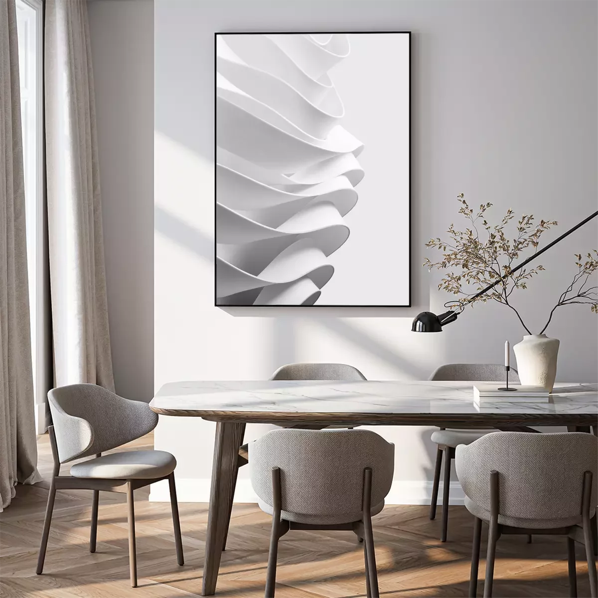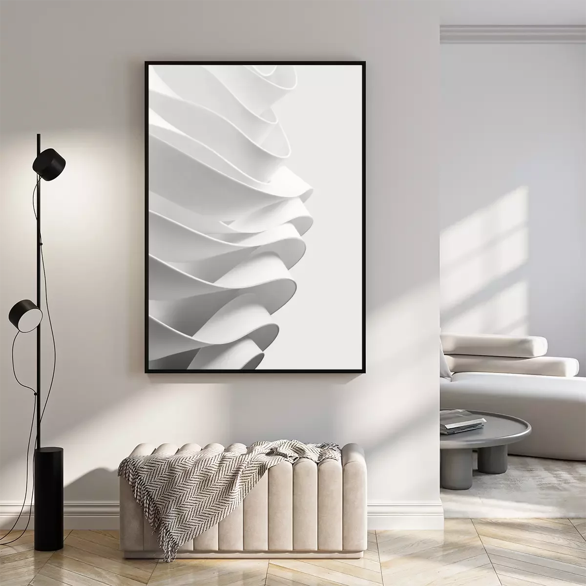 Curved elements, white abstract background