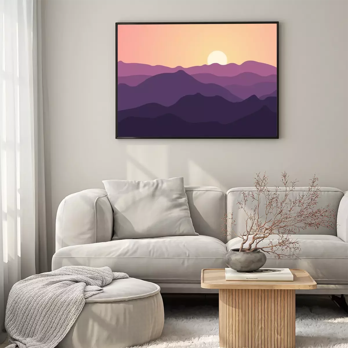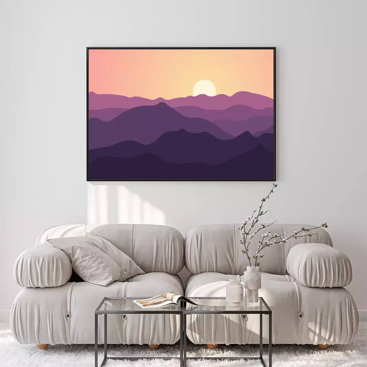 Poster: Sunset in the mountains - Purple mountains - illustration