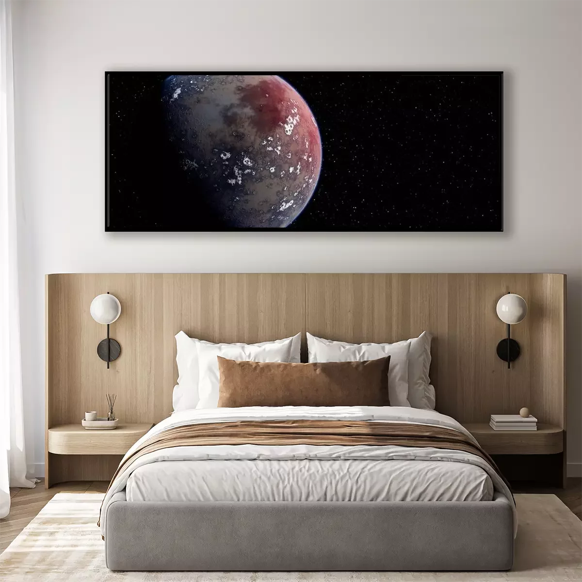 Poster super-earth planet, realistic exoplanet, planet suitable for colonization, earth-like planet in far space, planets background 3d render