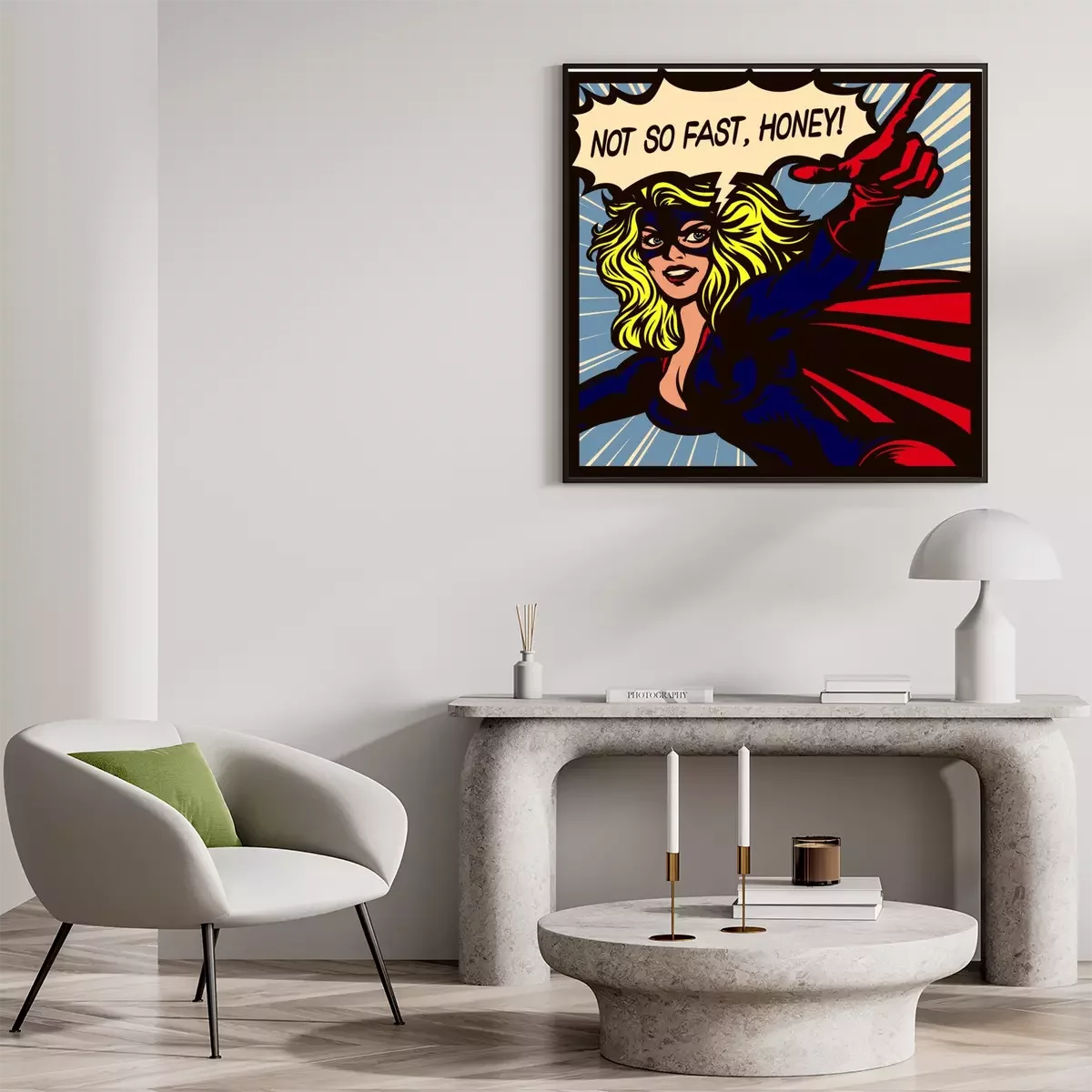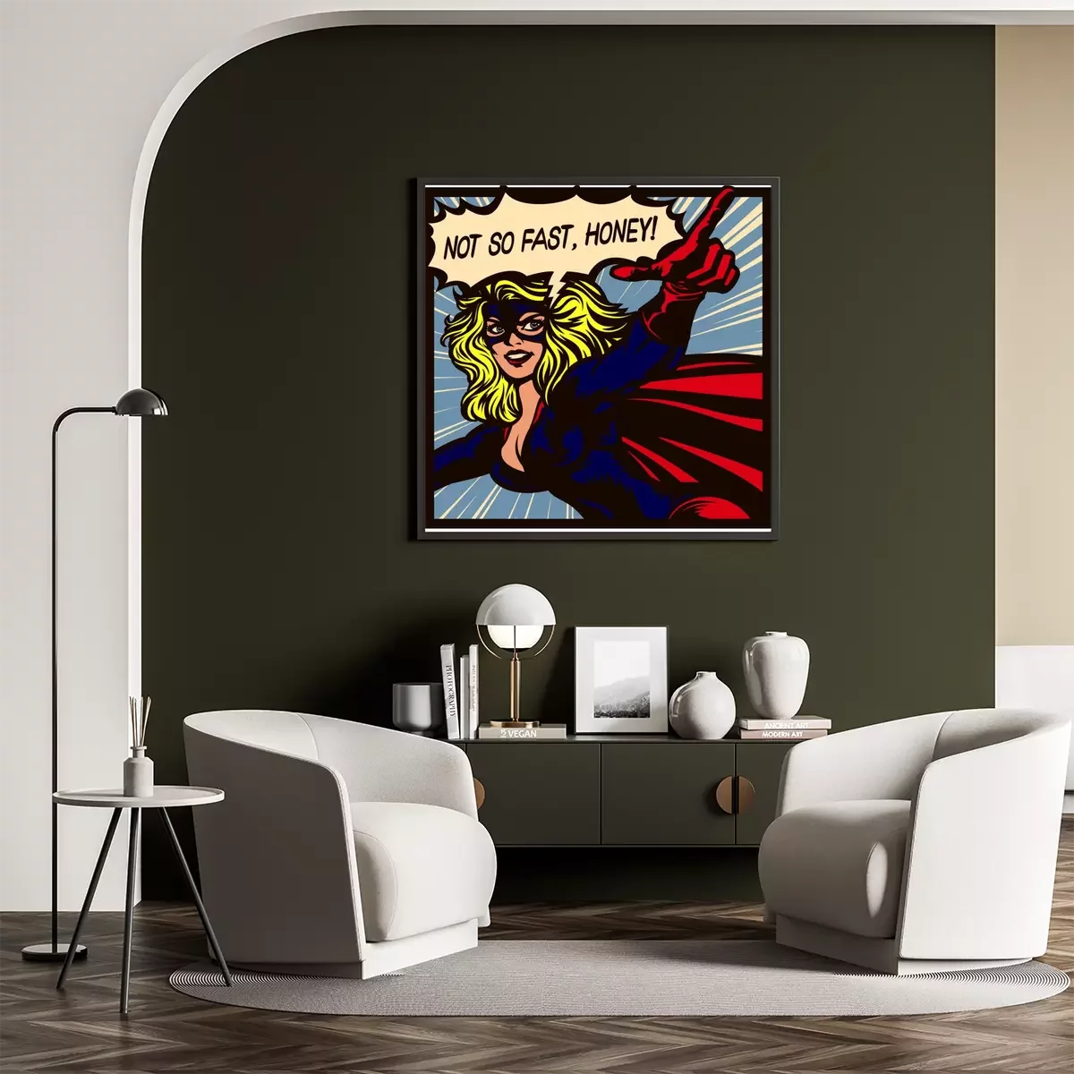 Poster: Superheldin in komische stijl