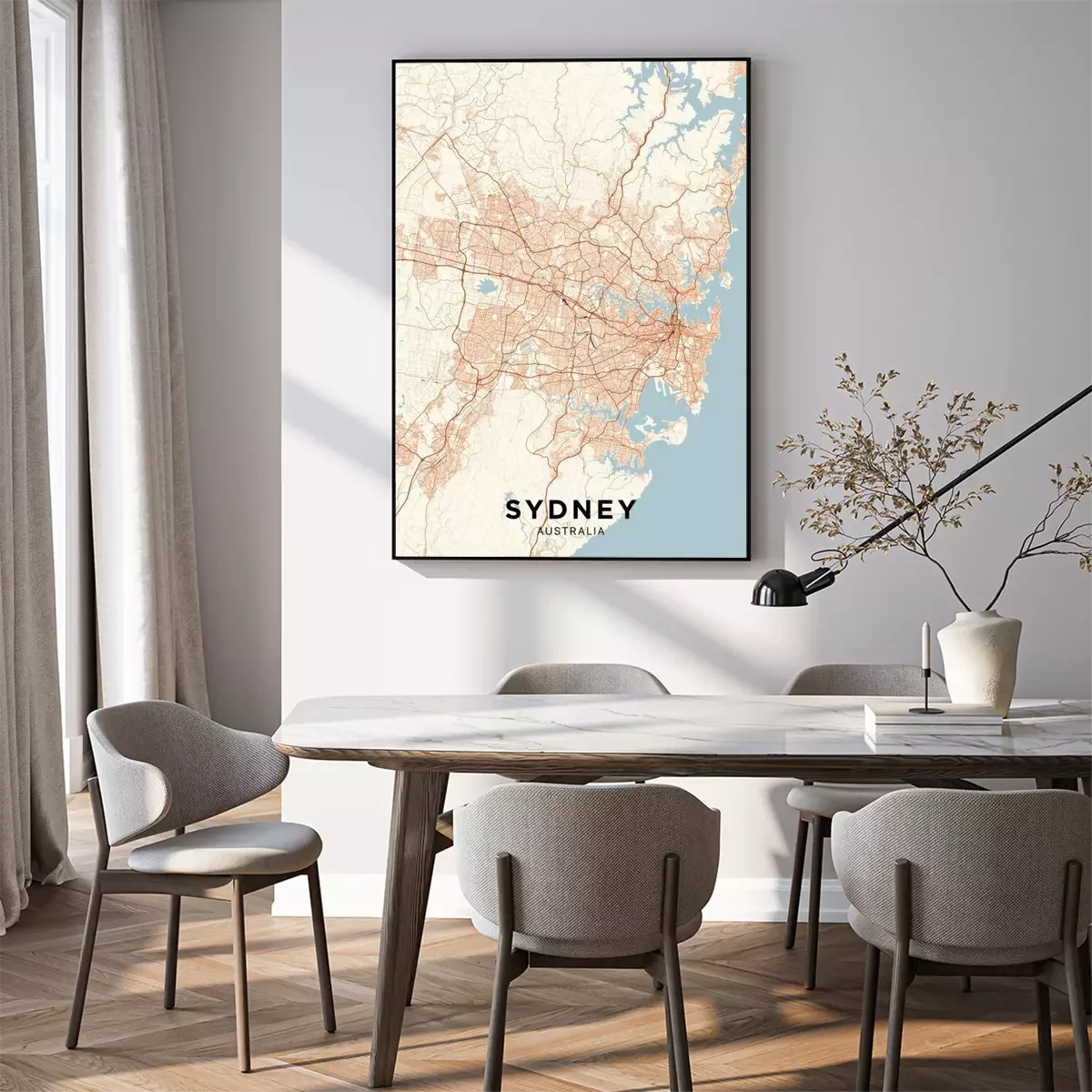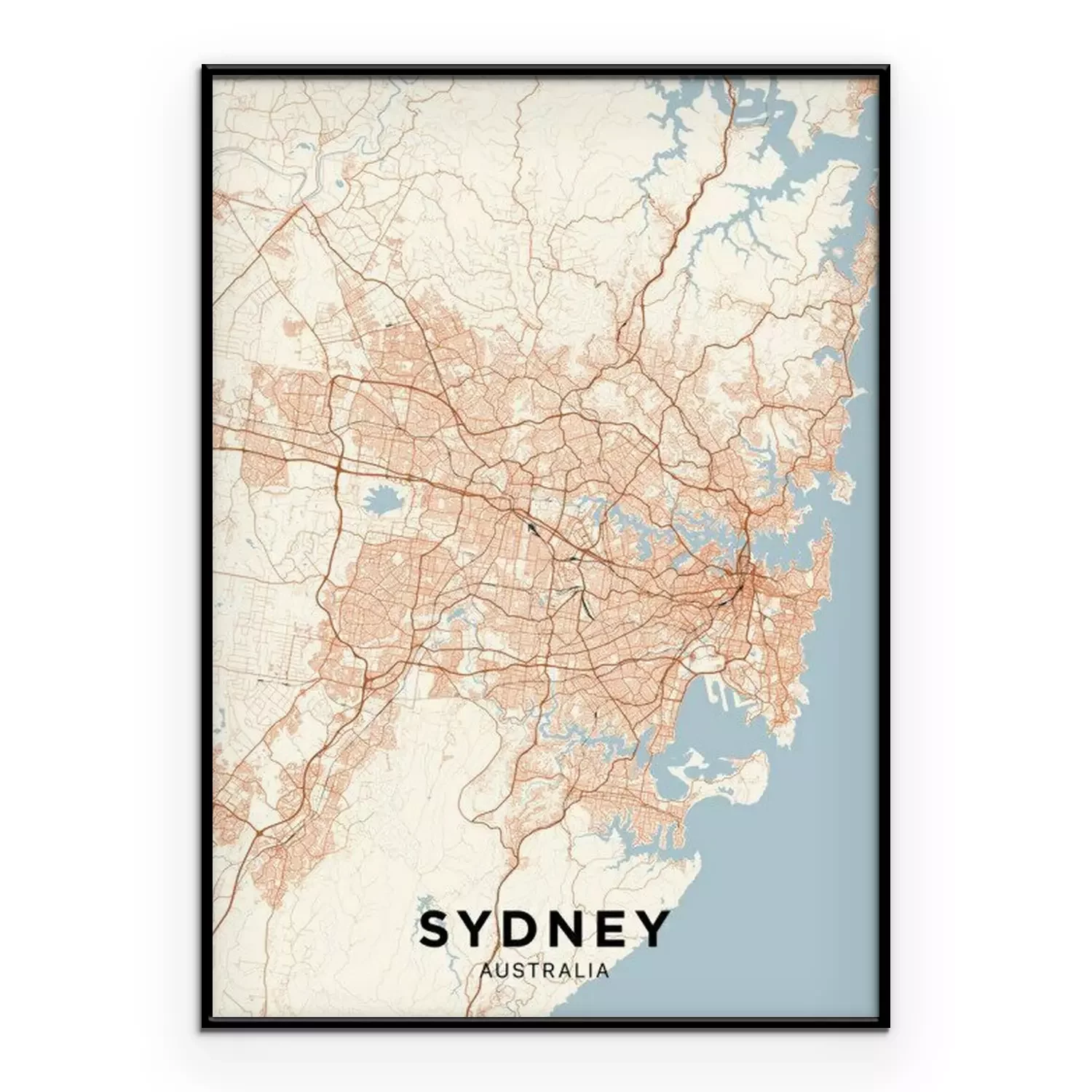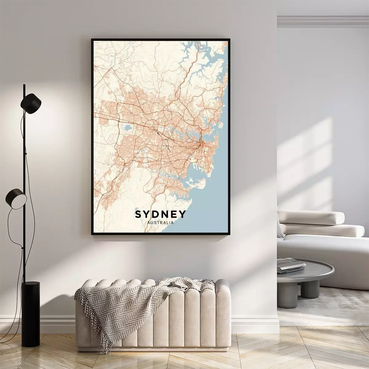 Poster: Sydney (Australia) city map. Poster with map of Sydney in color. Scheme of streets and roads of Sydney.