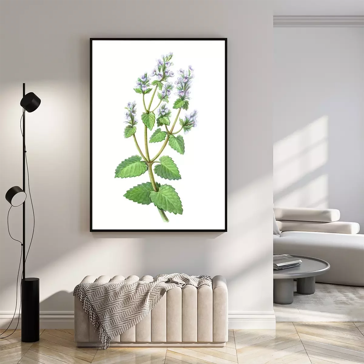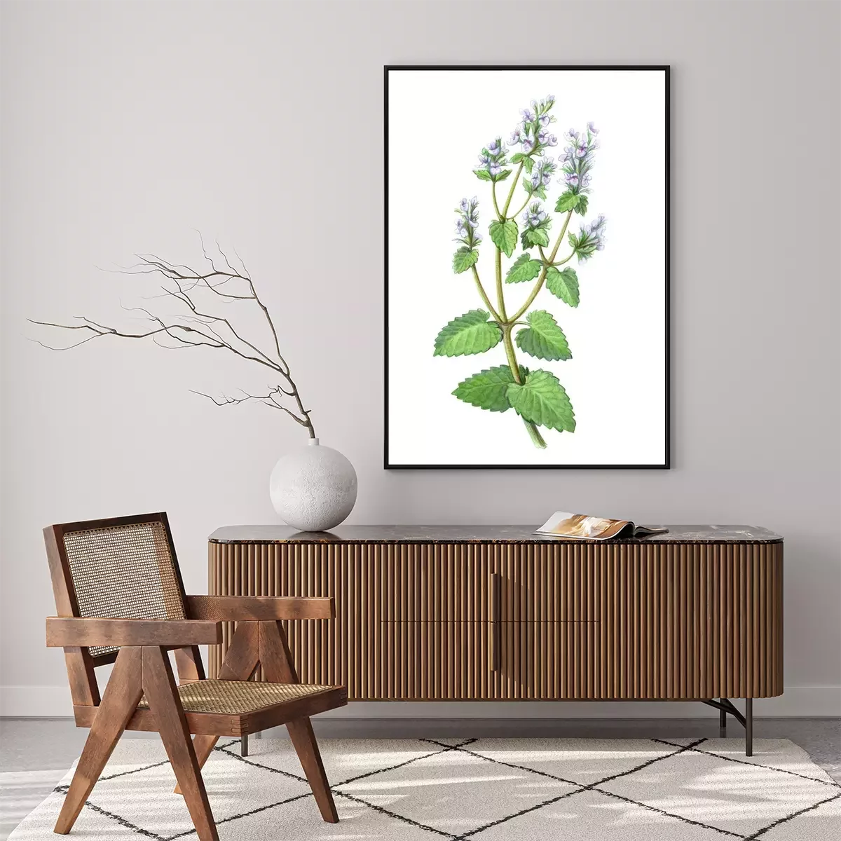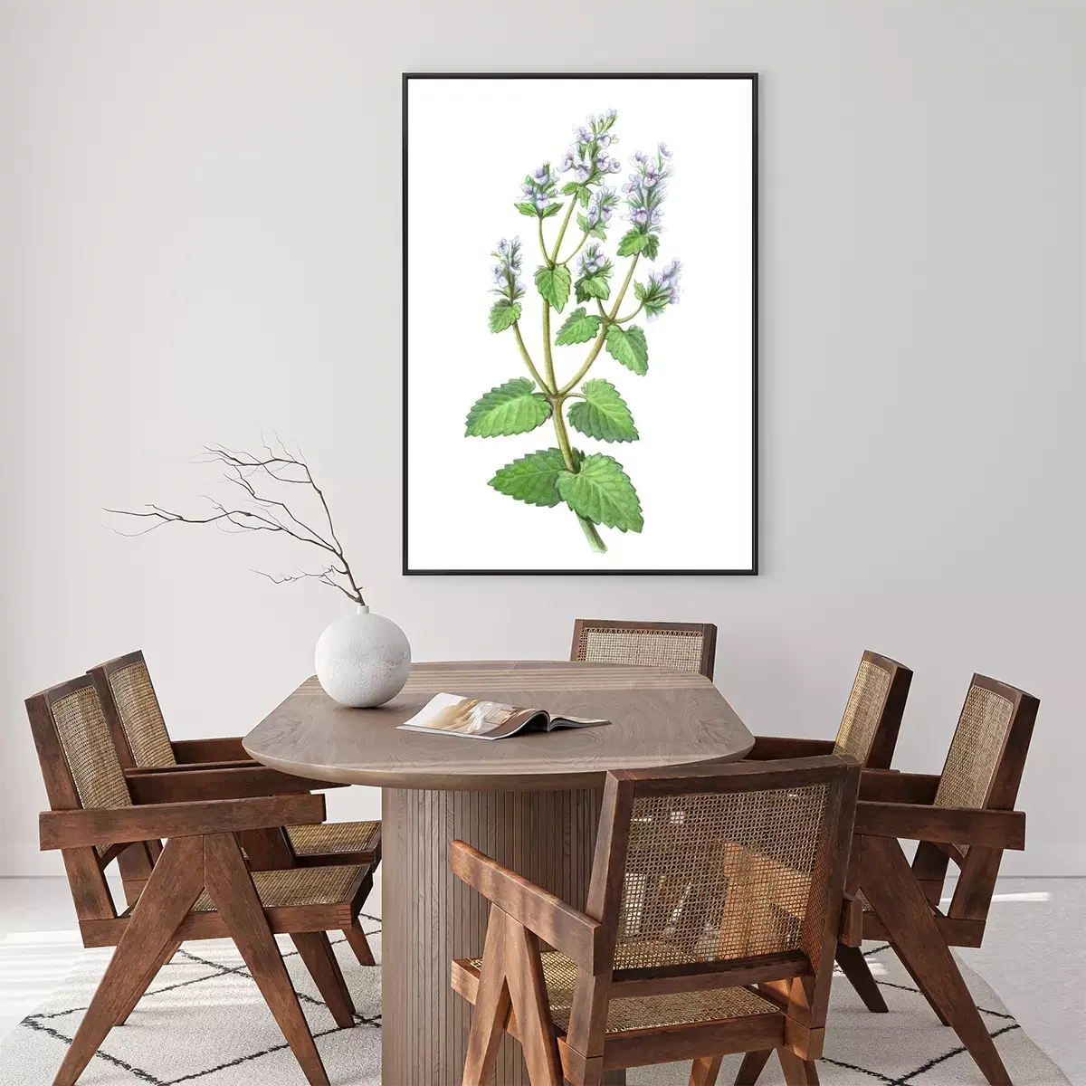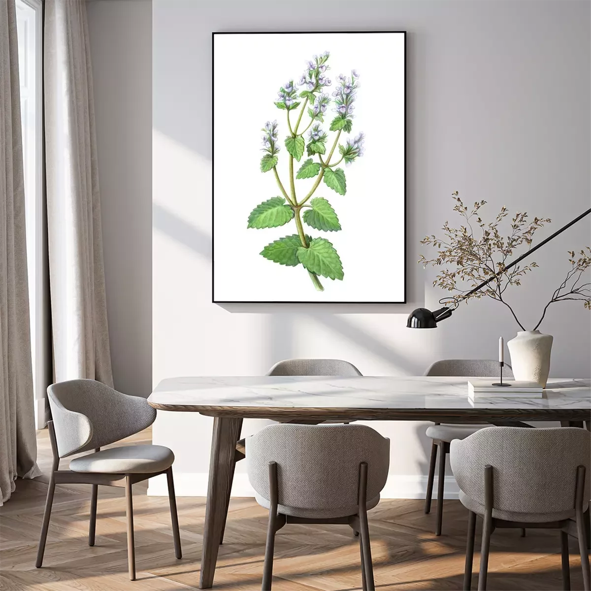 Poster: Takje met vlezige bladeren en delicate bloemen