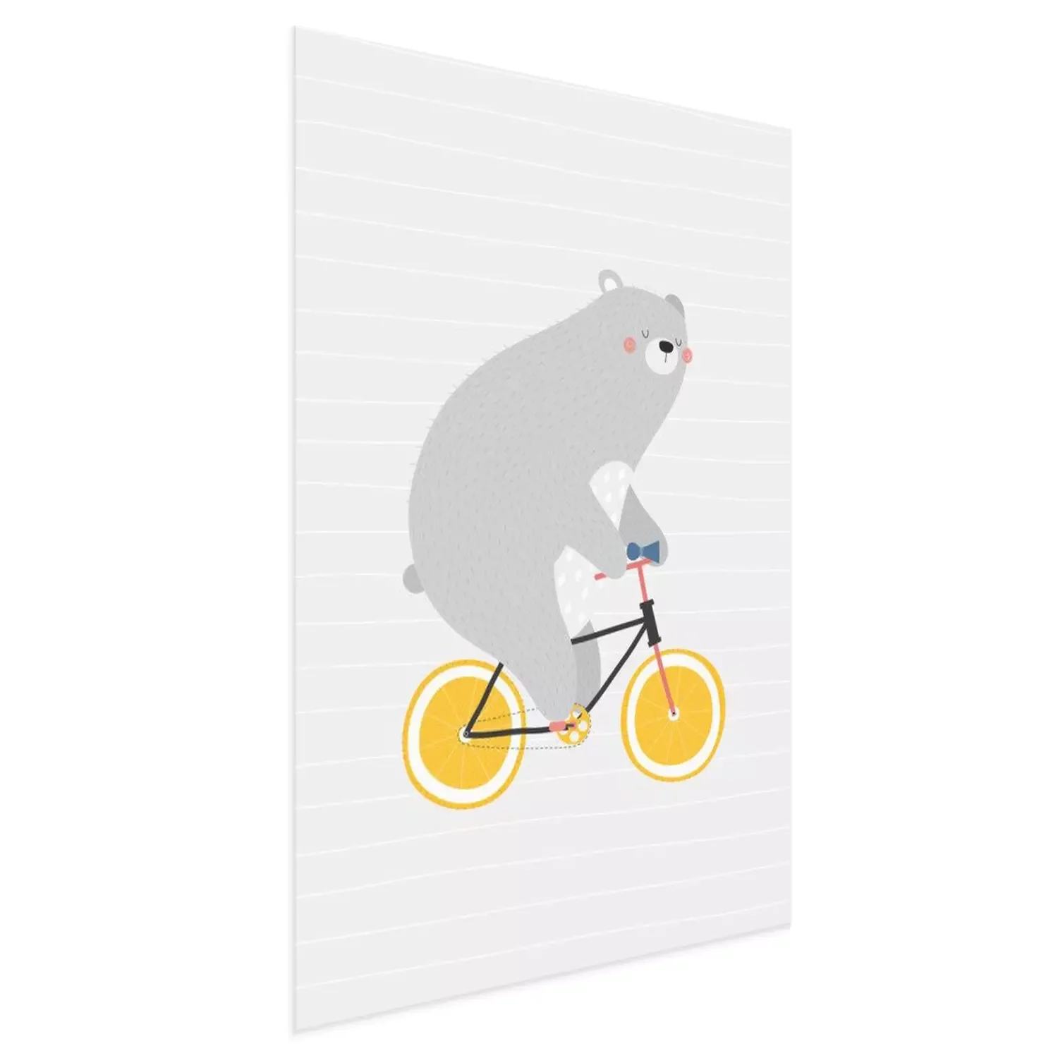Poster Teddybär im skandinavischen Stil auf einem Fahrrad