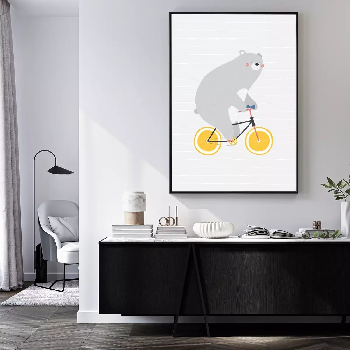 Poster: Teddybär im skandinavischen Stil auf einem Fahrrad