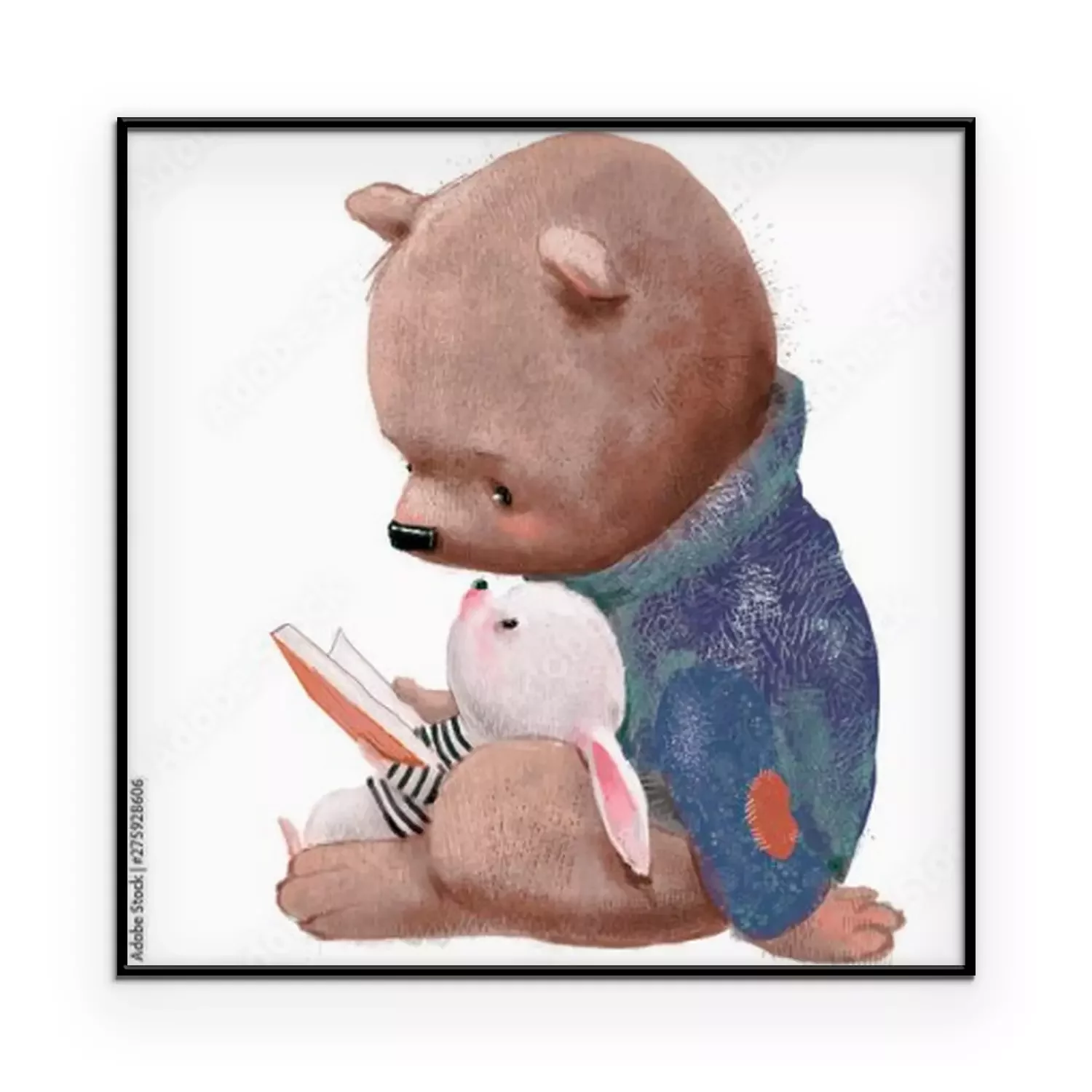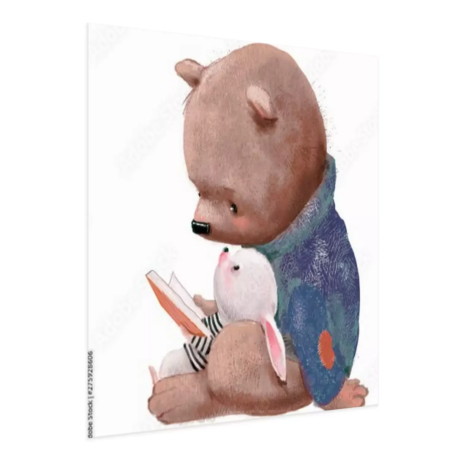 Poster Teddybeer en konijntje die een boek lezen