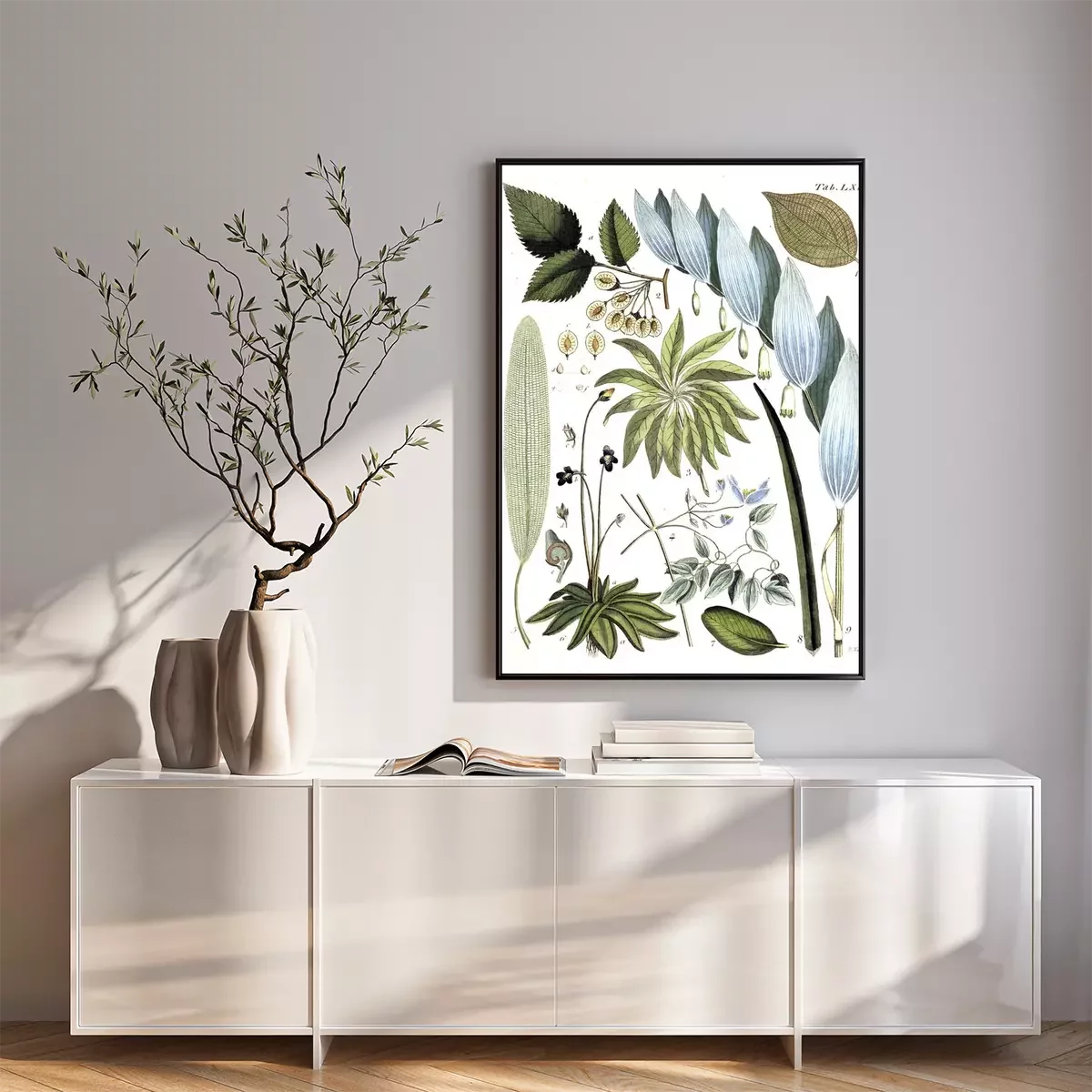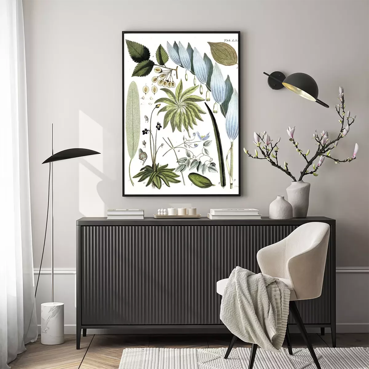 Poster: Tekeningen van planten en knoppen op een witte achtergrond