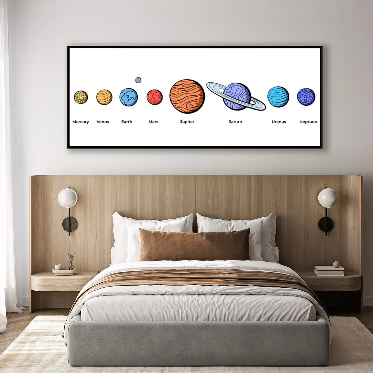 Poster: Tekenversie zonnestelsel voor kinderen