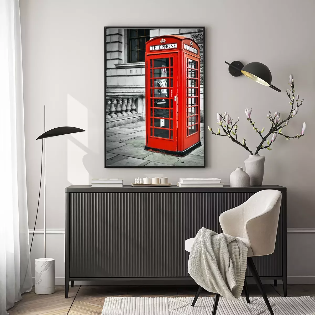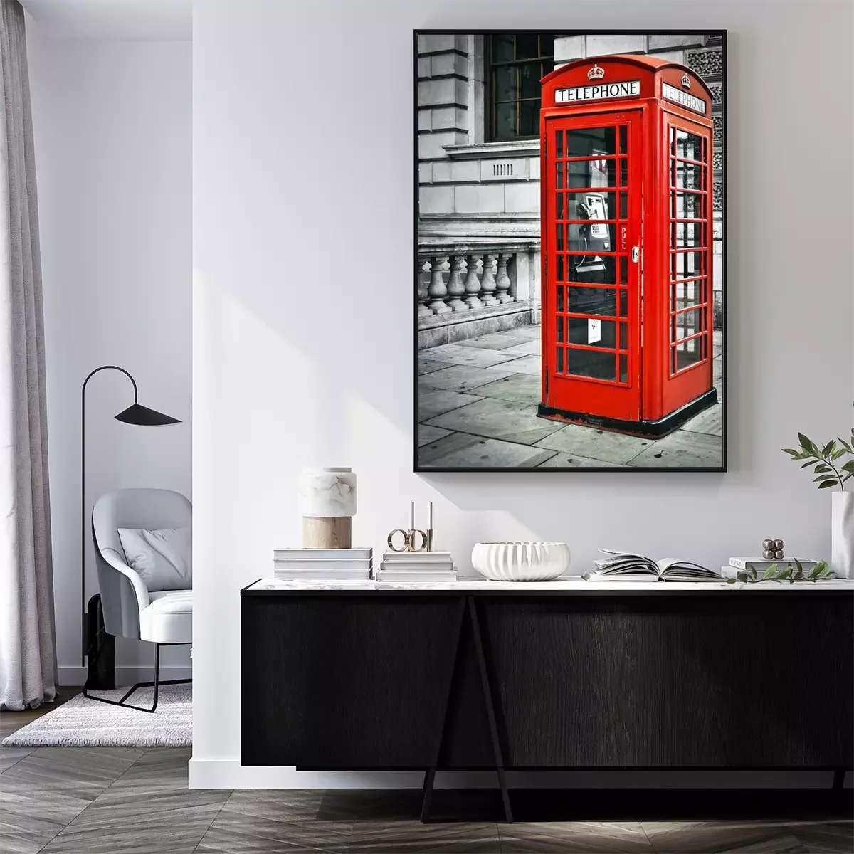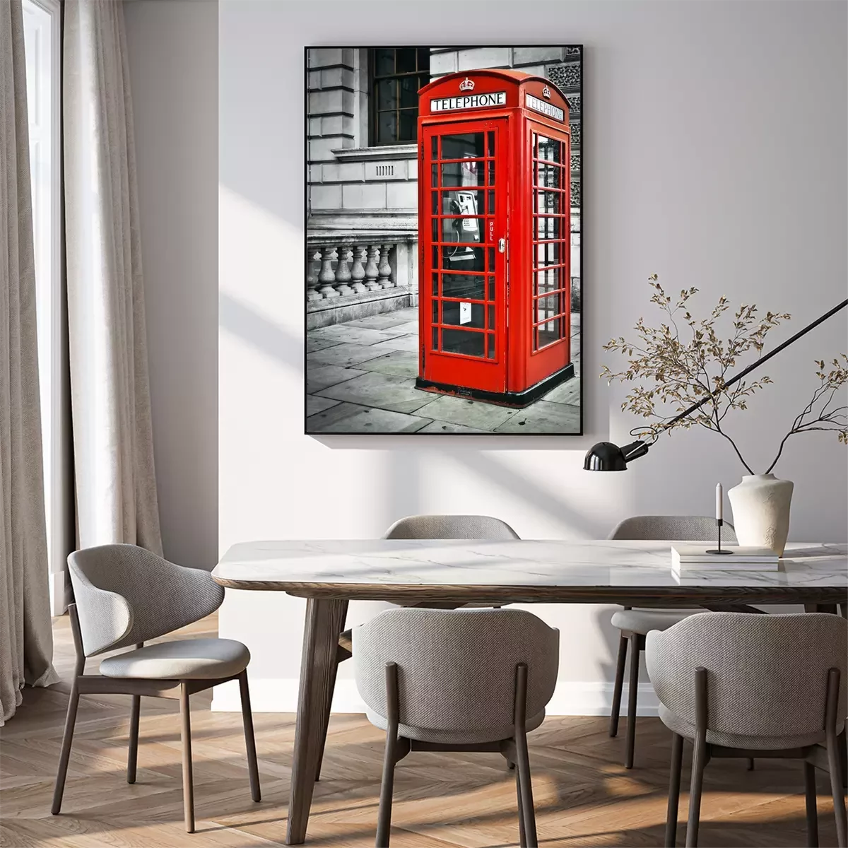 Een zicht op een telefooncel in Londen