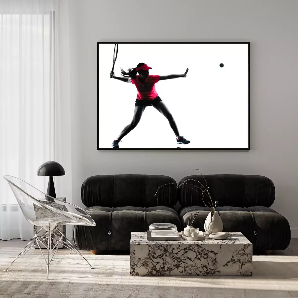 Slank silhouet van een tennisser