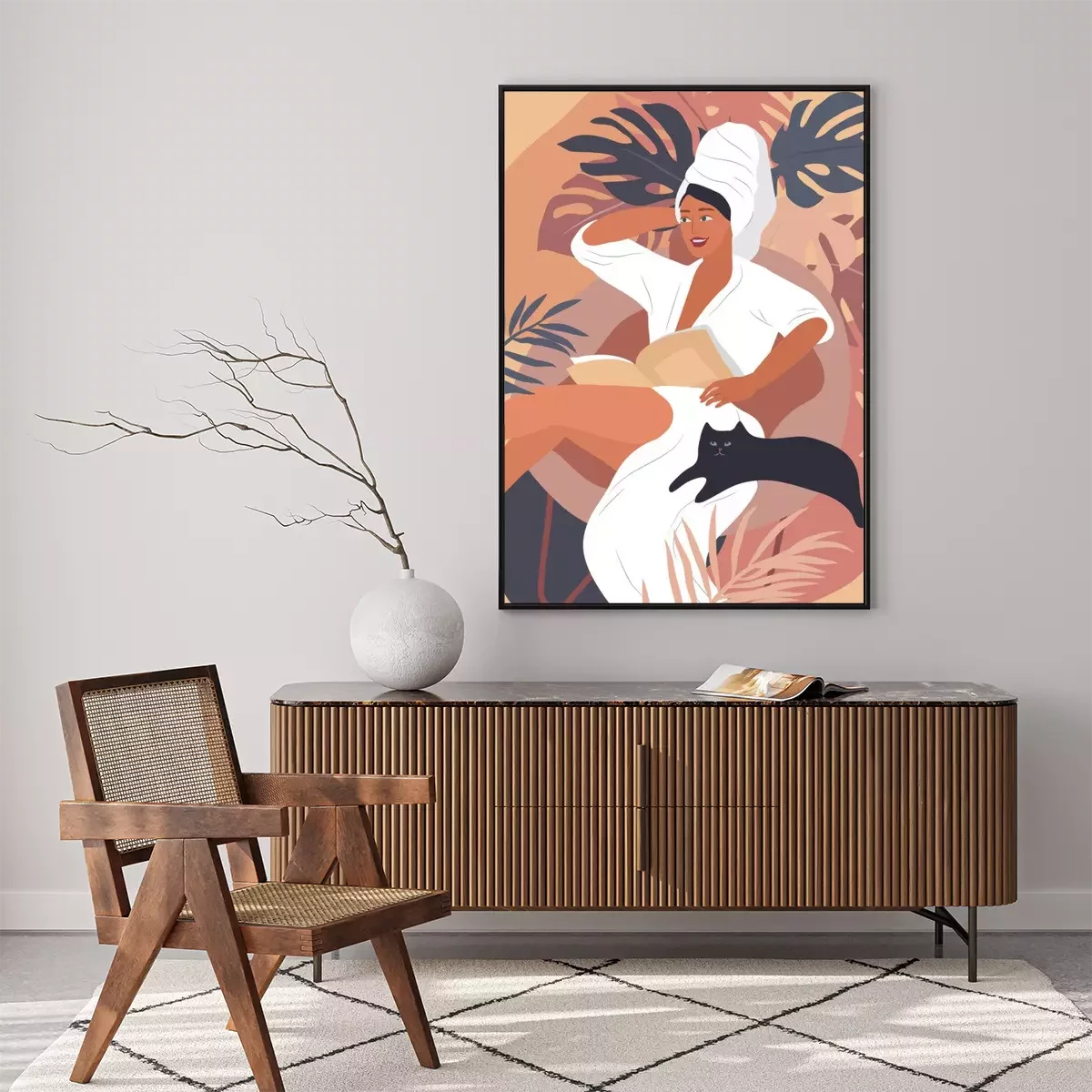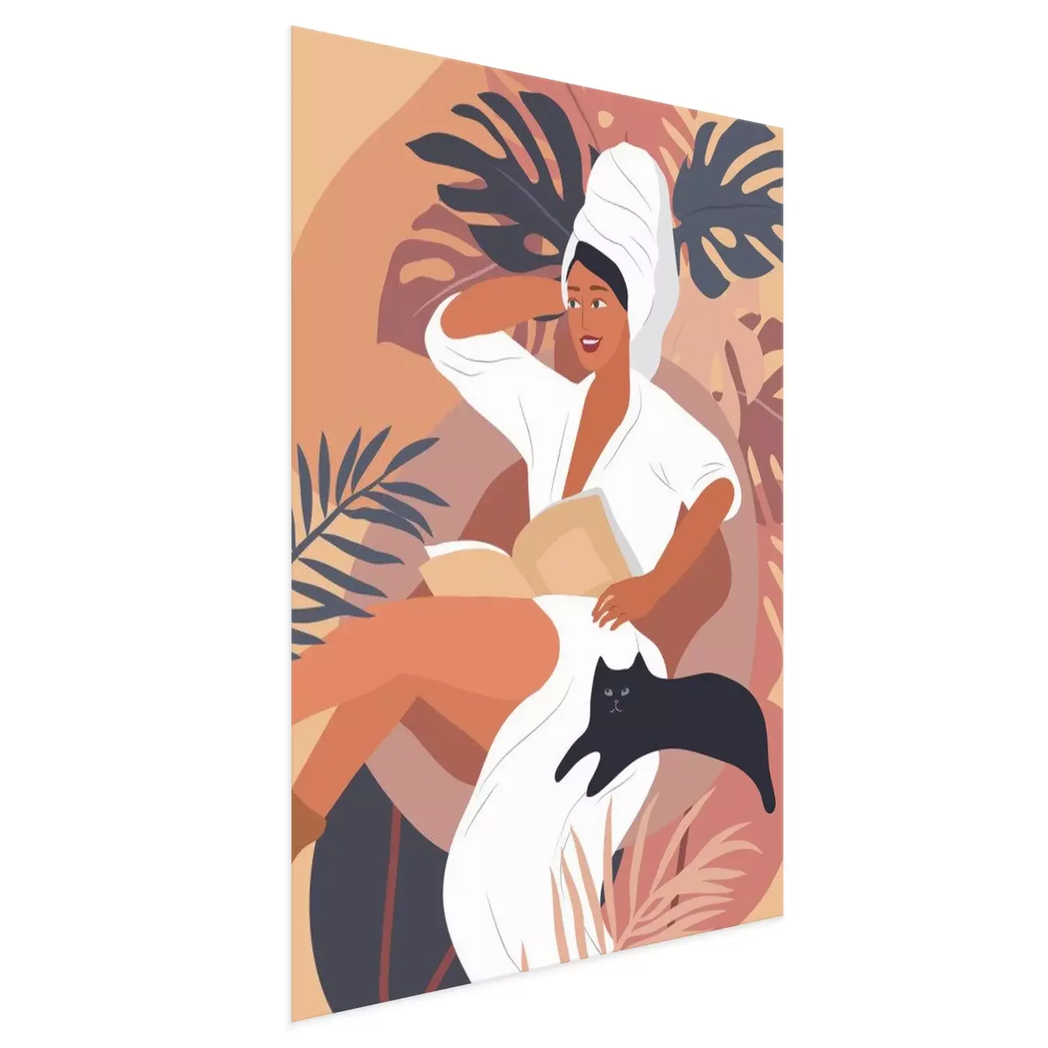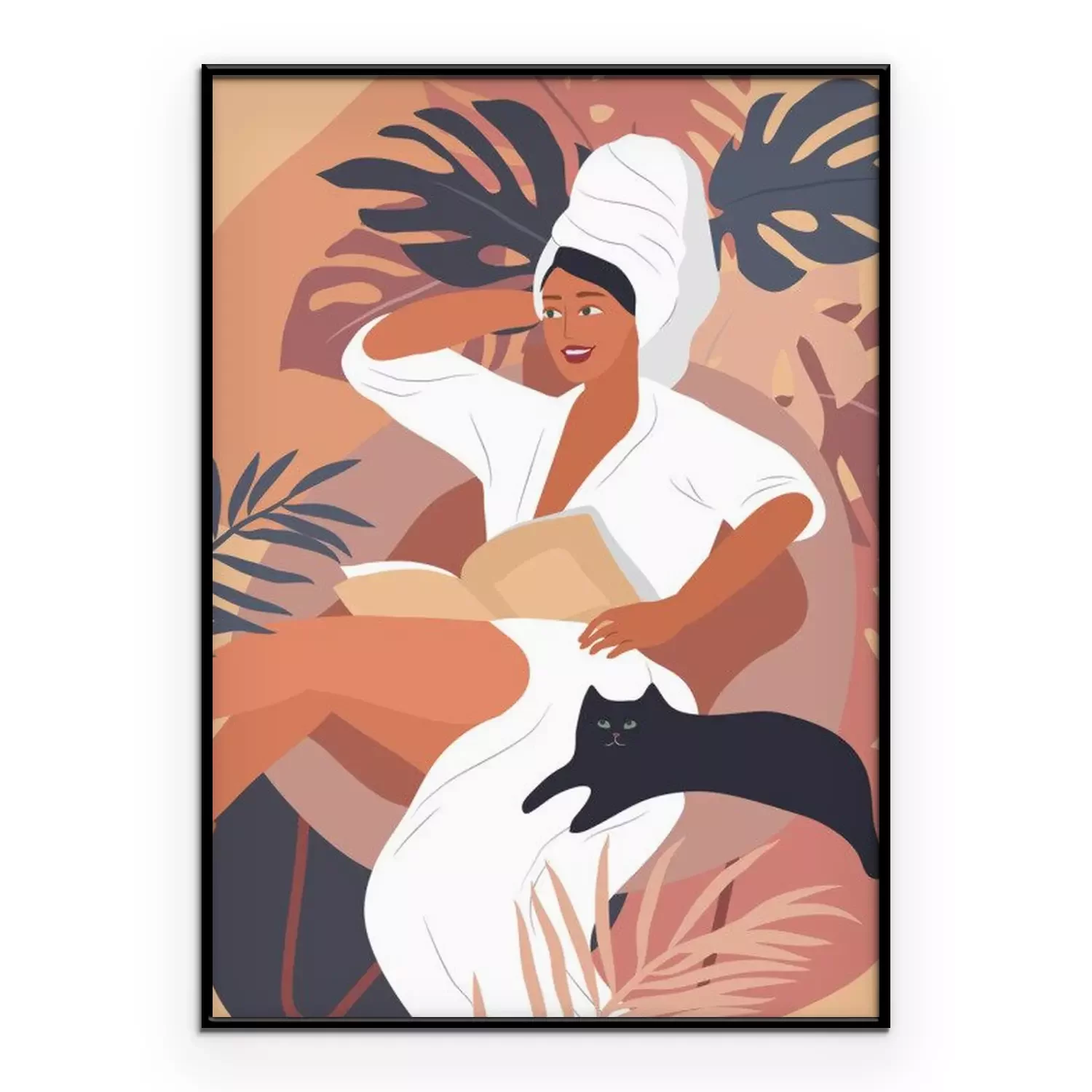 Poster: Tevreden vrouw met een kat aan haar zijde