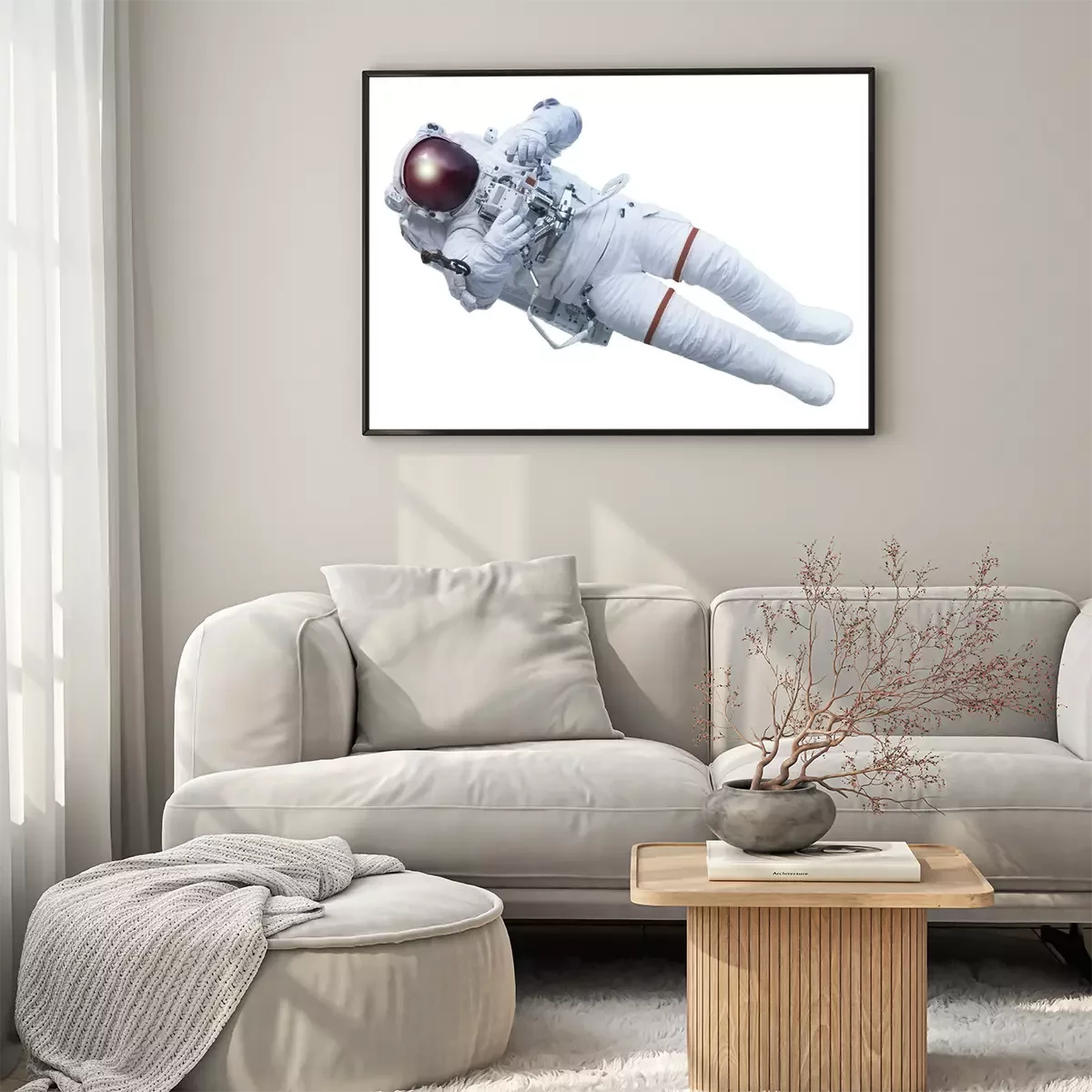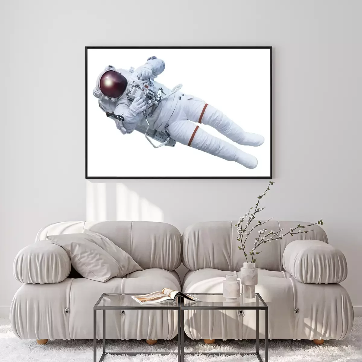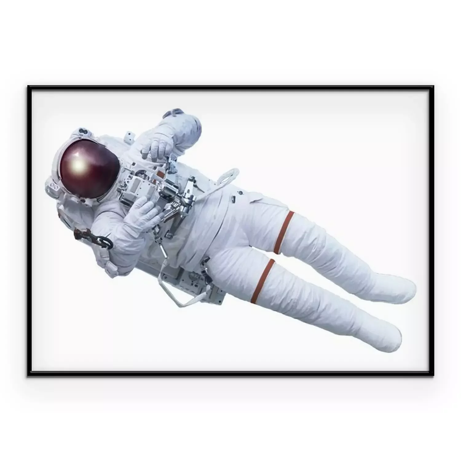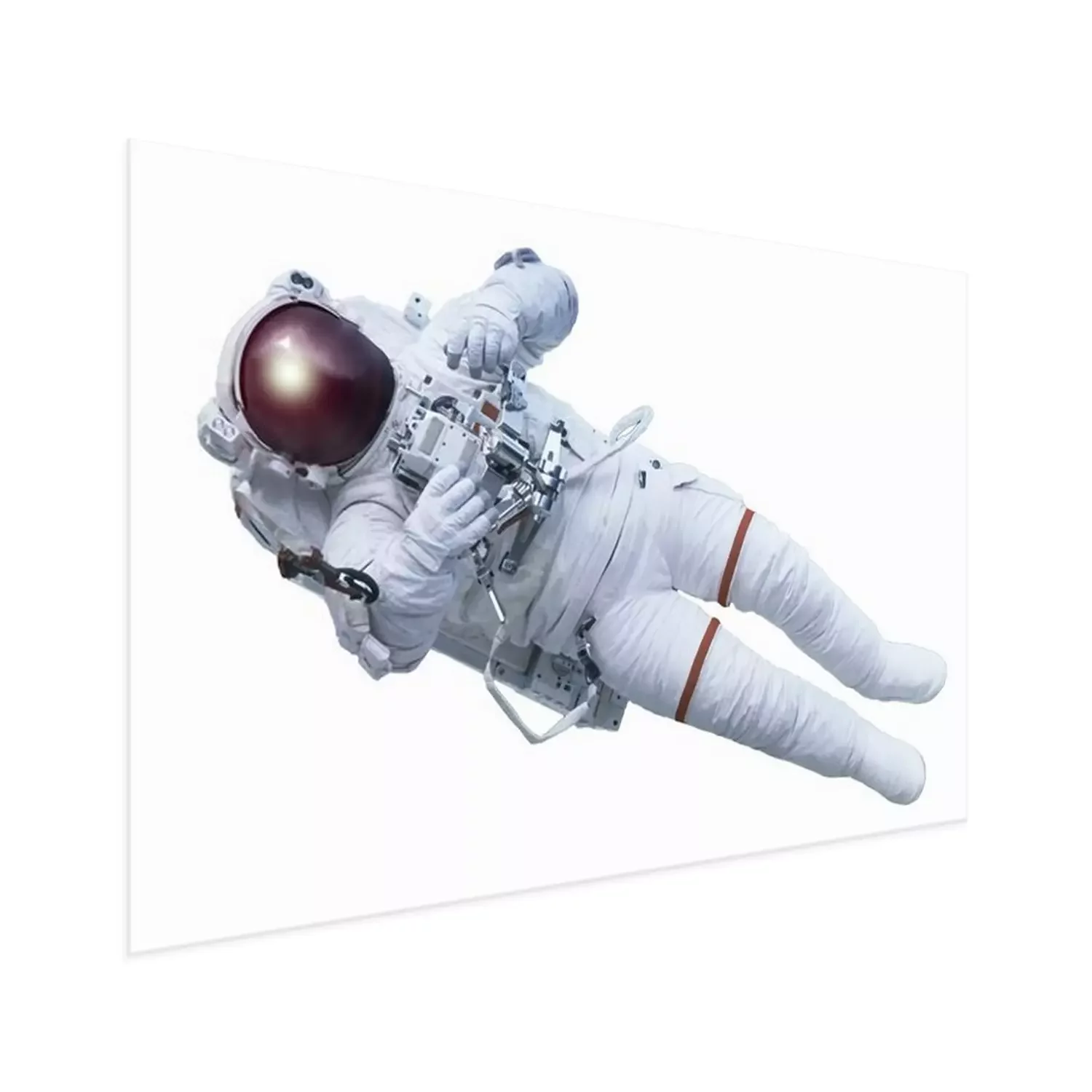 Poster: The astronaut, with the device in hands, in a space suit, isolated on a white background. Elements of this image were furnished by NASA