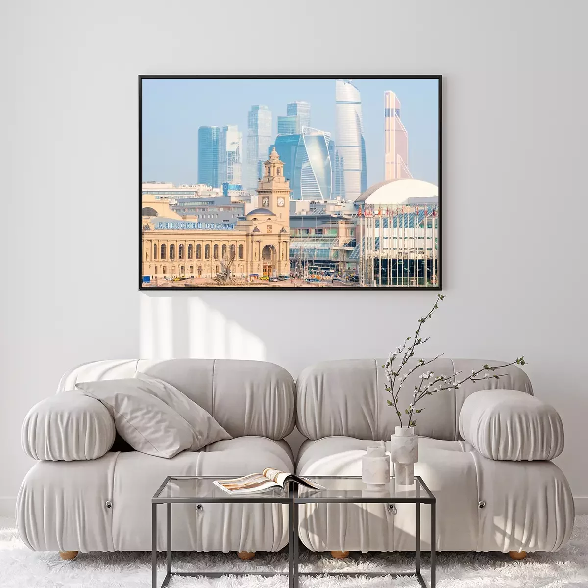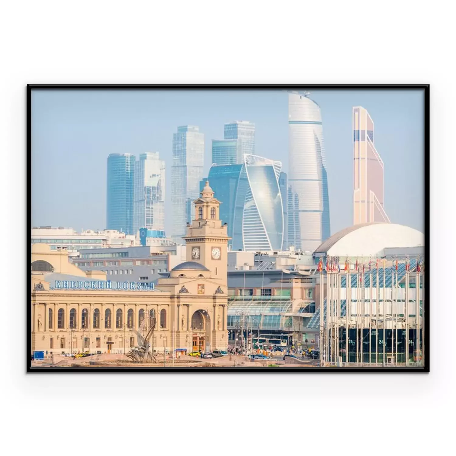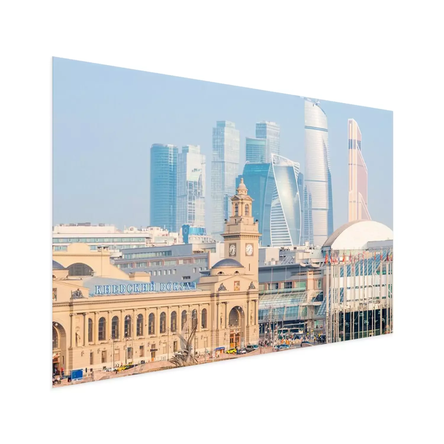 Poster: The building of the Kiev railway station of Moscow and the tall skyscrapers of Moscow City