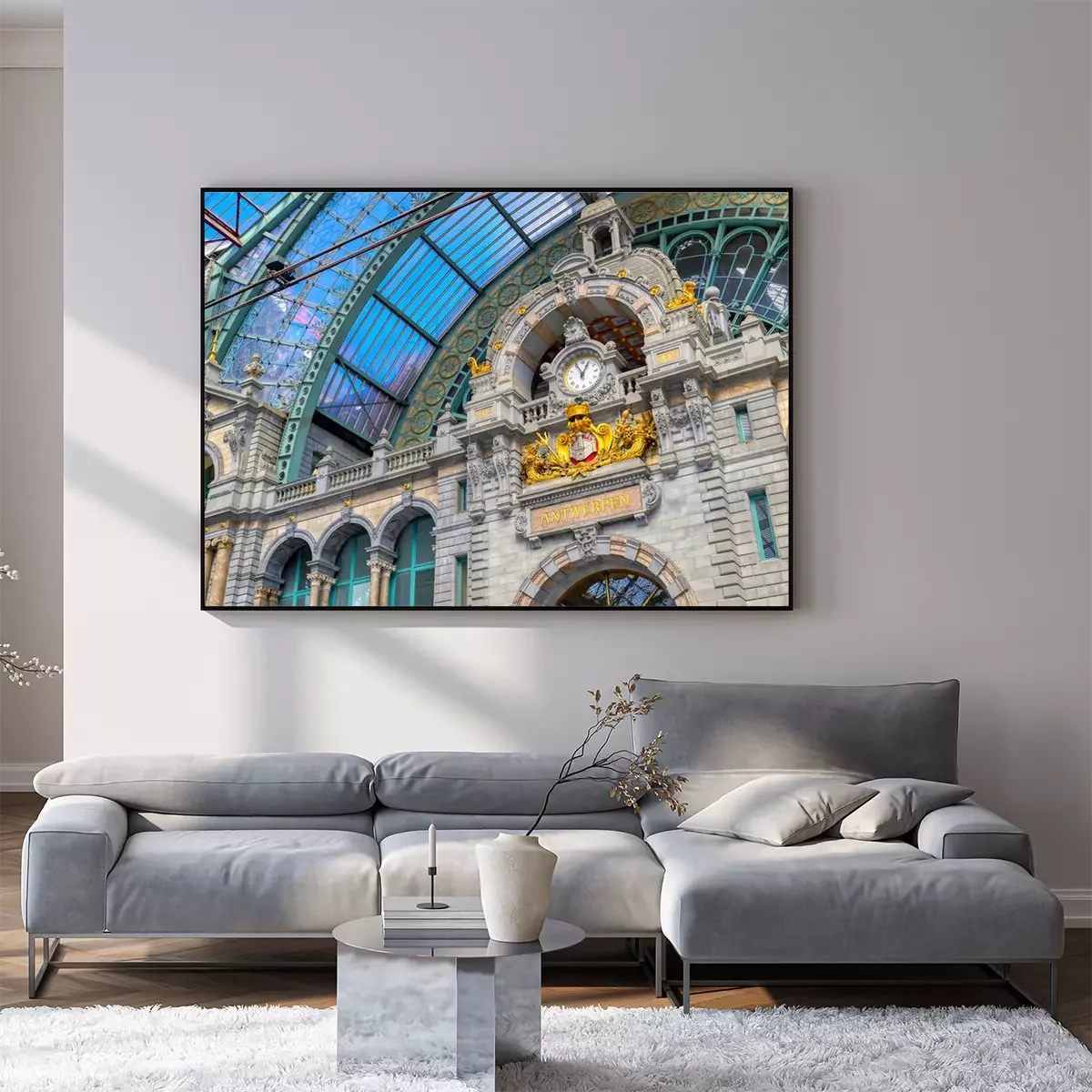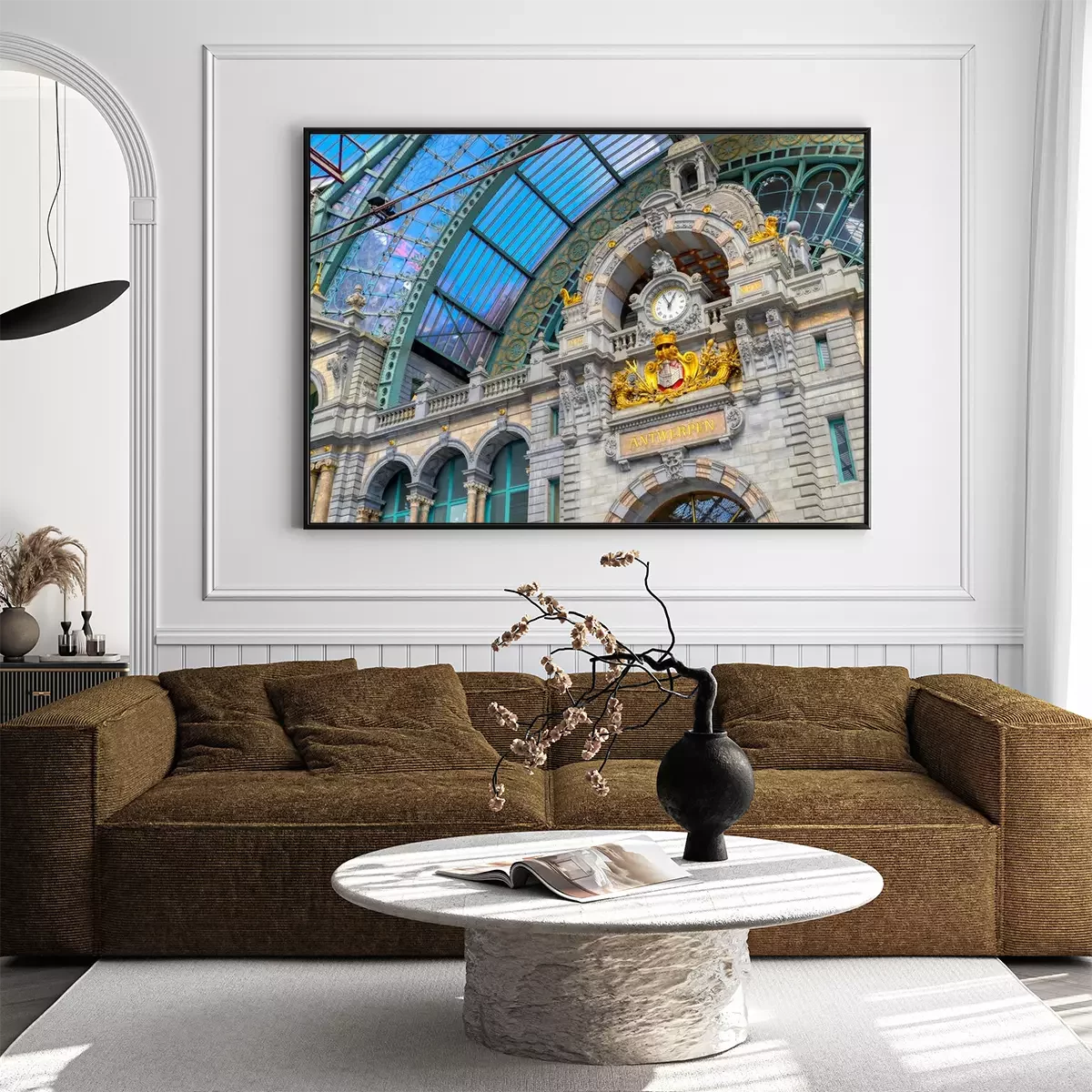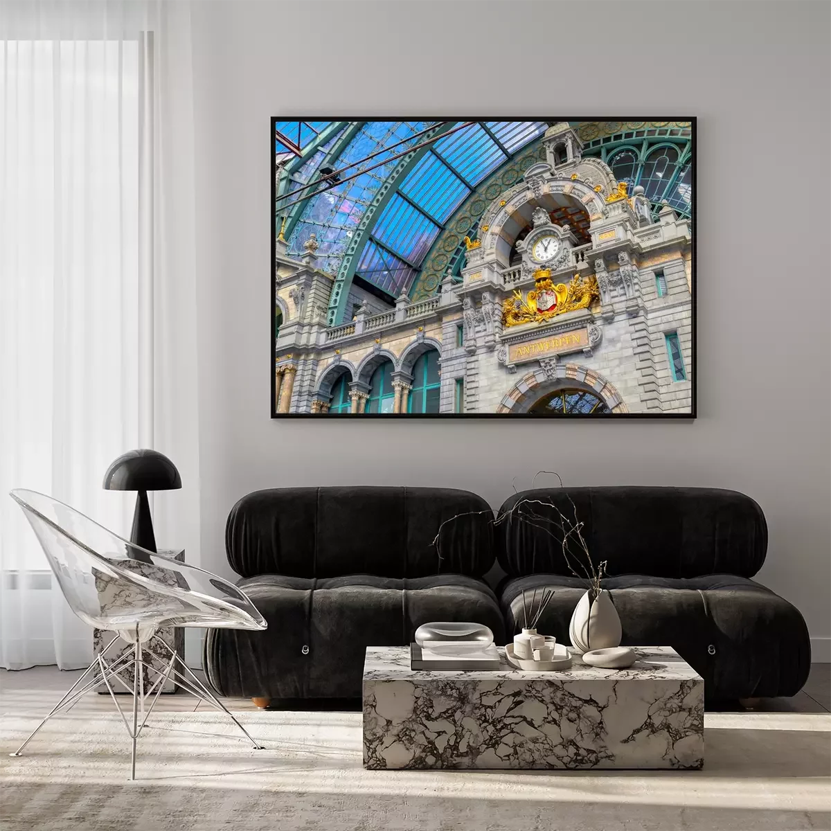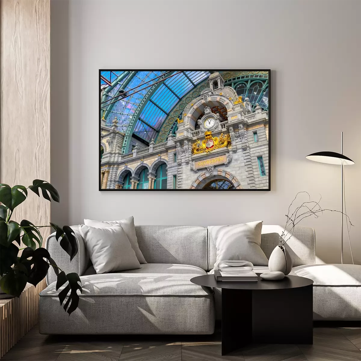 Poster: The interior of the Antwerp (Antwerpen), Belgium railway station.