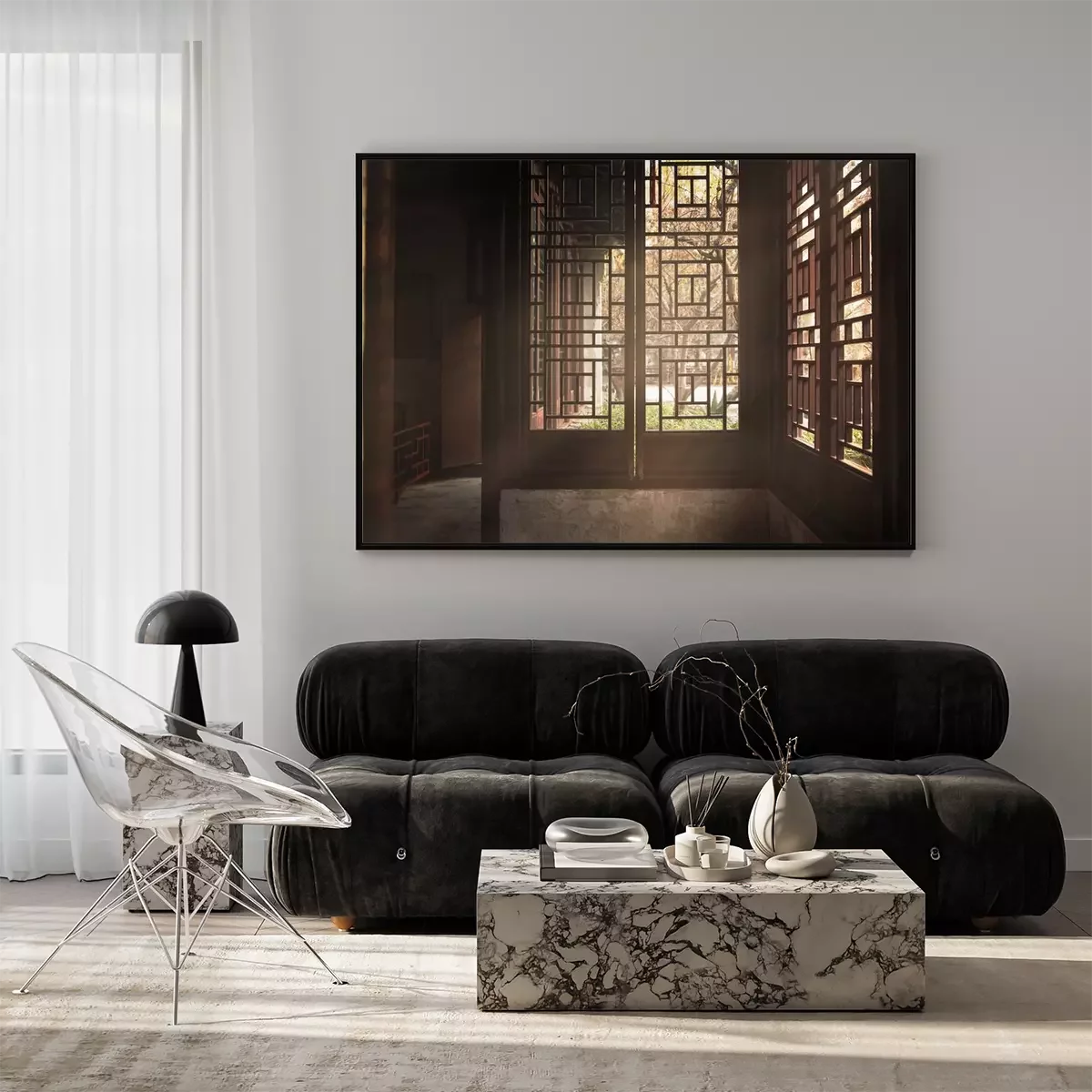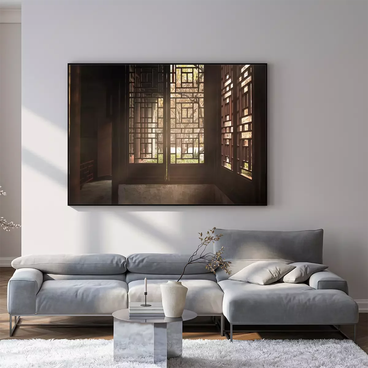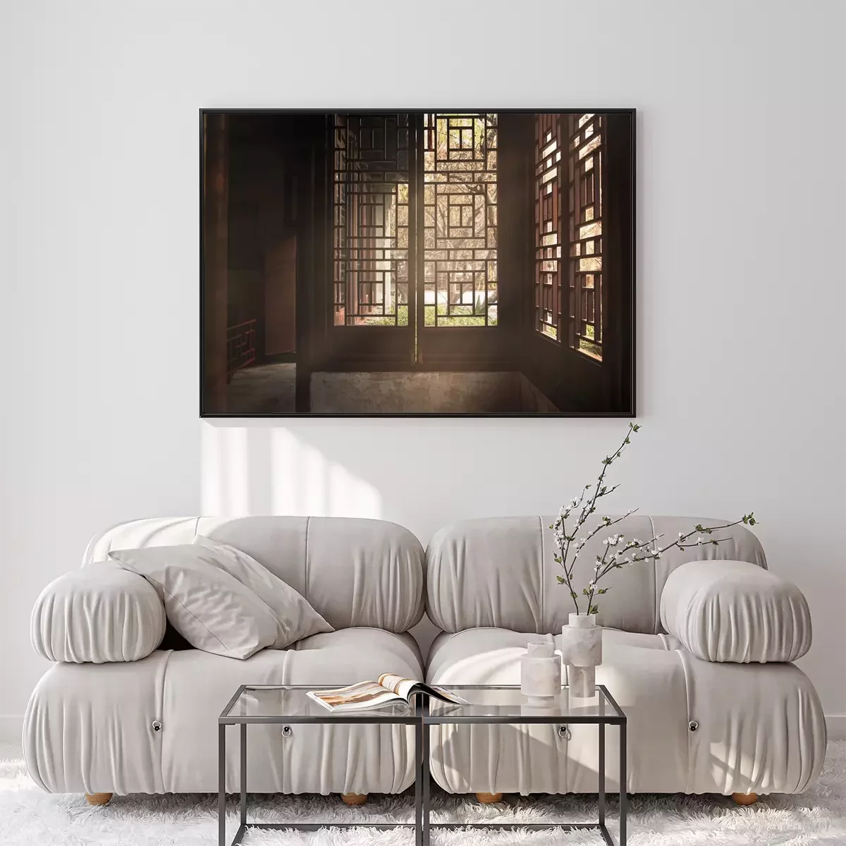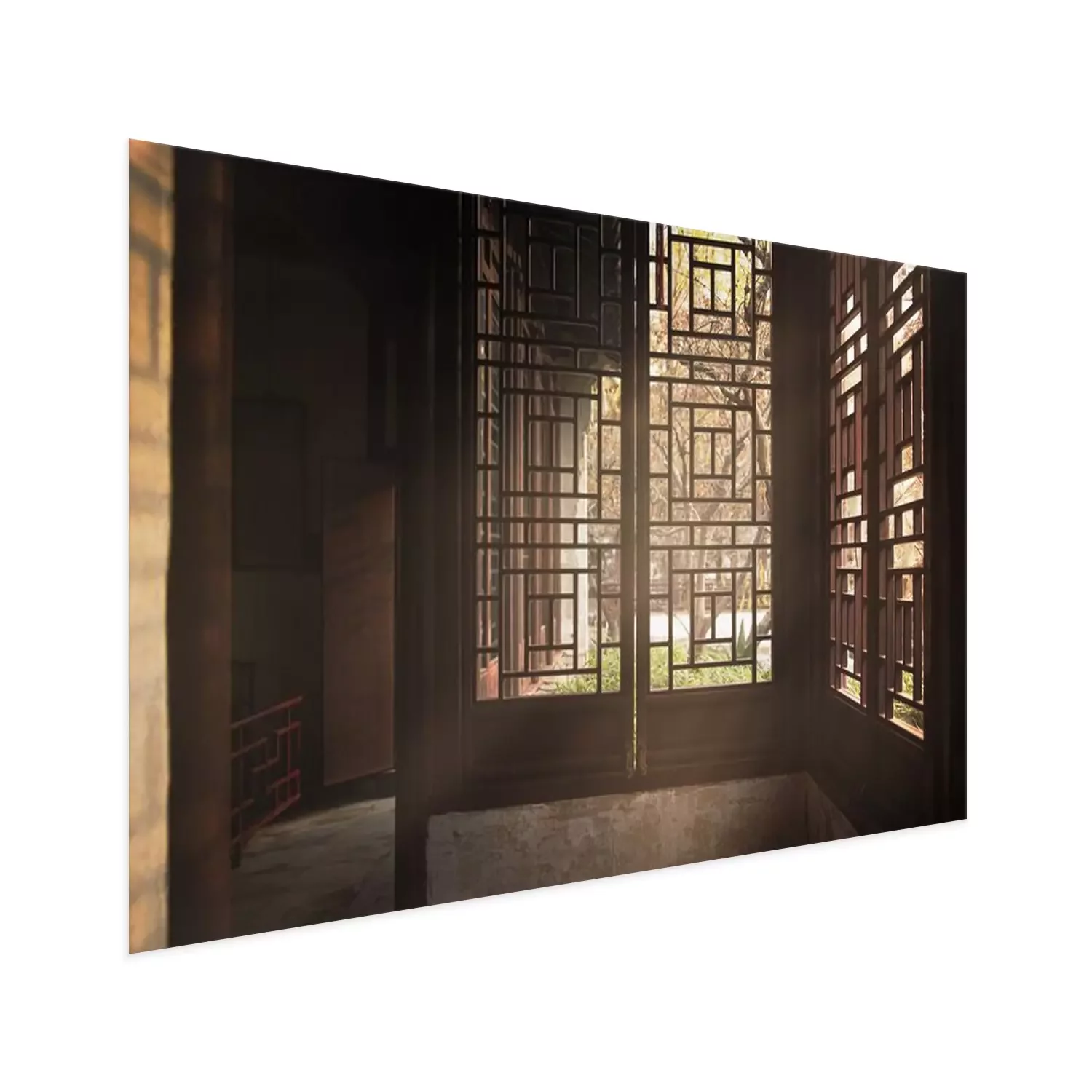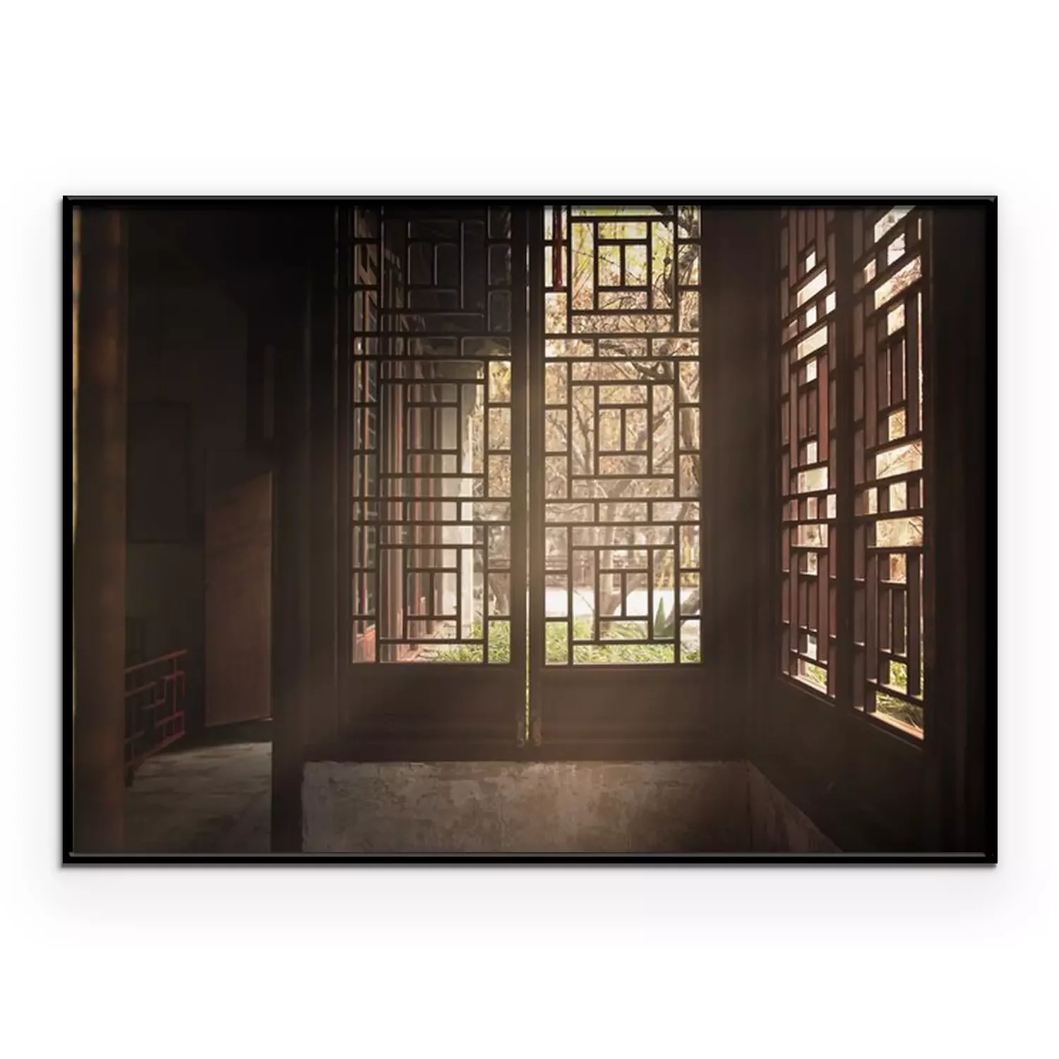 Poster The window view at Garden of Cultivation(Yi Pu) is a classical garden in Suzhou,Jiangsu,China.Bulit on 1541,registered in the World Heritage List with classical gardens.