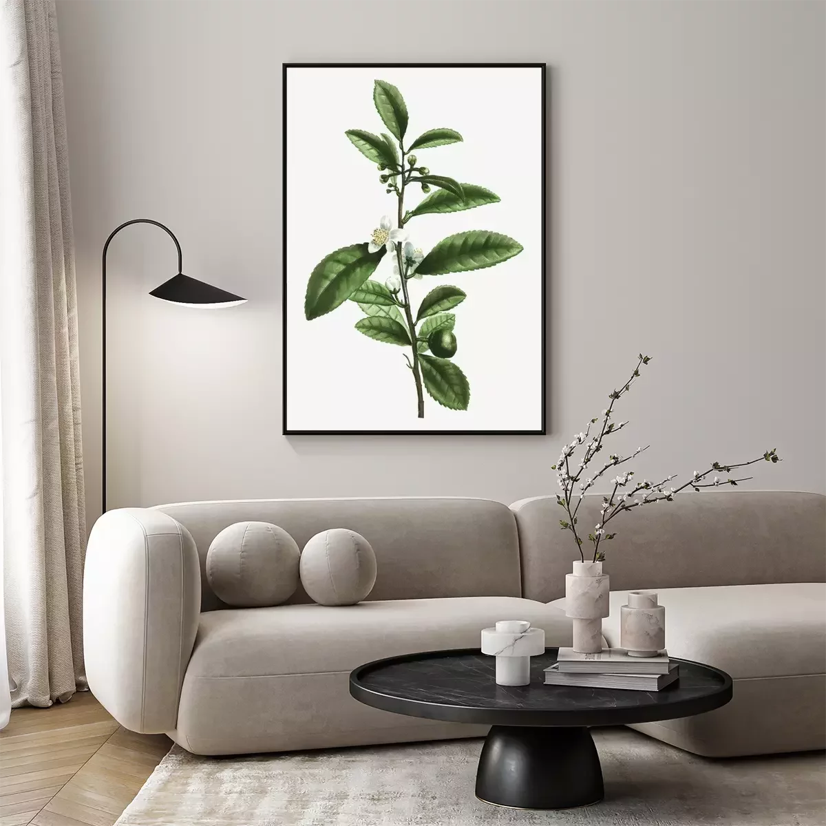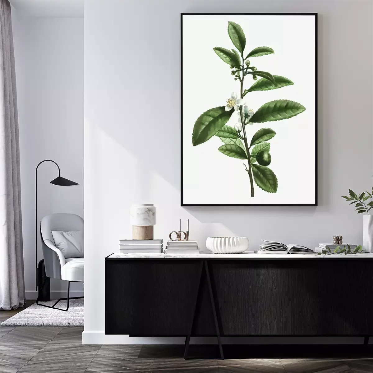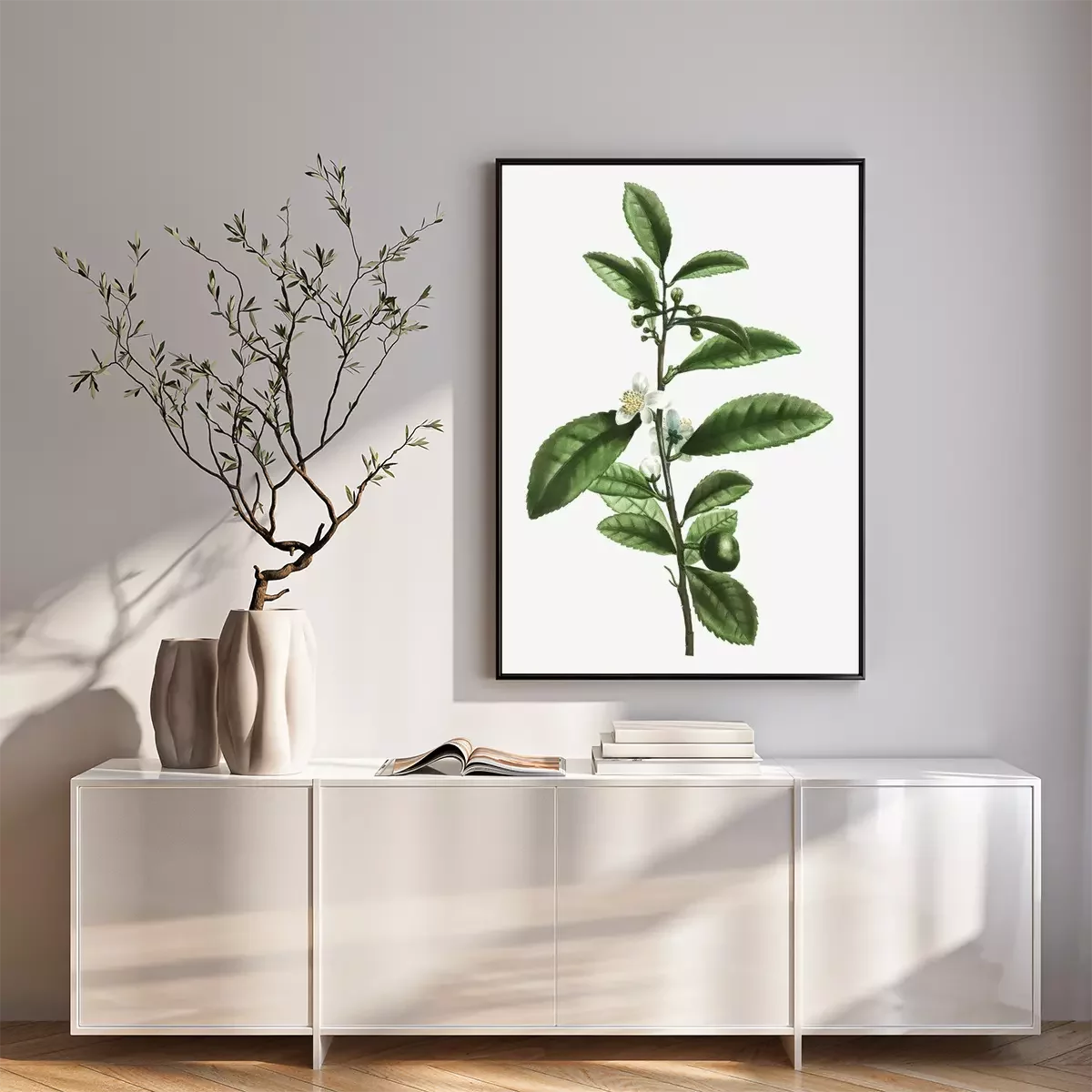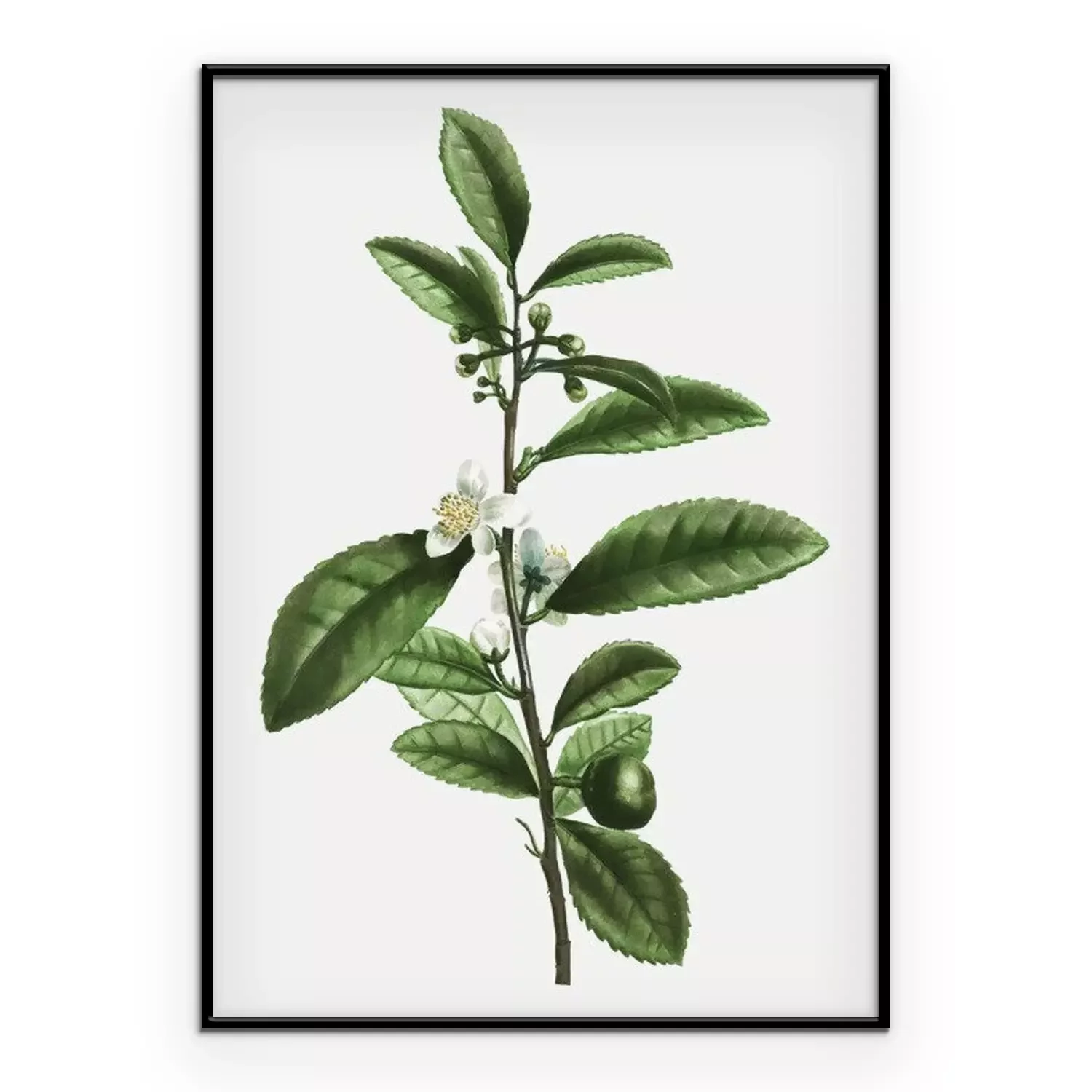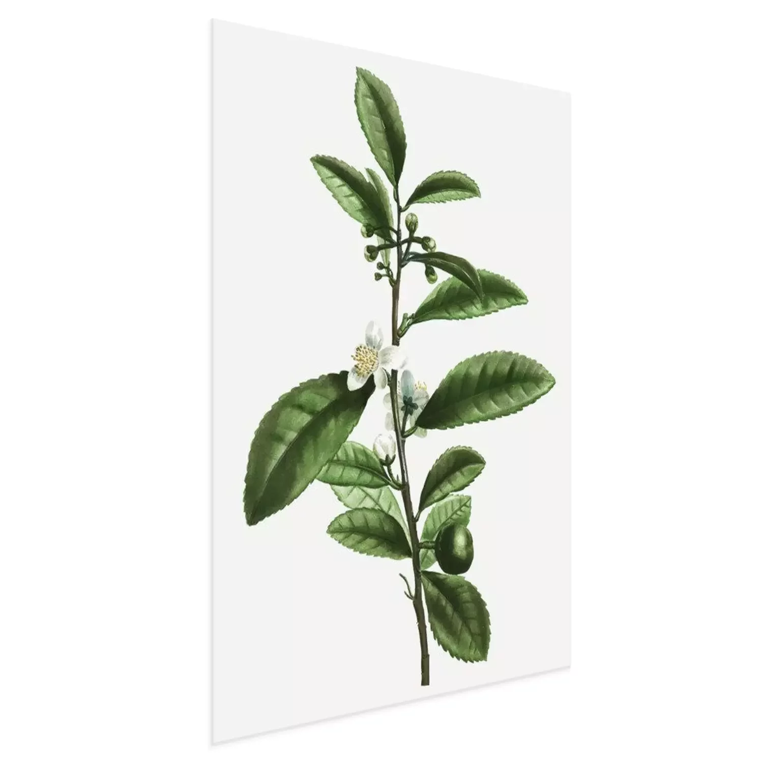 Poster: Theeblaadjes en witte en gele bloem