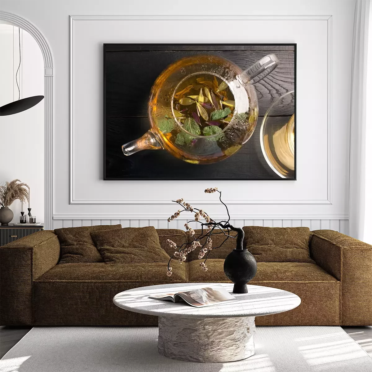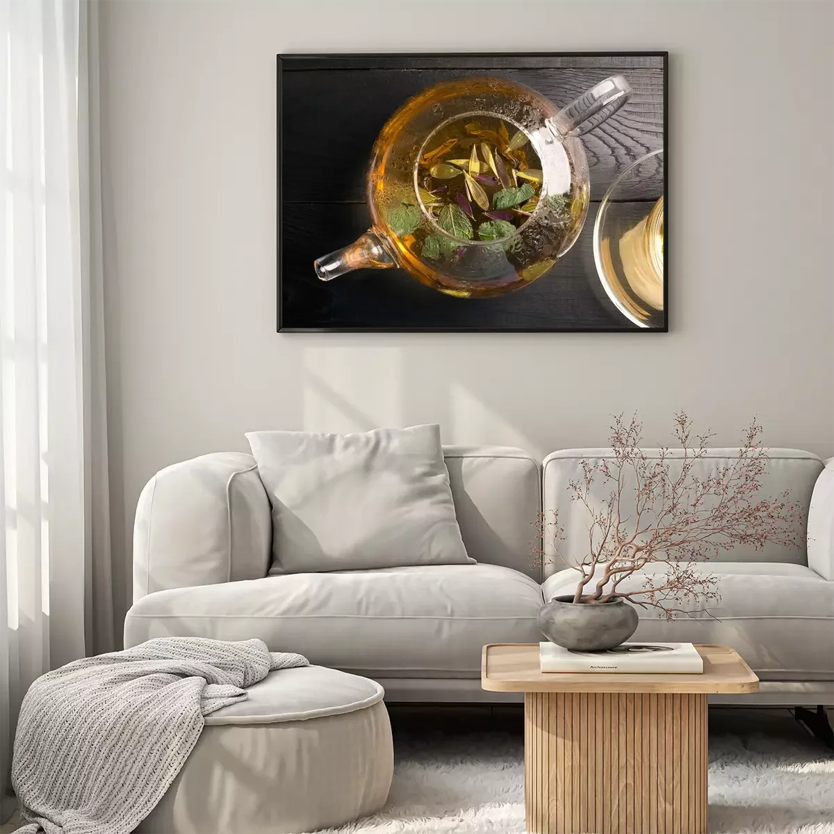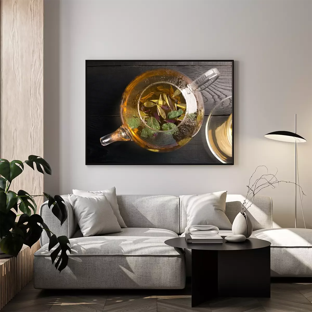 Poster: Theepot en kop thee met bloem