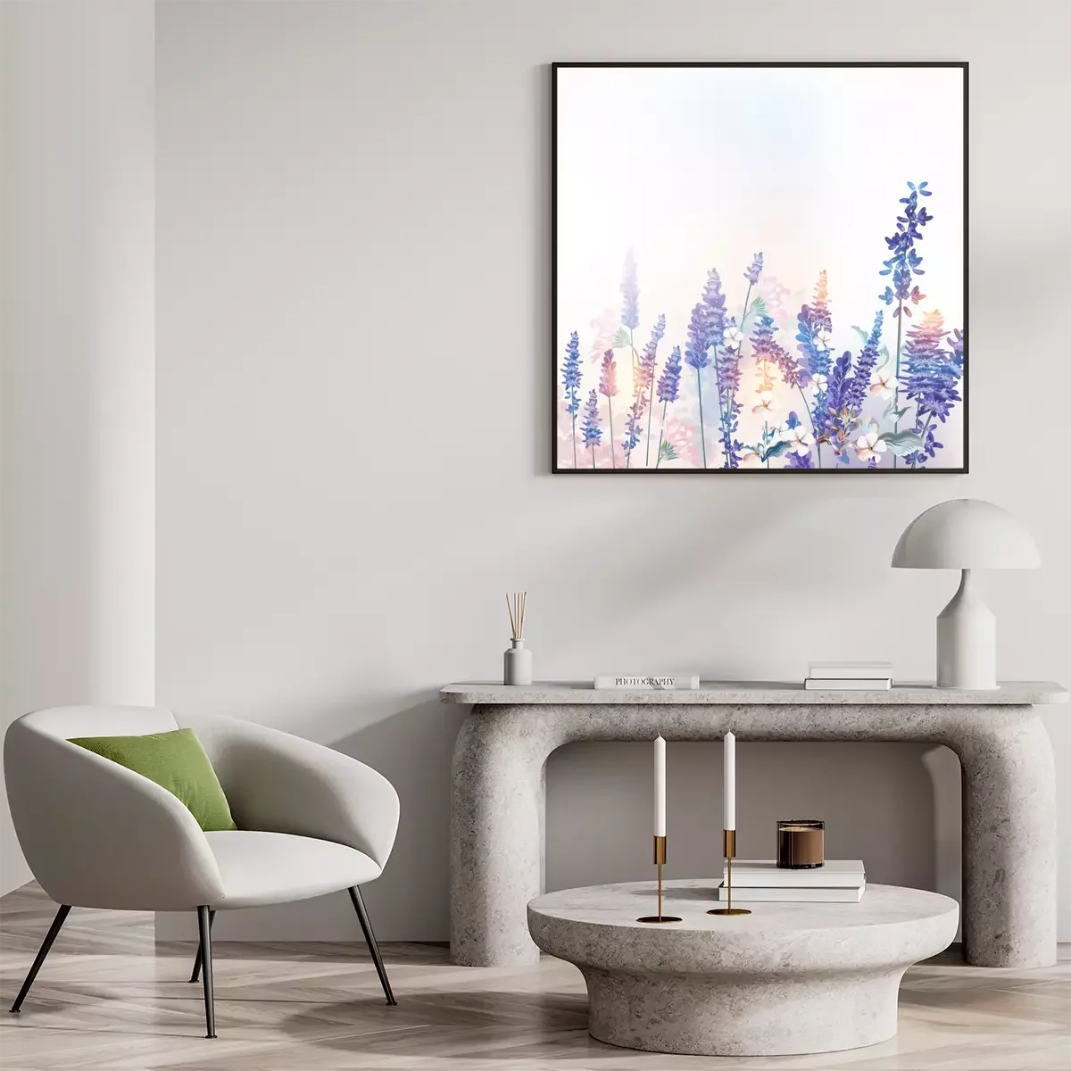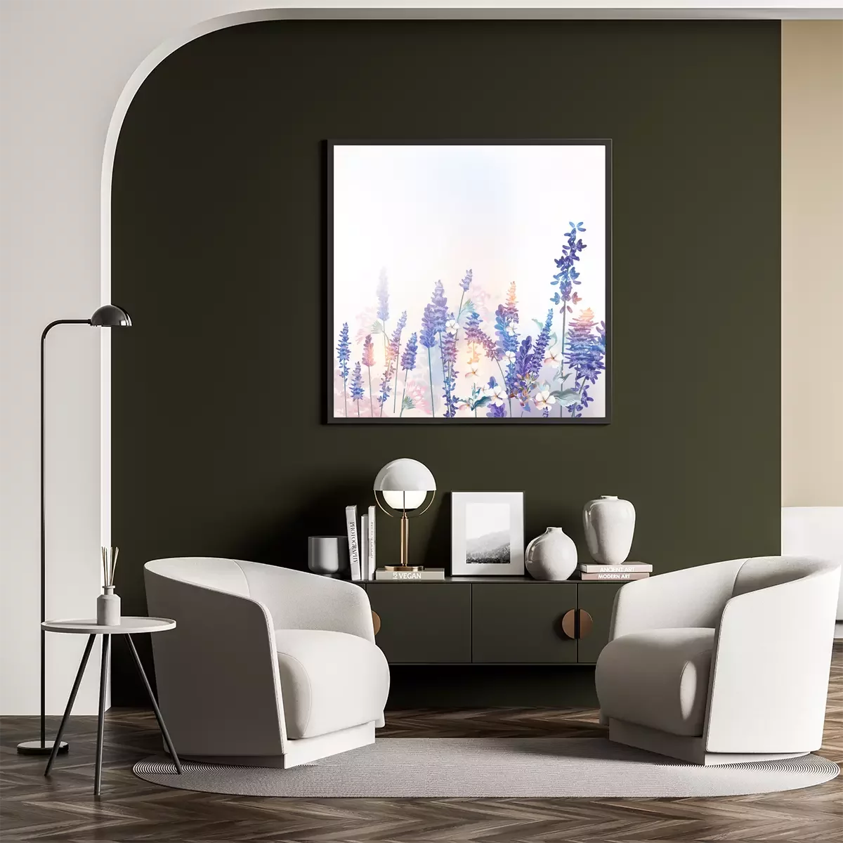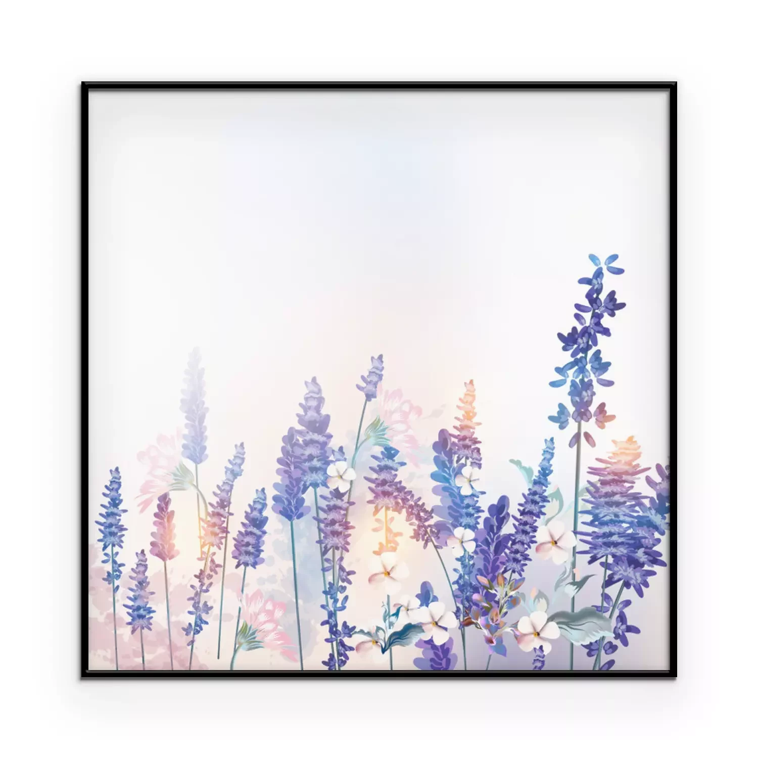 Poster: Thema van lavendel en wilde bloemen in de ochtend