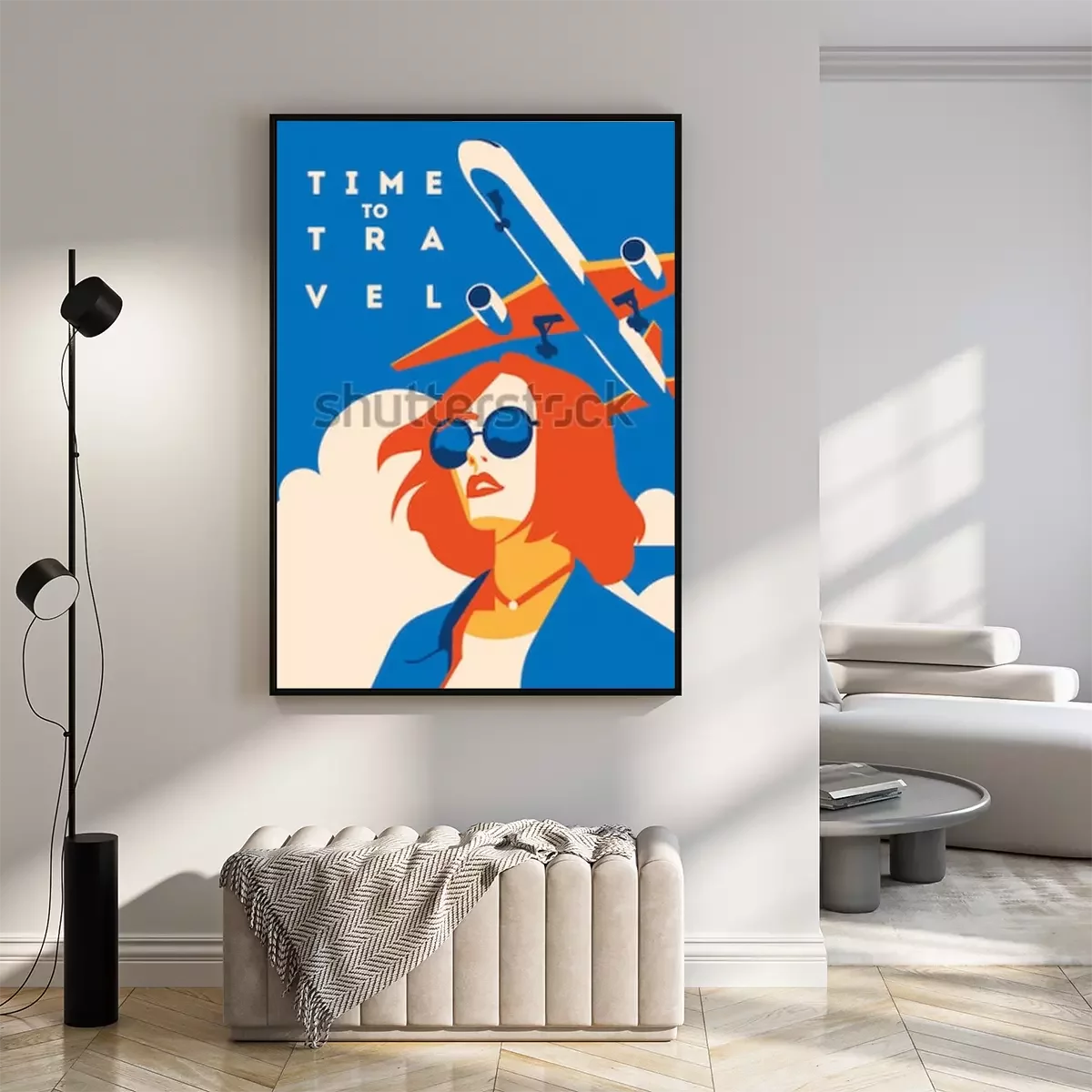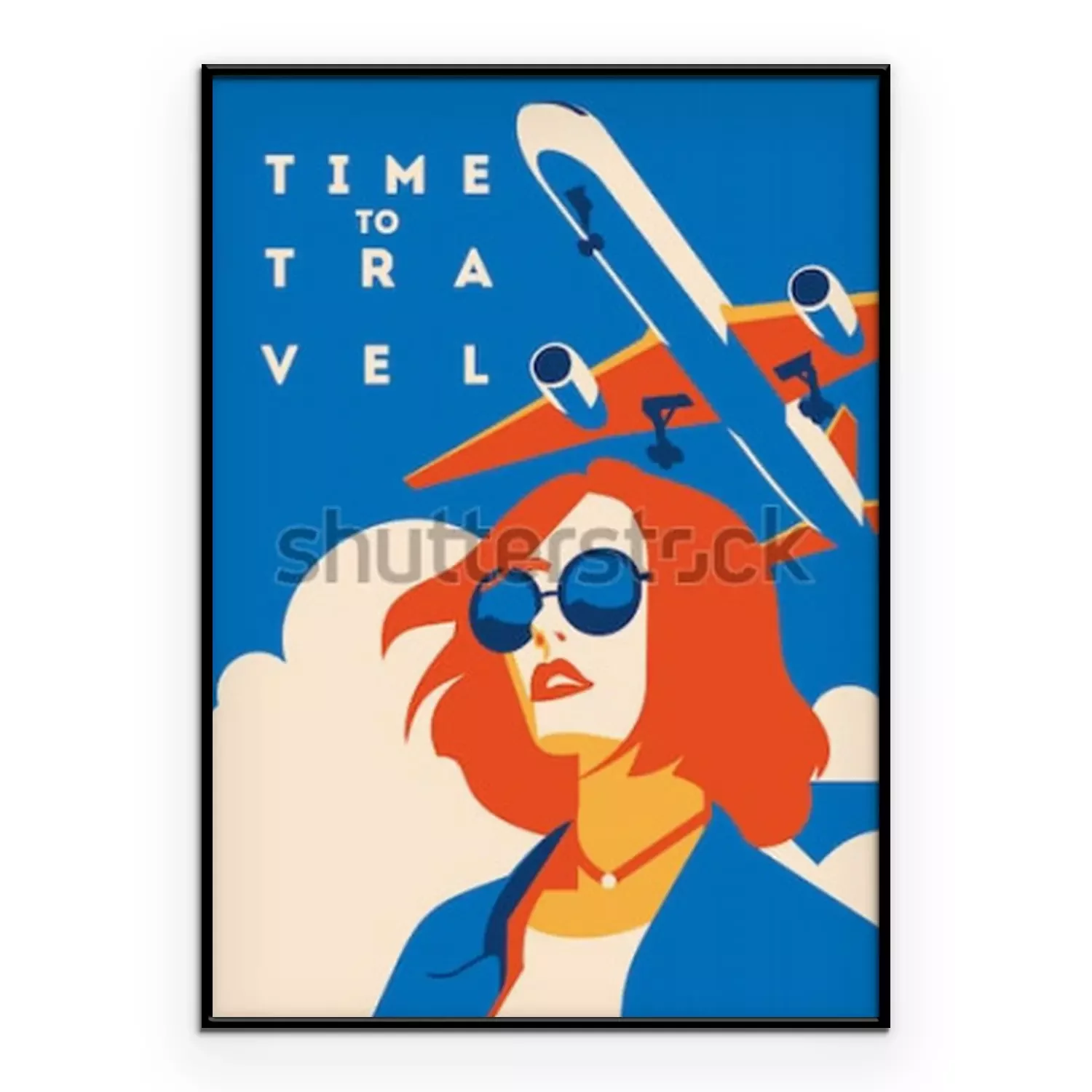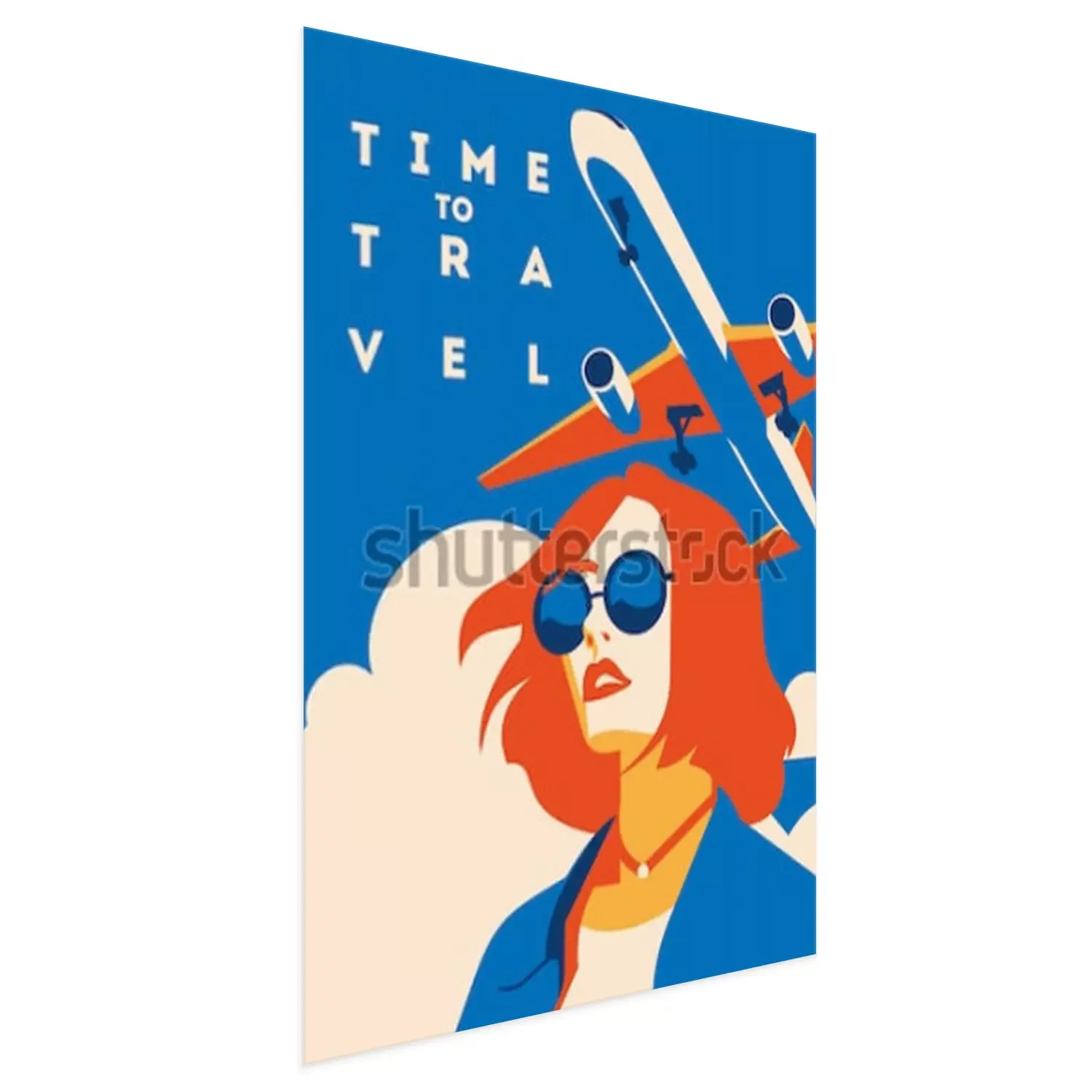 Poster: Tijd om te reizen en zomervakantie poster. Vliegtuig reizen sjabloon poster, badge, vectorillustratie. Vakantie poster met belettering.