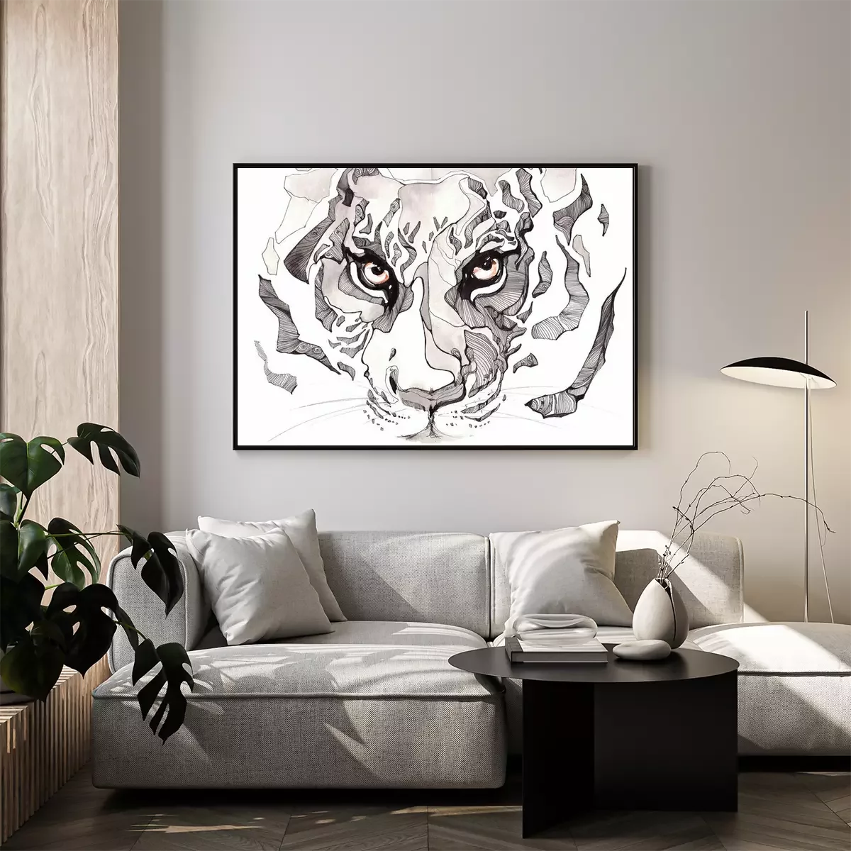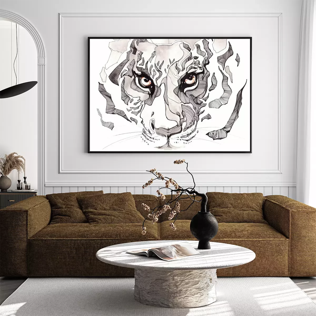 Leeuw geschilderd in aquarelProbleemloze bezorging verzorgd door vertrouwde vervoerders