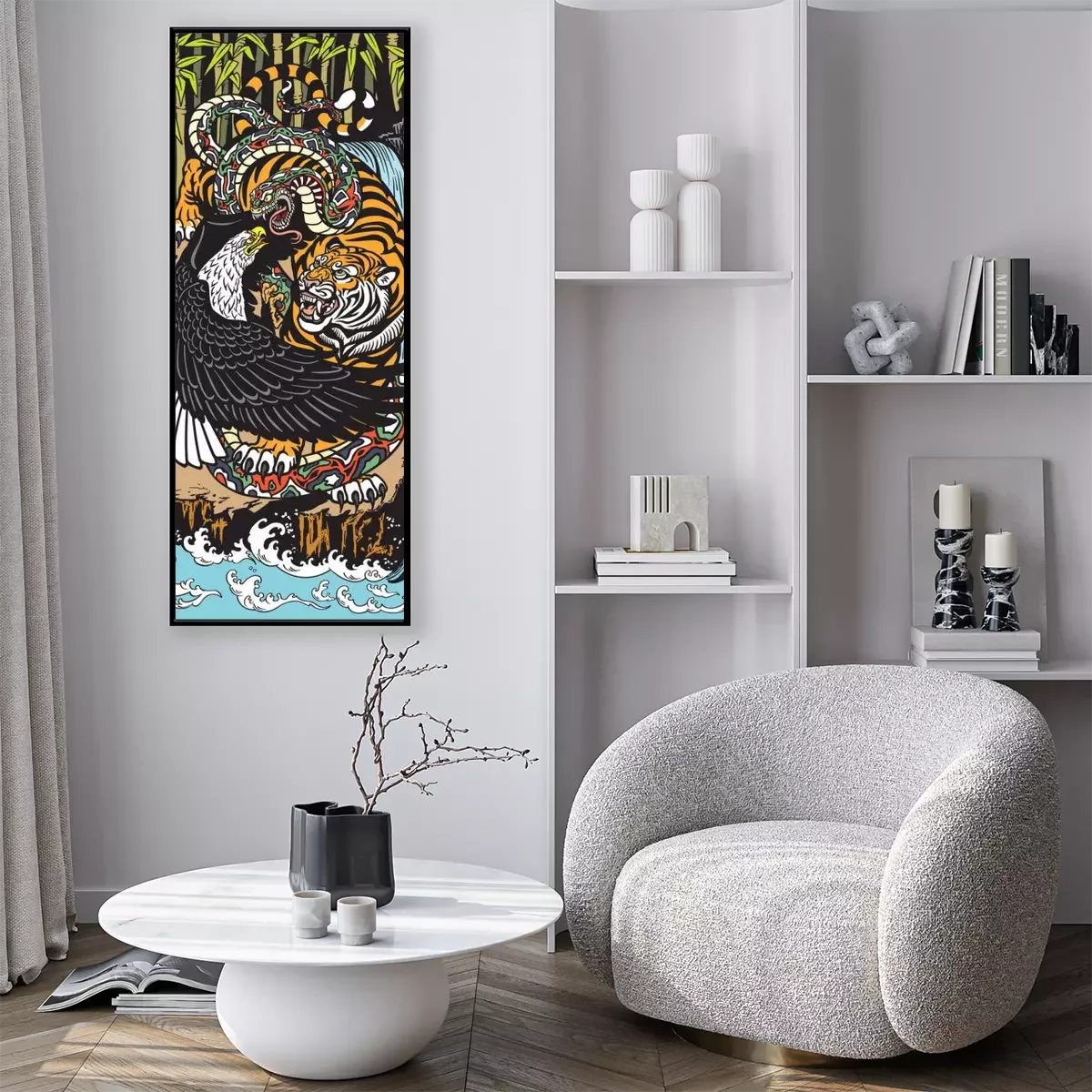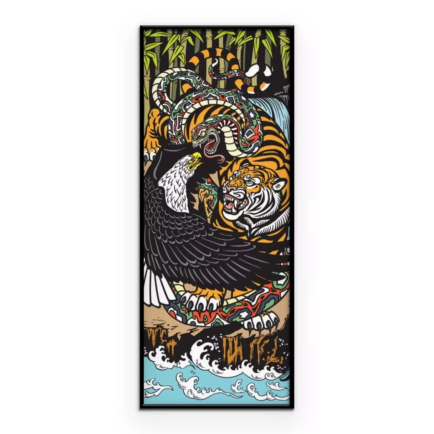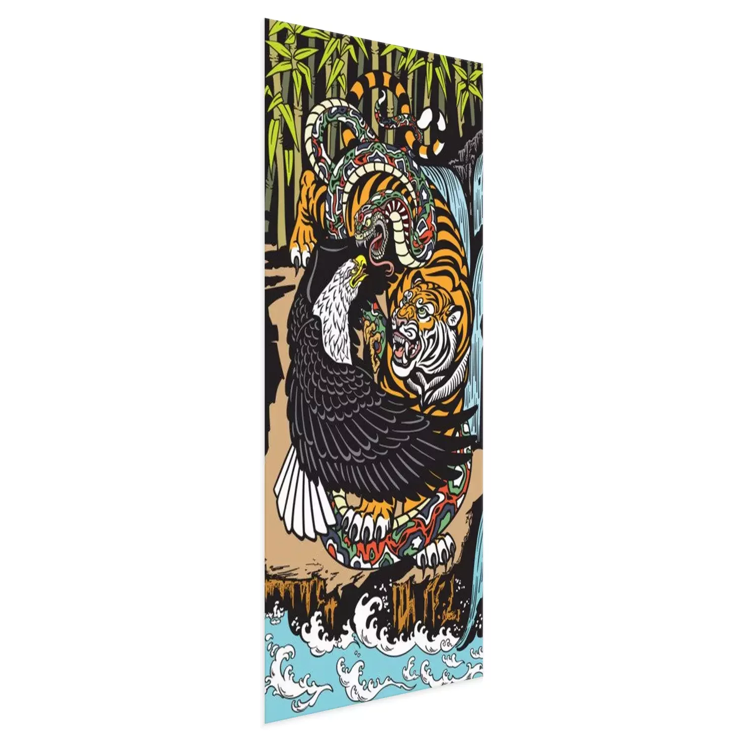 Poster: Tijger, slang en adelaar vechten tegen kleurrijke afbeeldingen