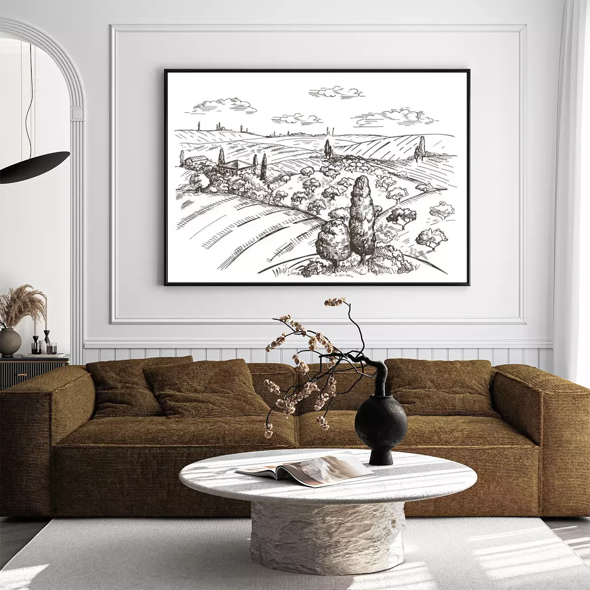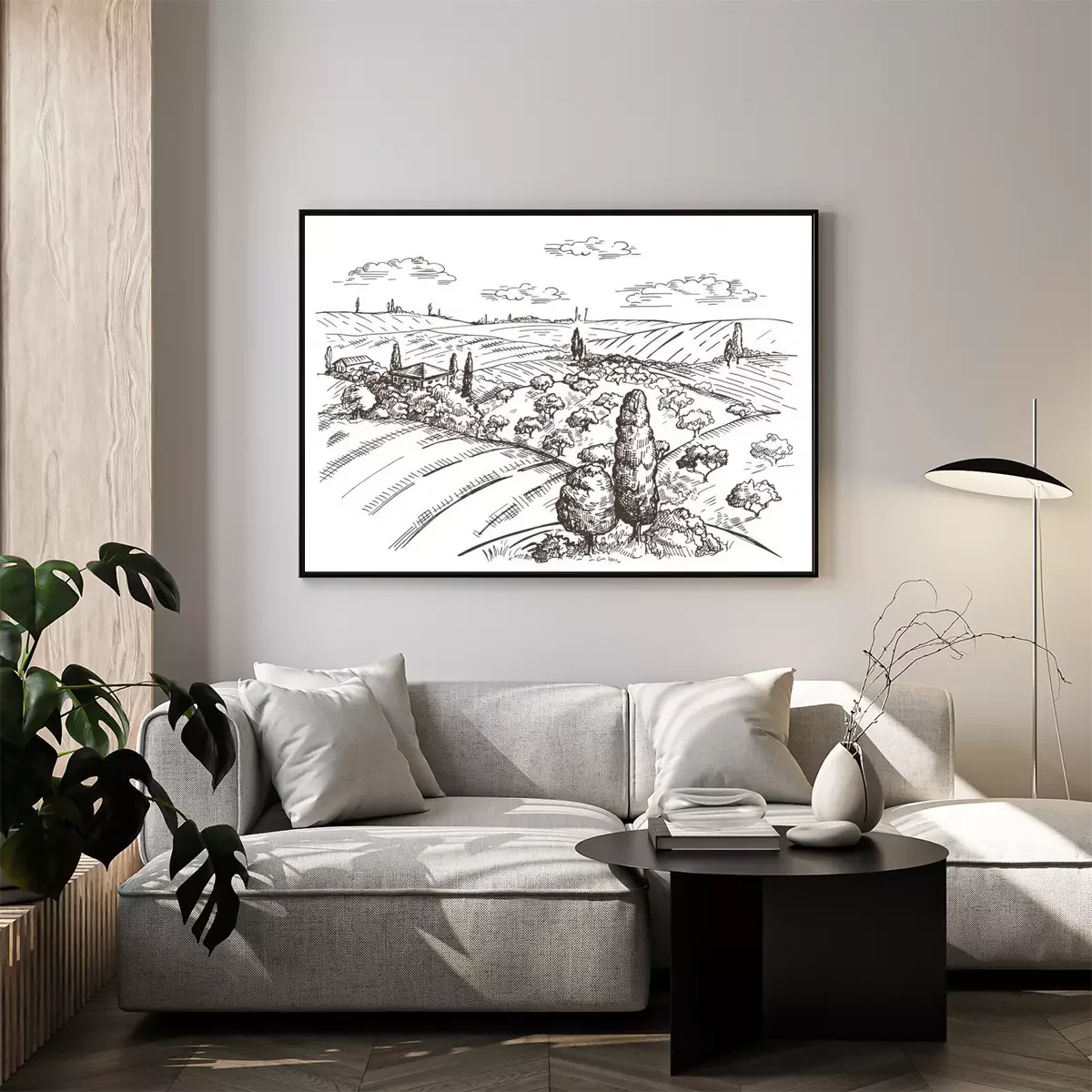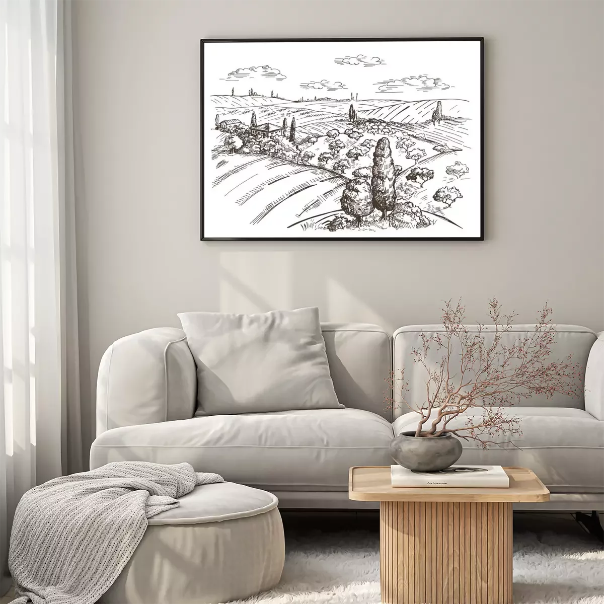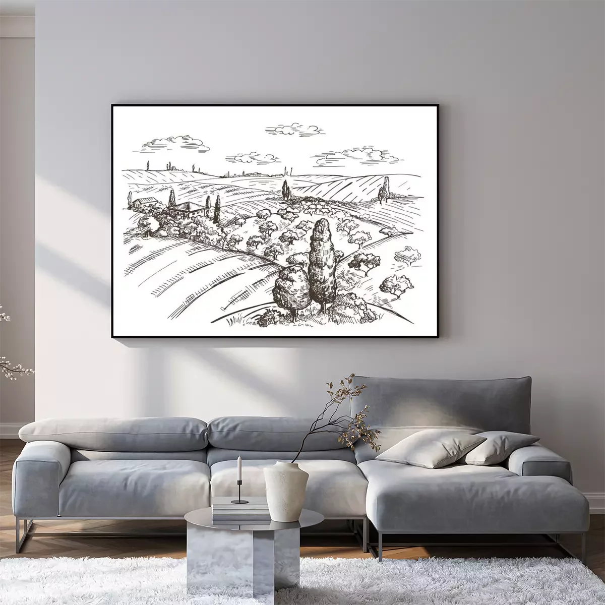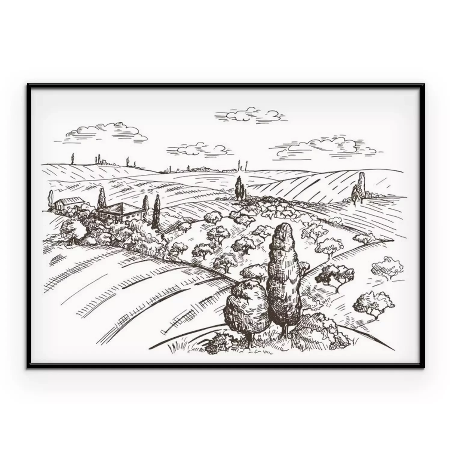 Poster: Toscane landschap getekend in potlood