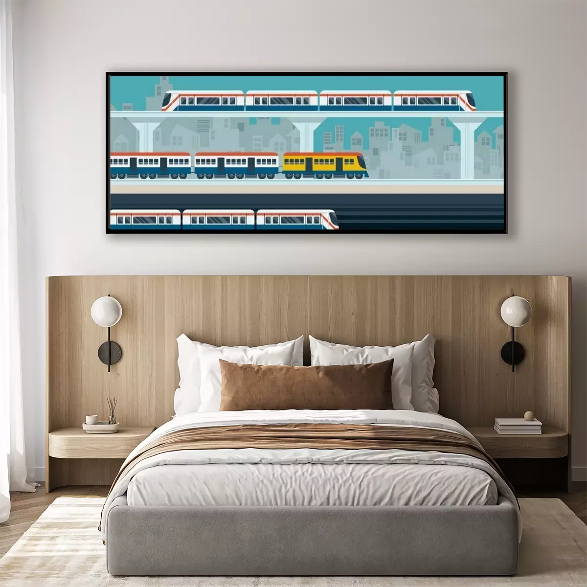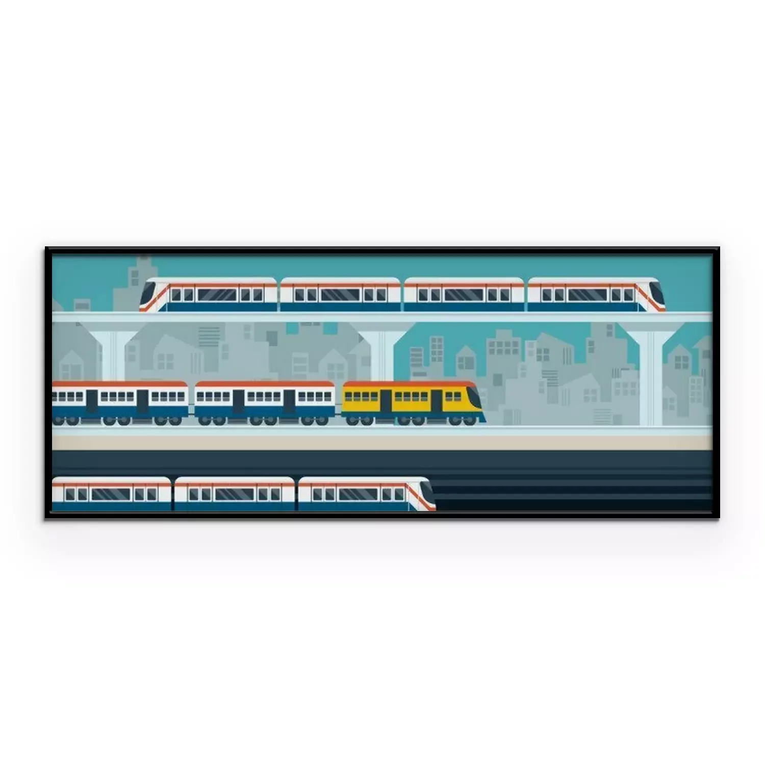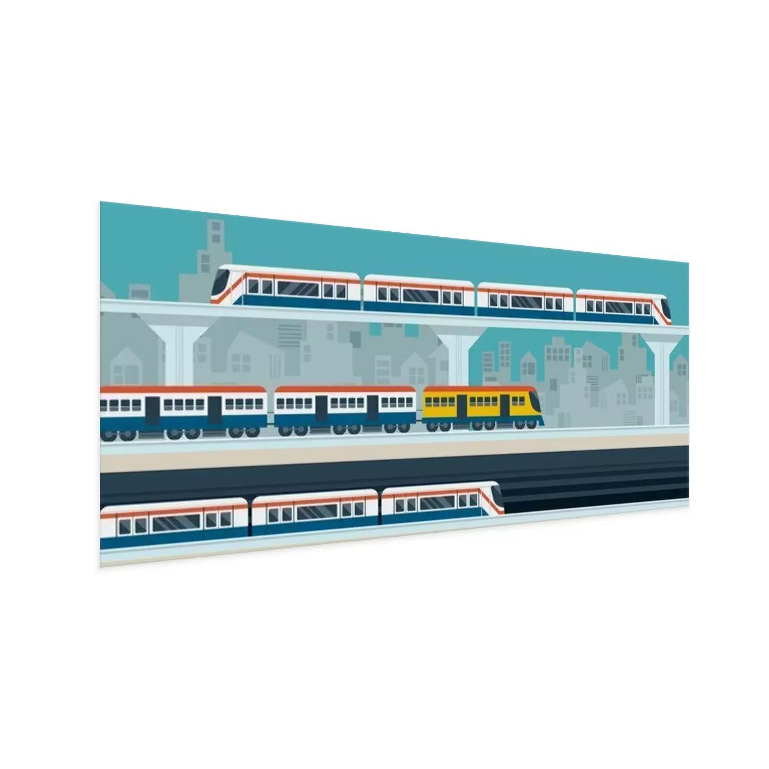 Poster Trein, Sky Train, Subway, Illustratie Pictogrammen Objecten