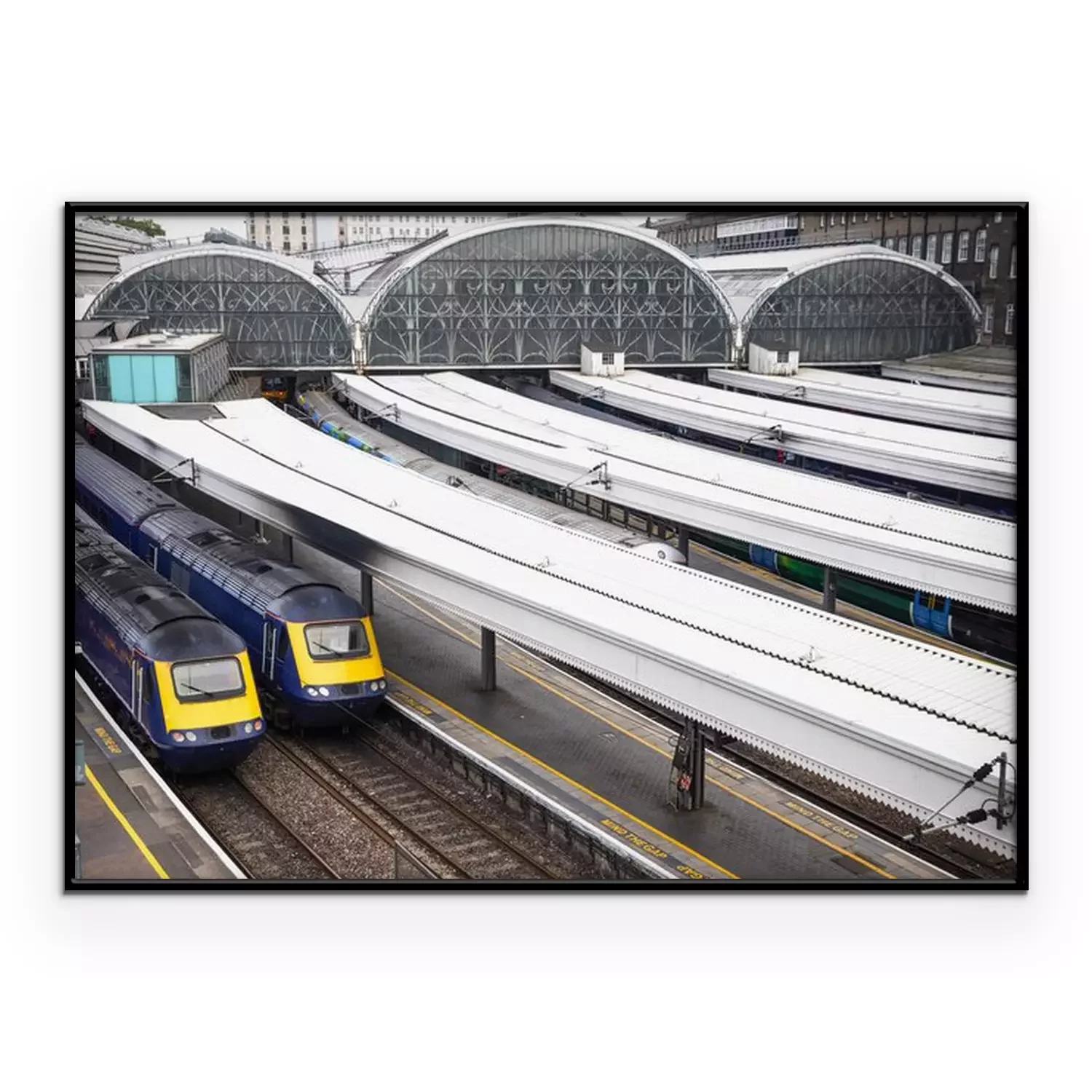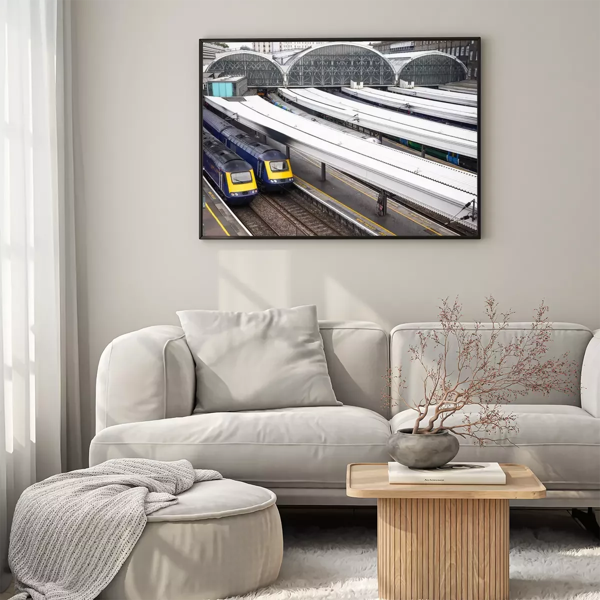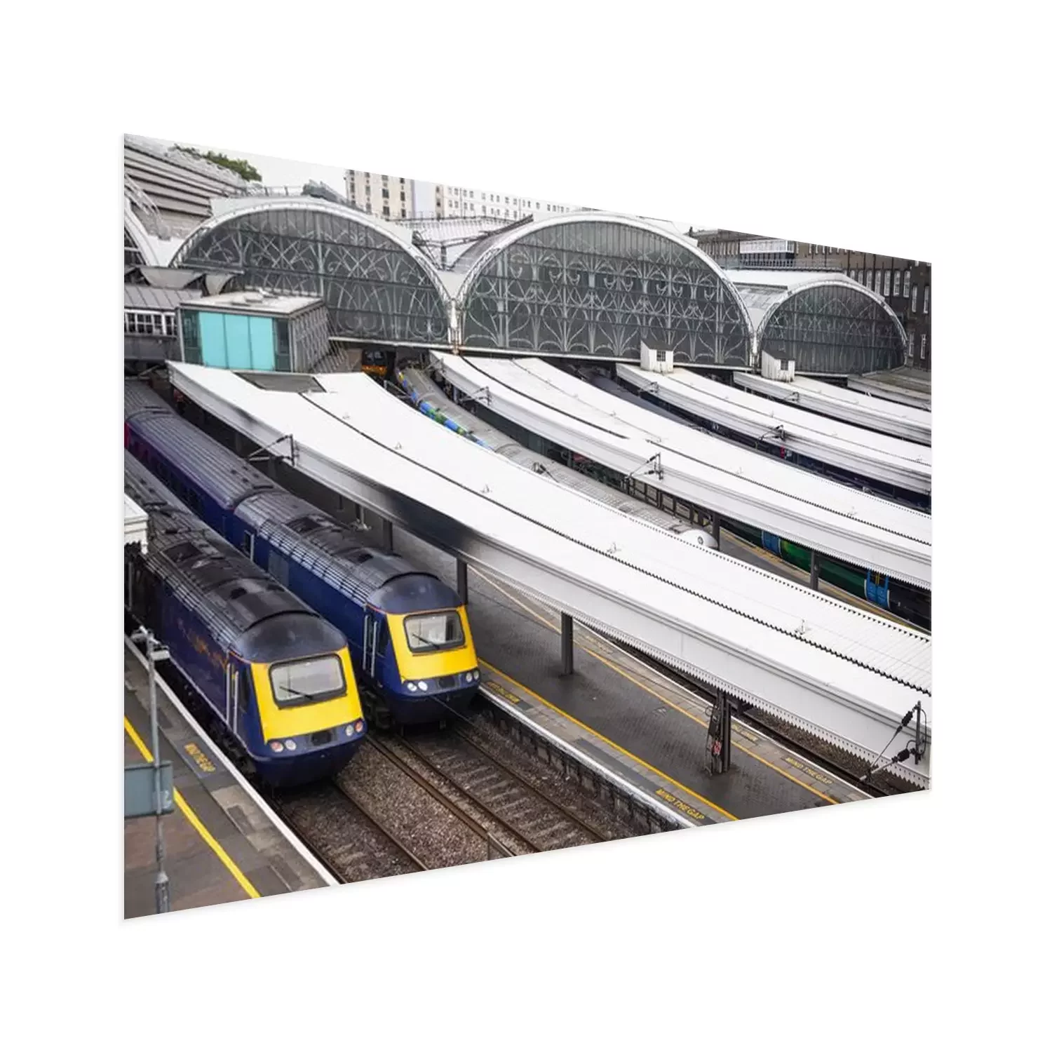 Poster: Treinen die bij Paddington-station in Londen weggaan