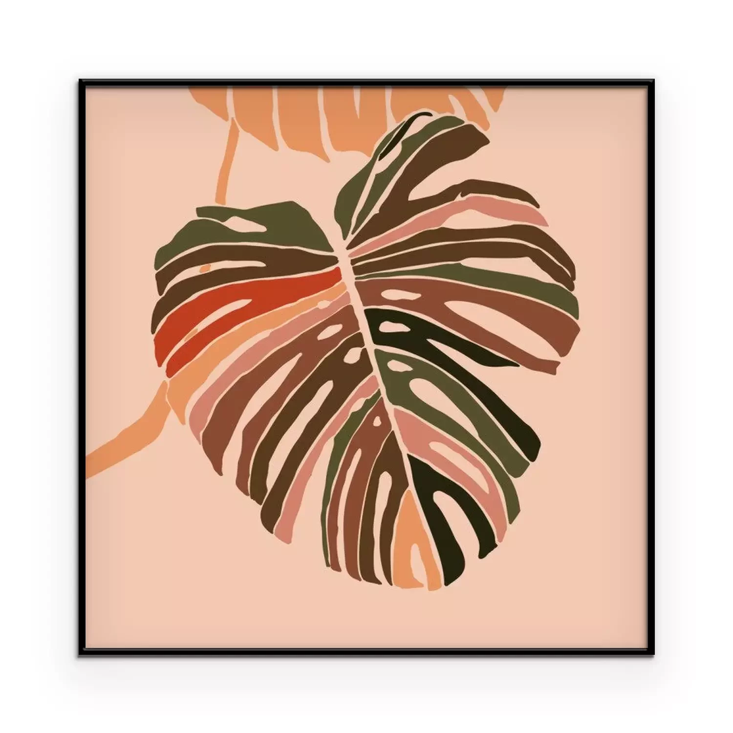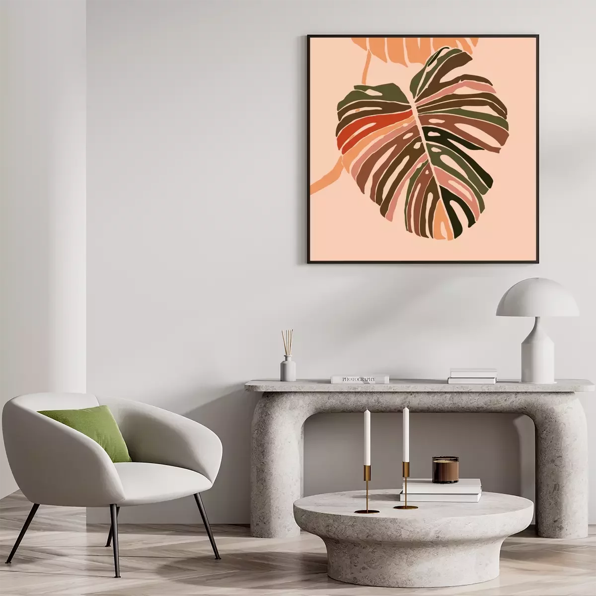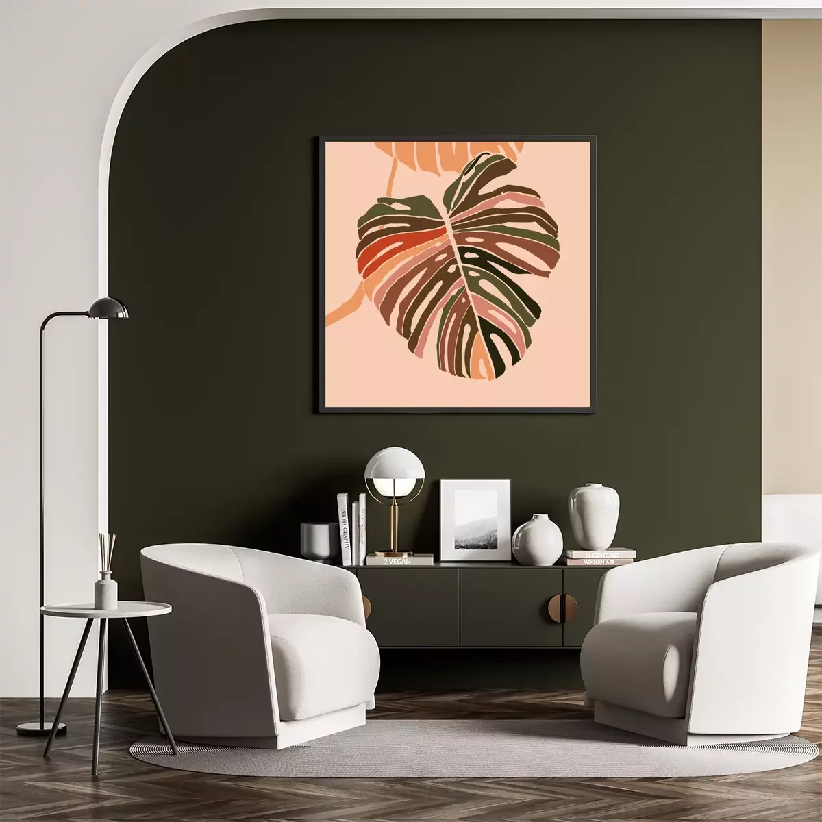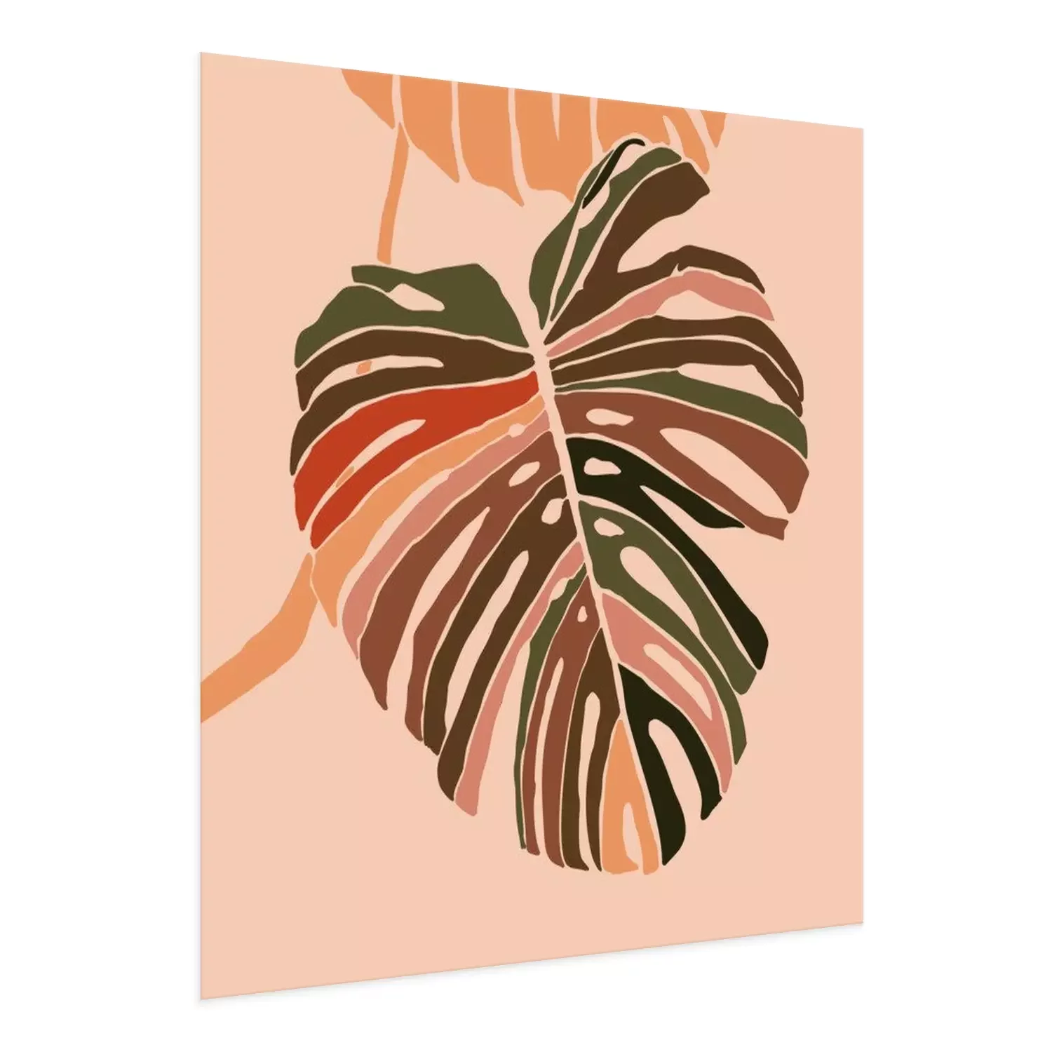 Poster: Tropical monstera leaves in a minimalist trendy style. Silhouette of a plant in a contemporary simple abstract style. Vector illustration collage. For t-Shirt Print, card, poster, social media post