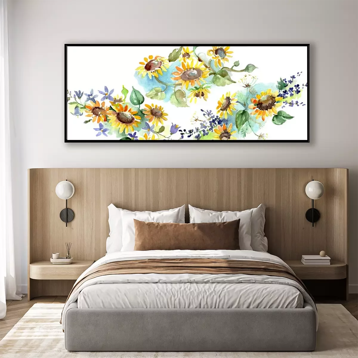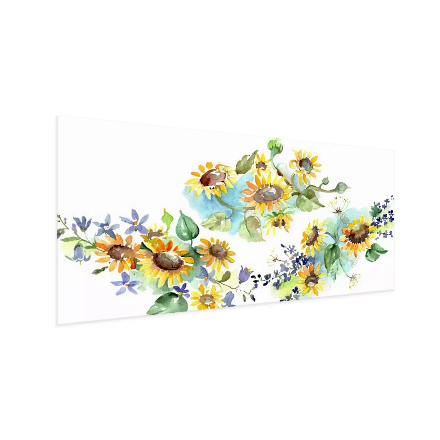 Aquarel zonnebloemen op blauwe arcering