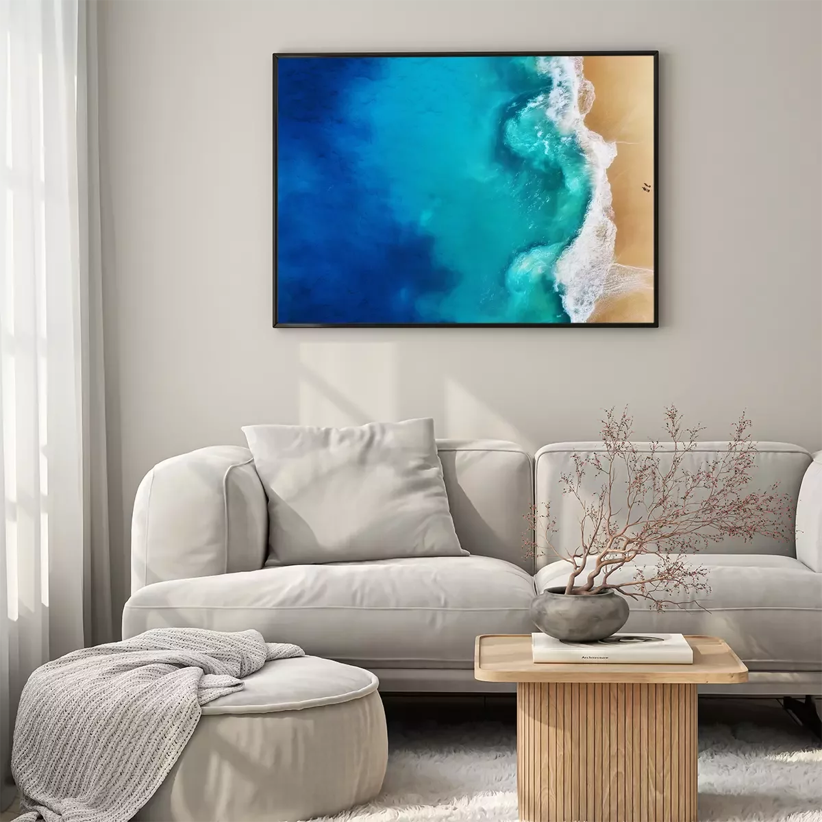 Poster: Turquoise zee van bovenaf gezien