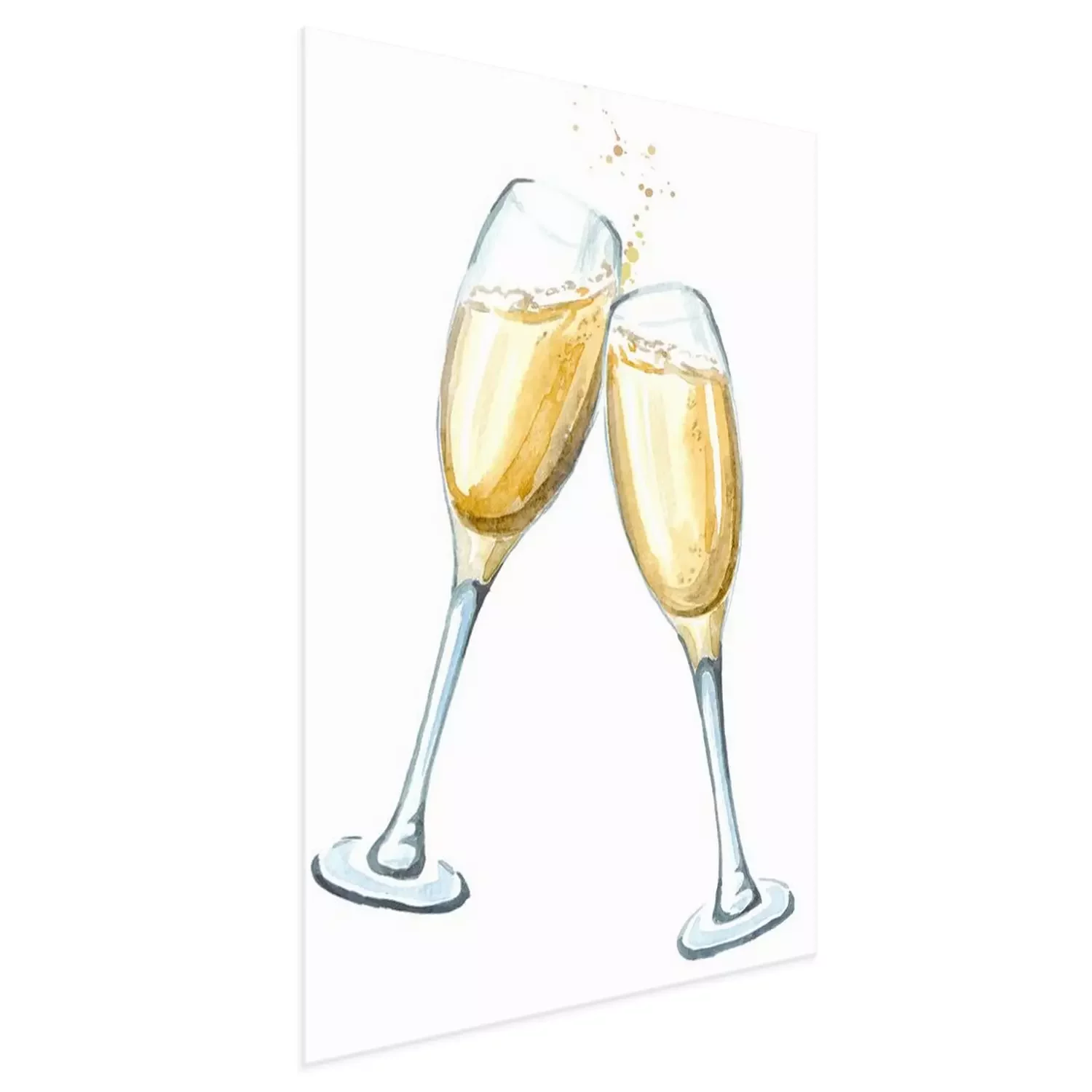Poster Twee glazen champagne bij het roosteren. Waterverfhand getrokken die illustratie op witte achtergrond wordt geïsoleerd