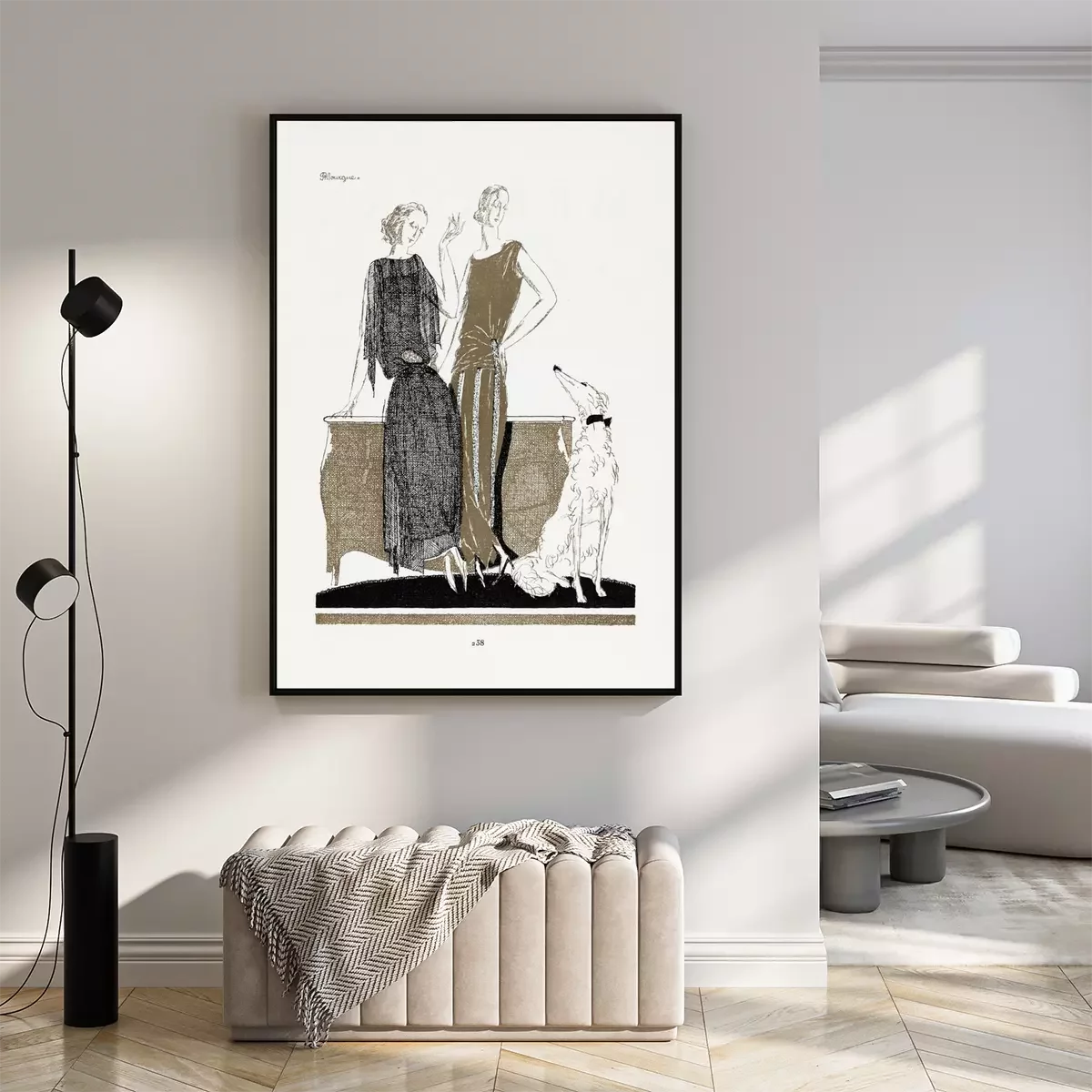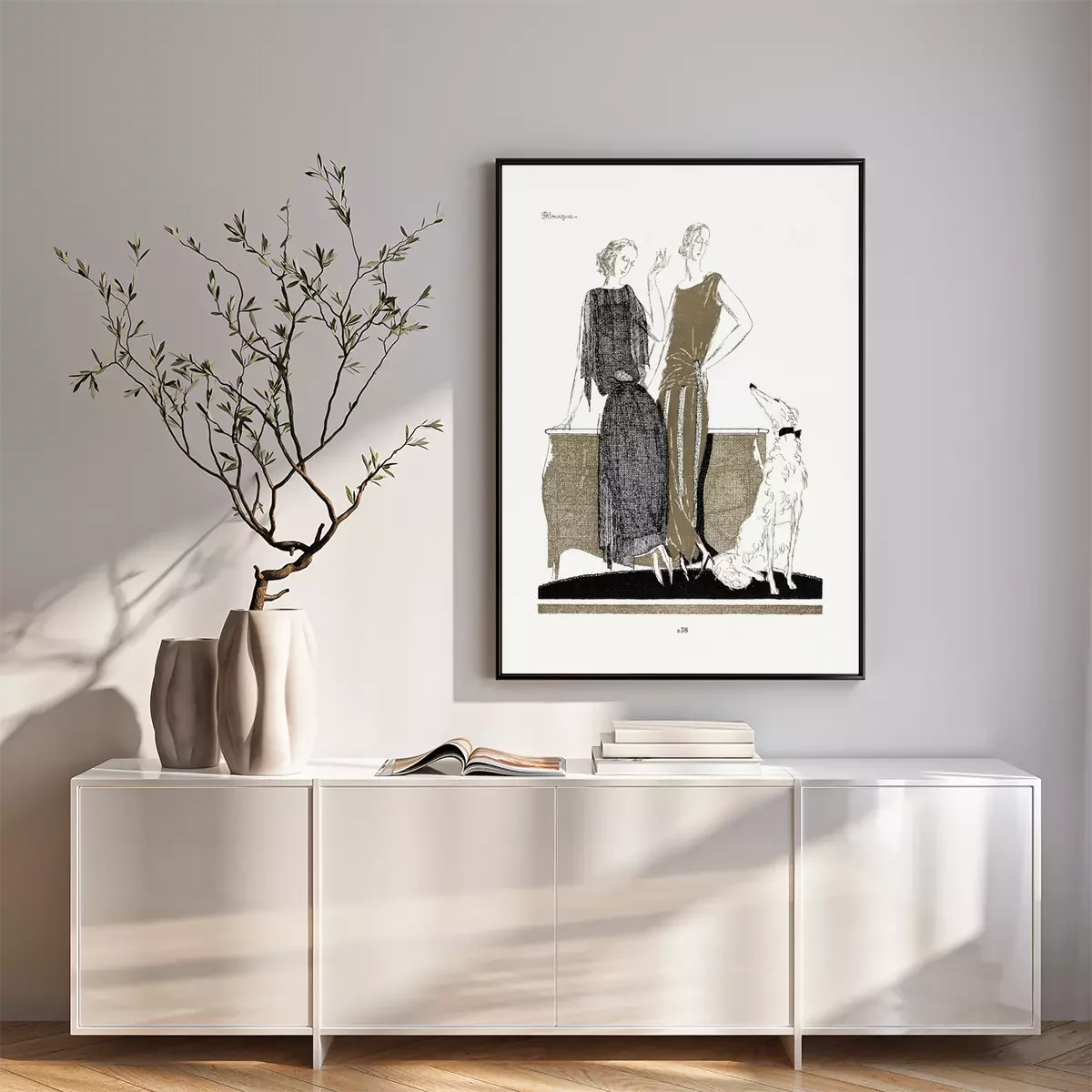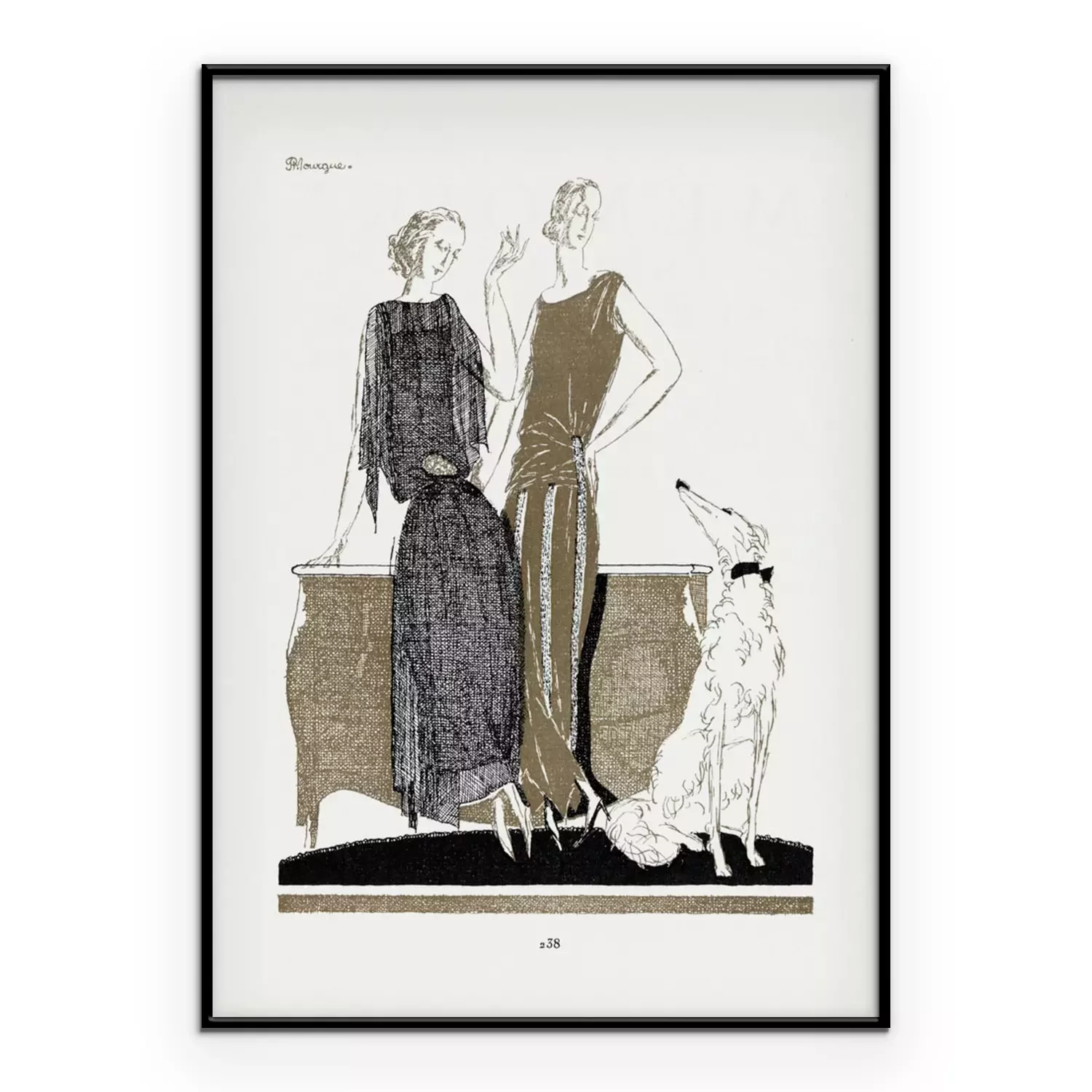 Poster: Twee vrouwen in kostuums in aardkleuren