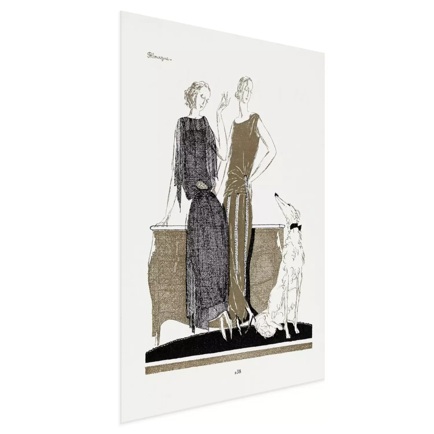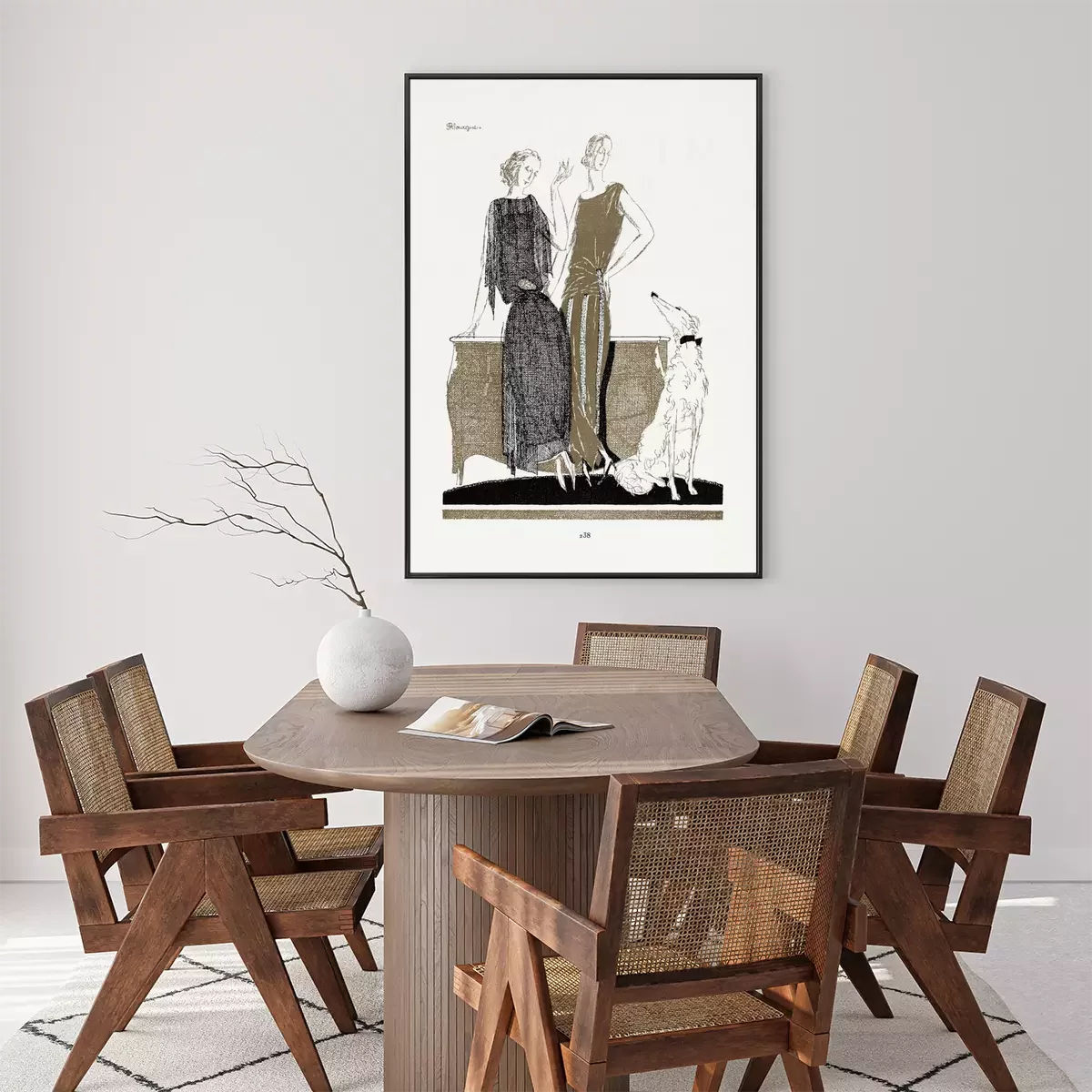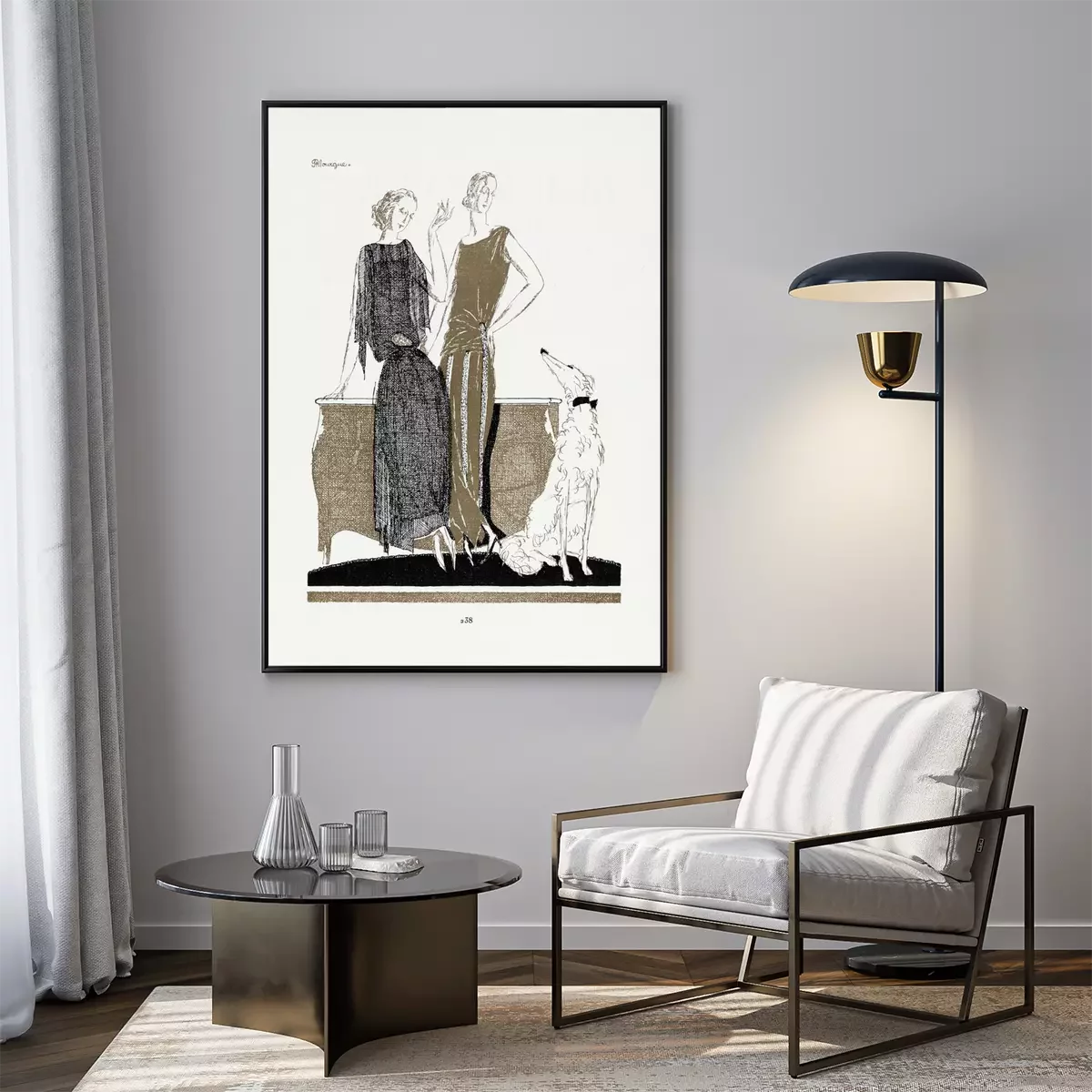 Poster: Twee vrouwen in kostuums in aardkleuren