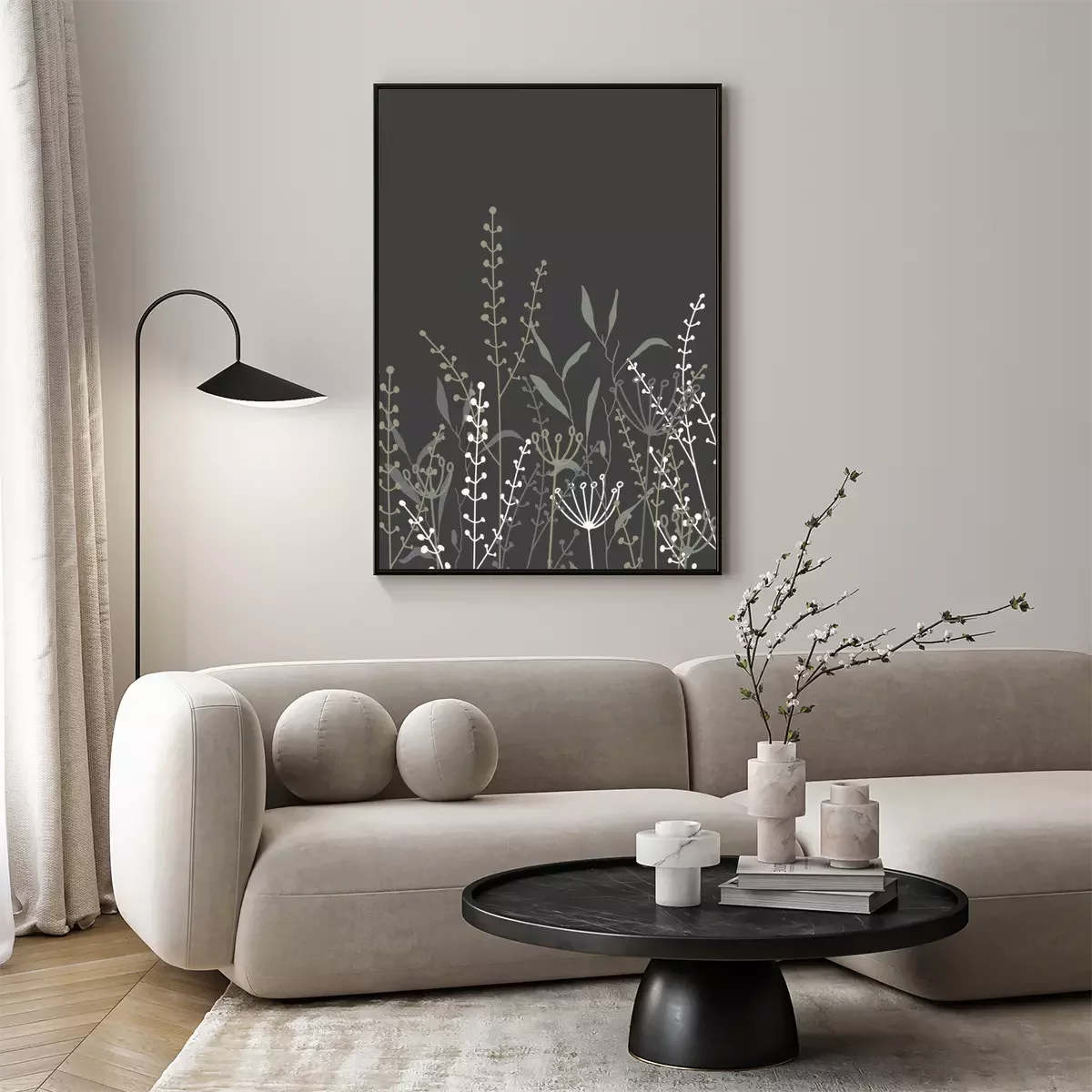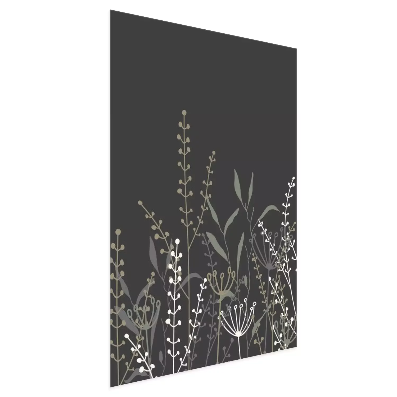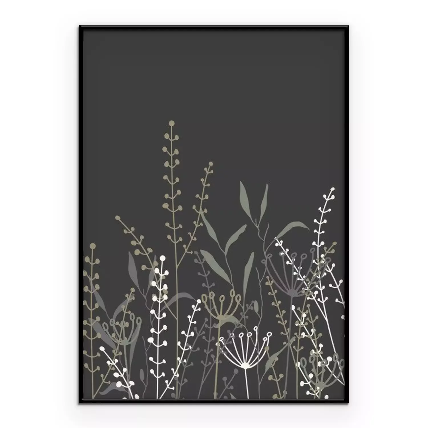 Poster: Twijgen met bladeren in drie kleuren op een zwarte achtergrond