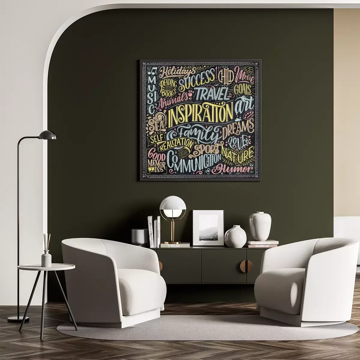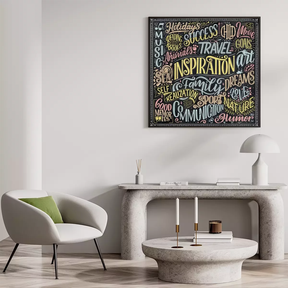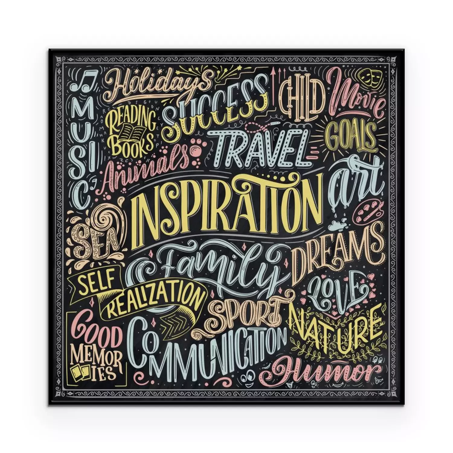 Poster: Typografische illustratie met veelkleurige inscripties