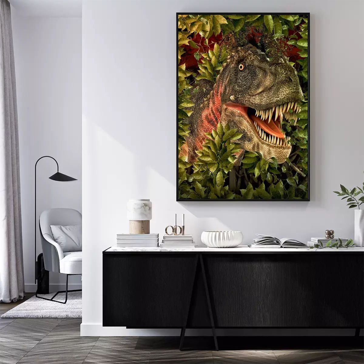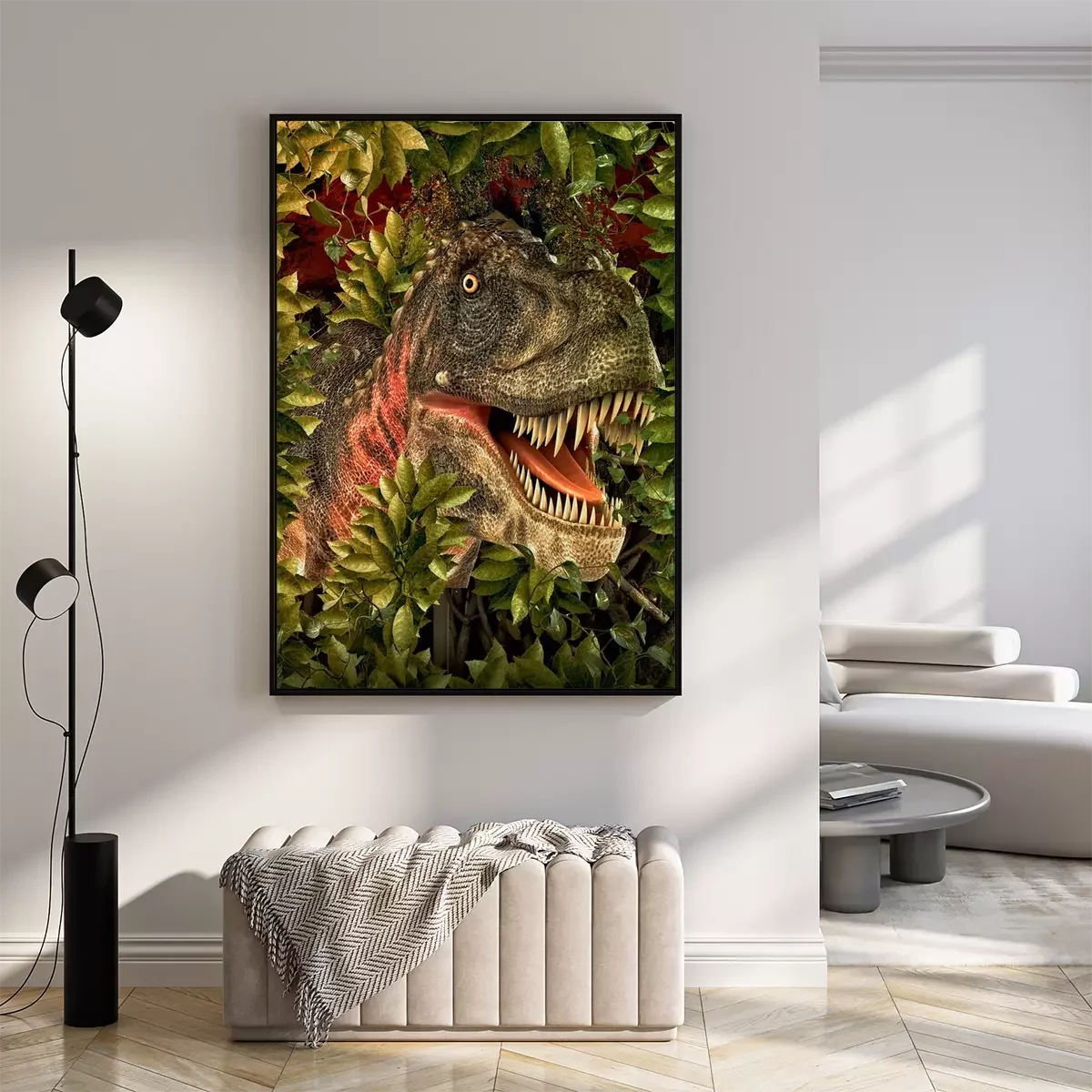 Poster: Tyrannosaurus tussen groene bladeren