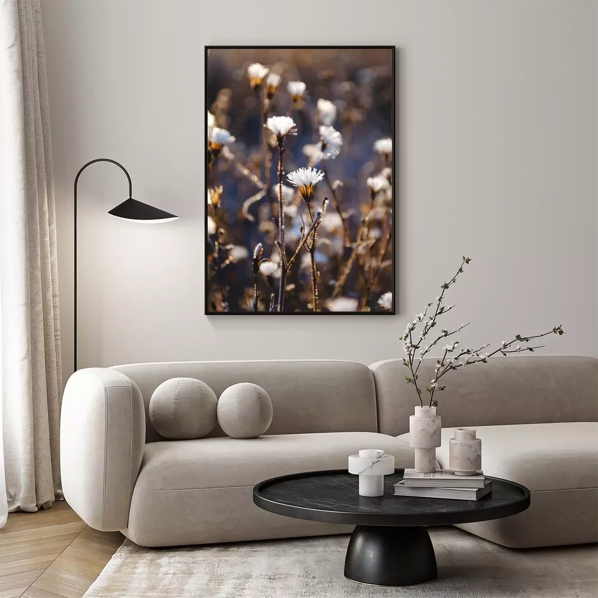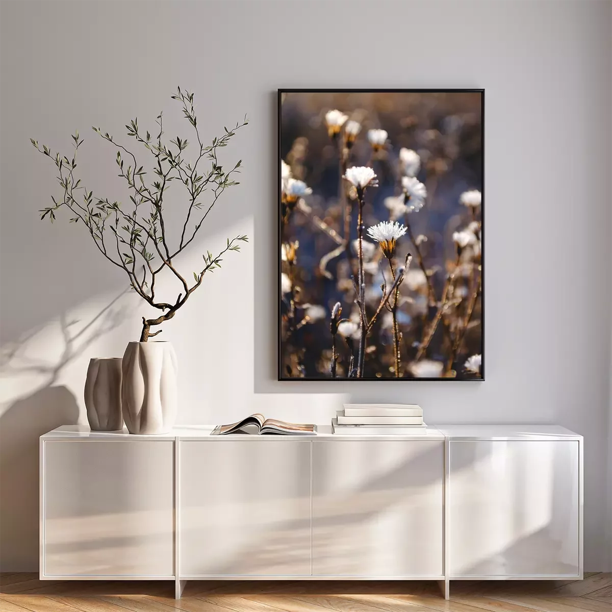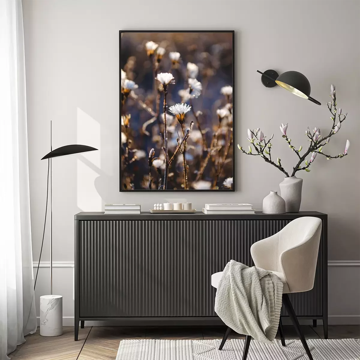 Poster: Uiterst kleine wilde bloemen op een de herfstweide