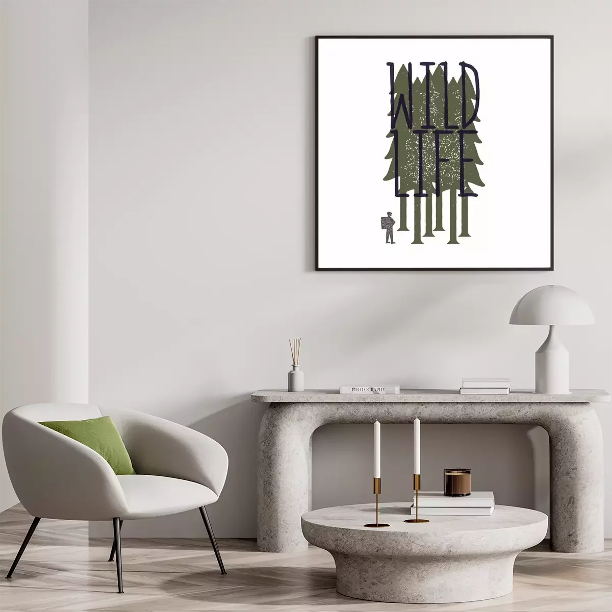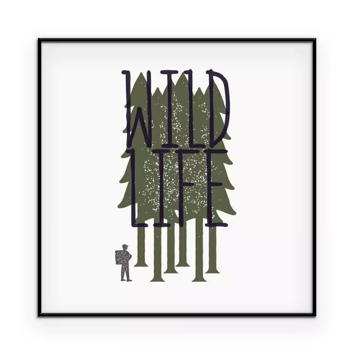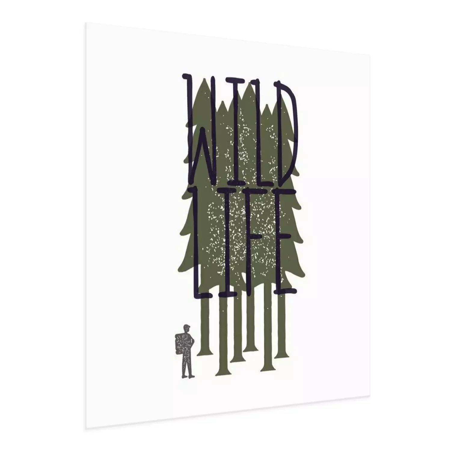 Poster Uitstekend embleem van toerist-reiziger in bos en het inschrijvings wilde leven. Grunge-badge, typogrfisch symbool geschikt voor T-shirts of print. Geïsoleerde vectorillustratie