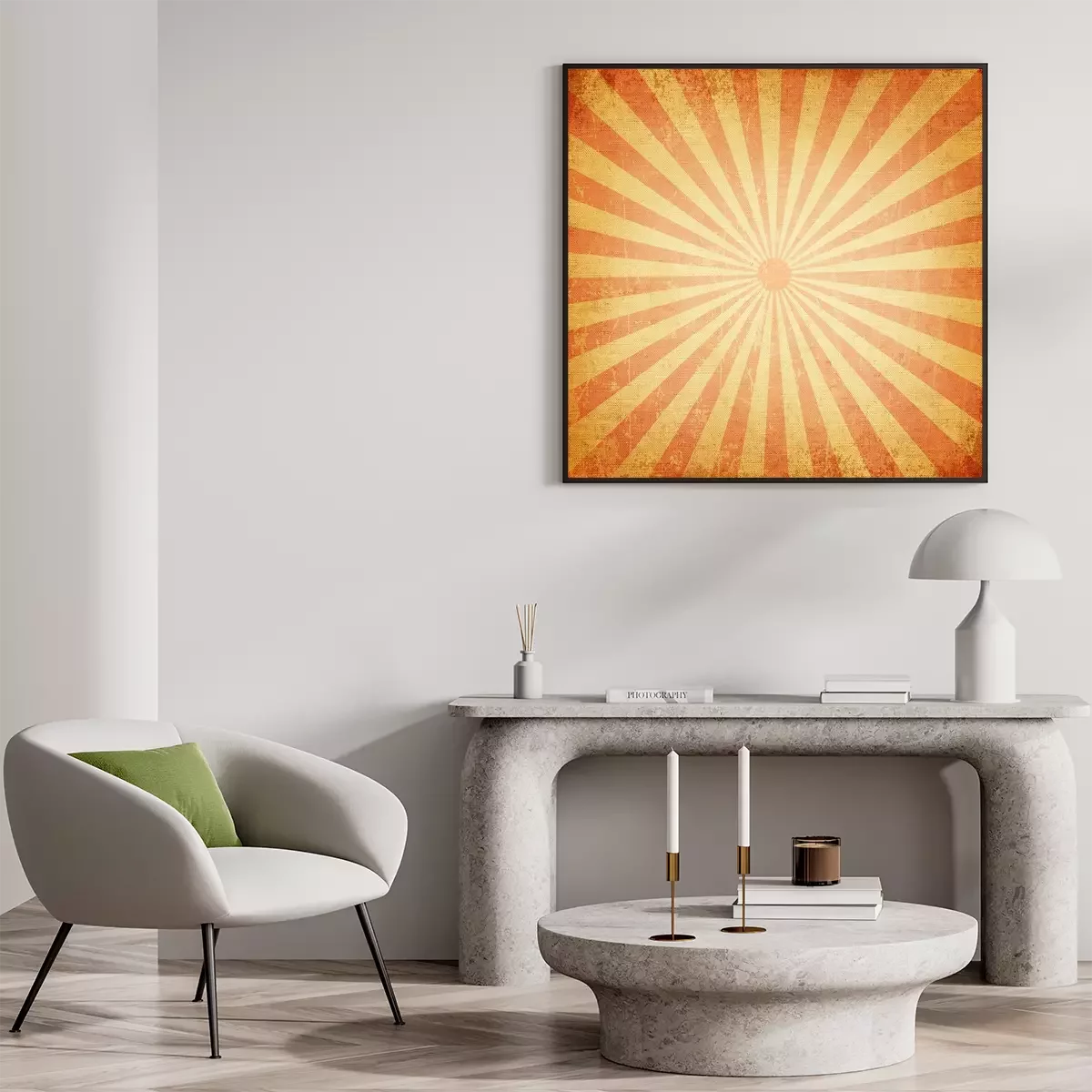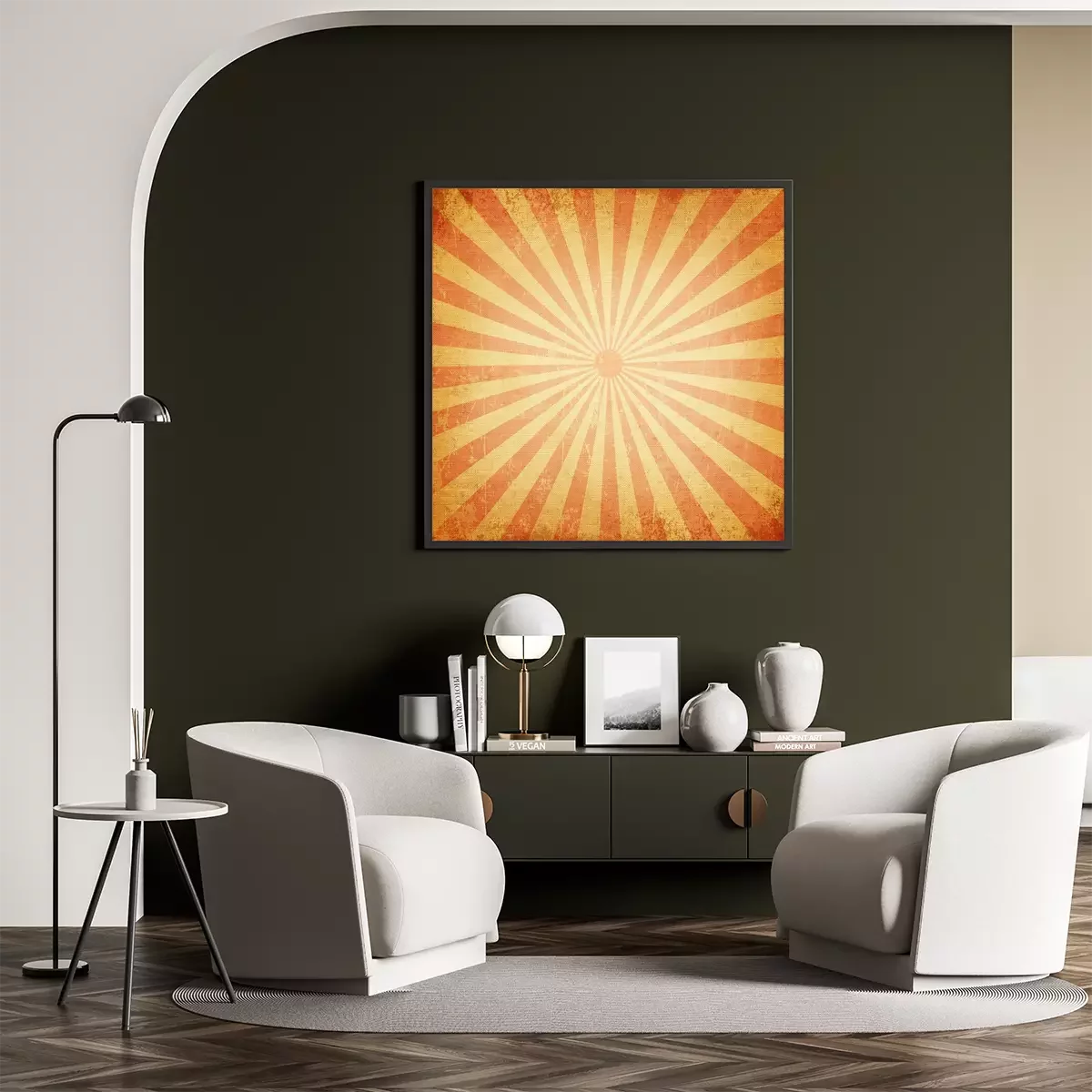 Poster Uitstekende achtergrond van rode zonnestraal met retro canvastextuur